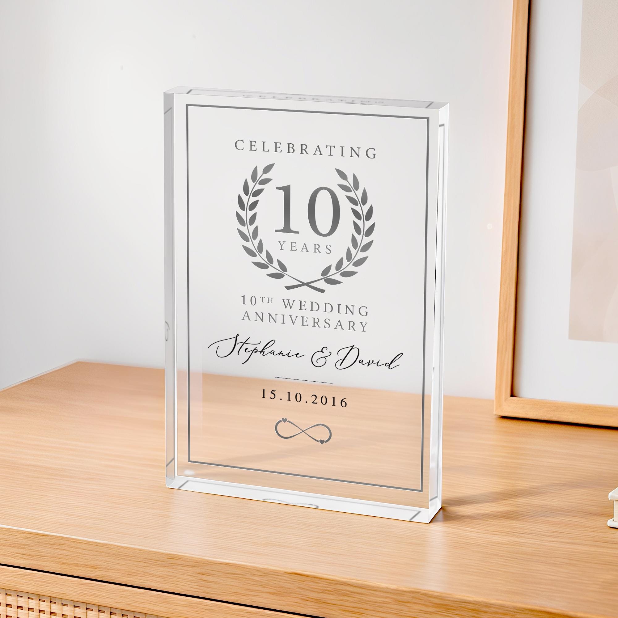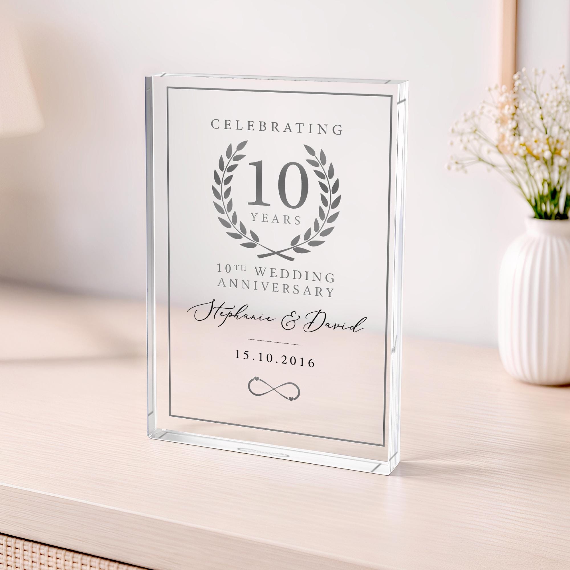 Personalised 10th Wedding Anniversary Gift Plaque Polished Clear Acrylic