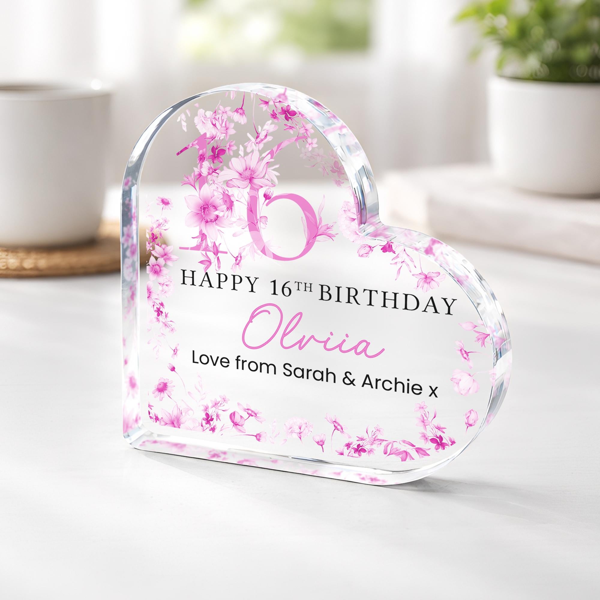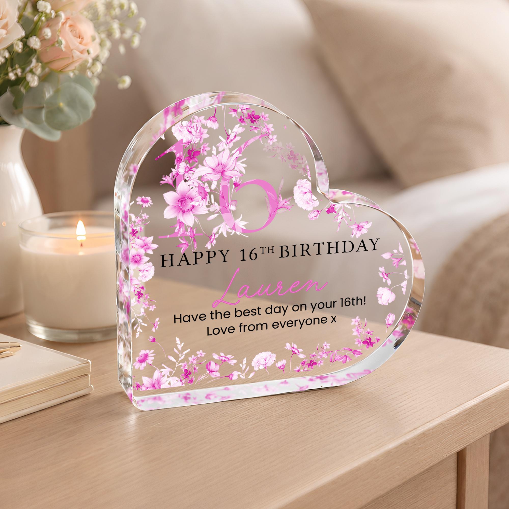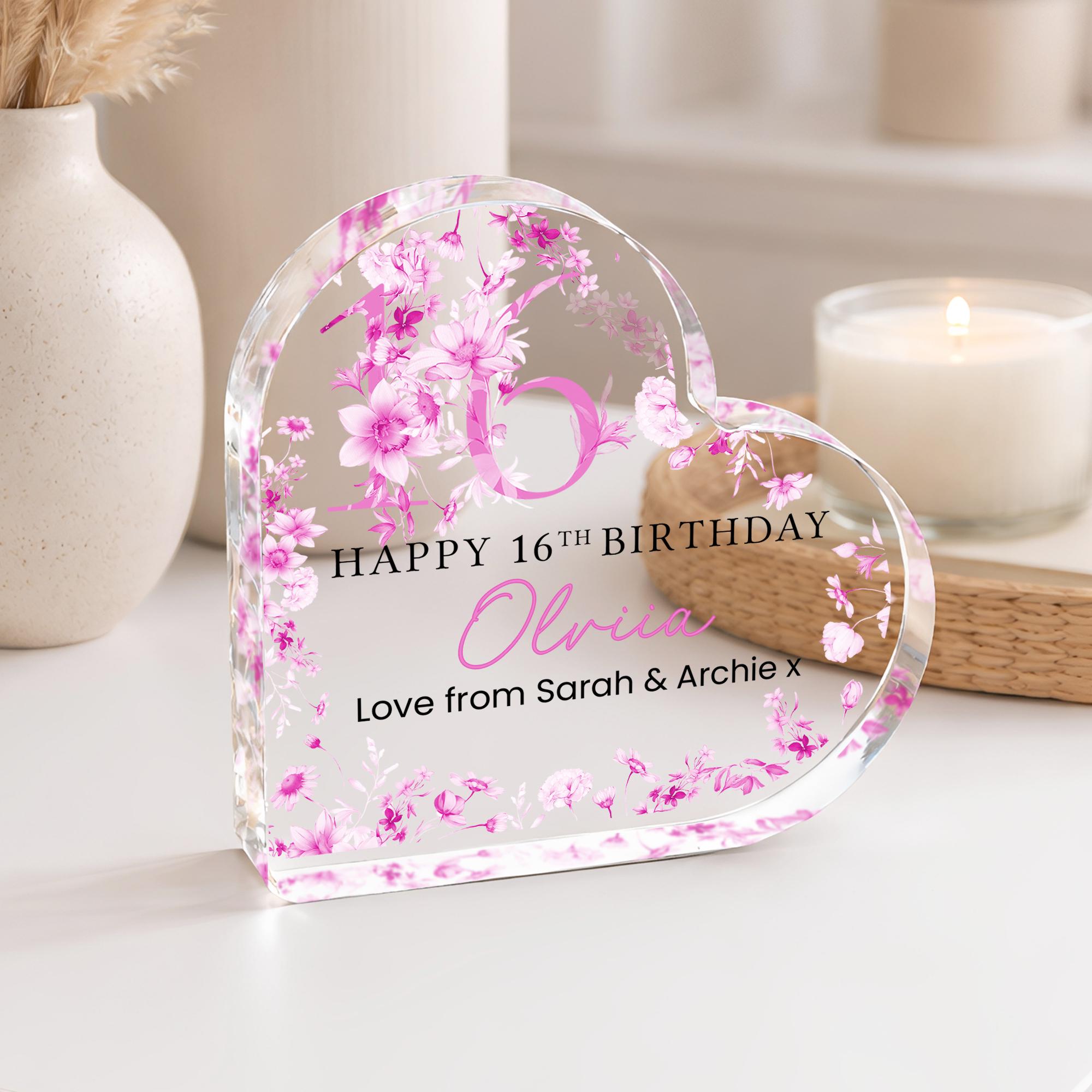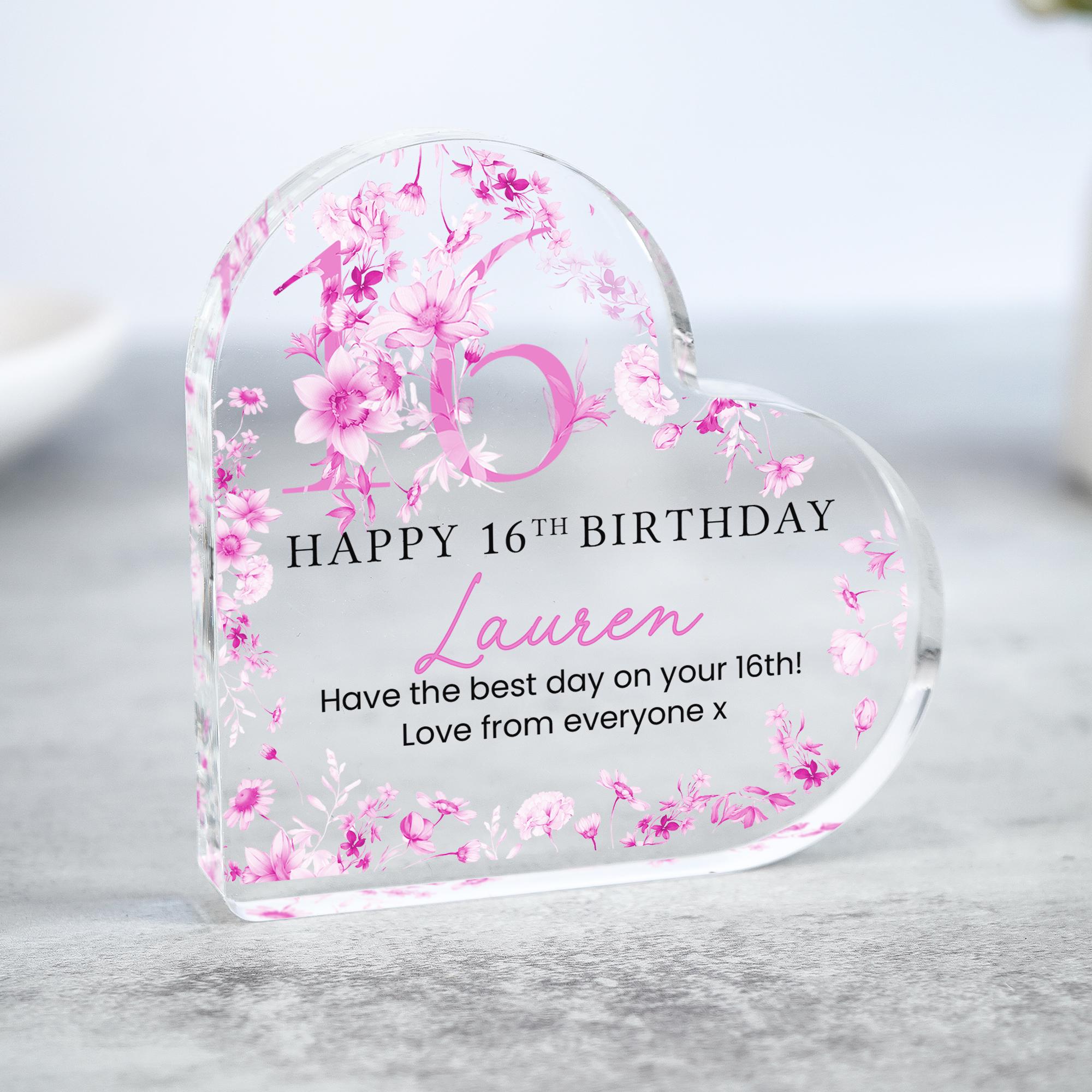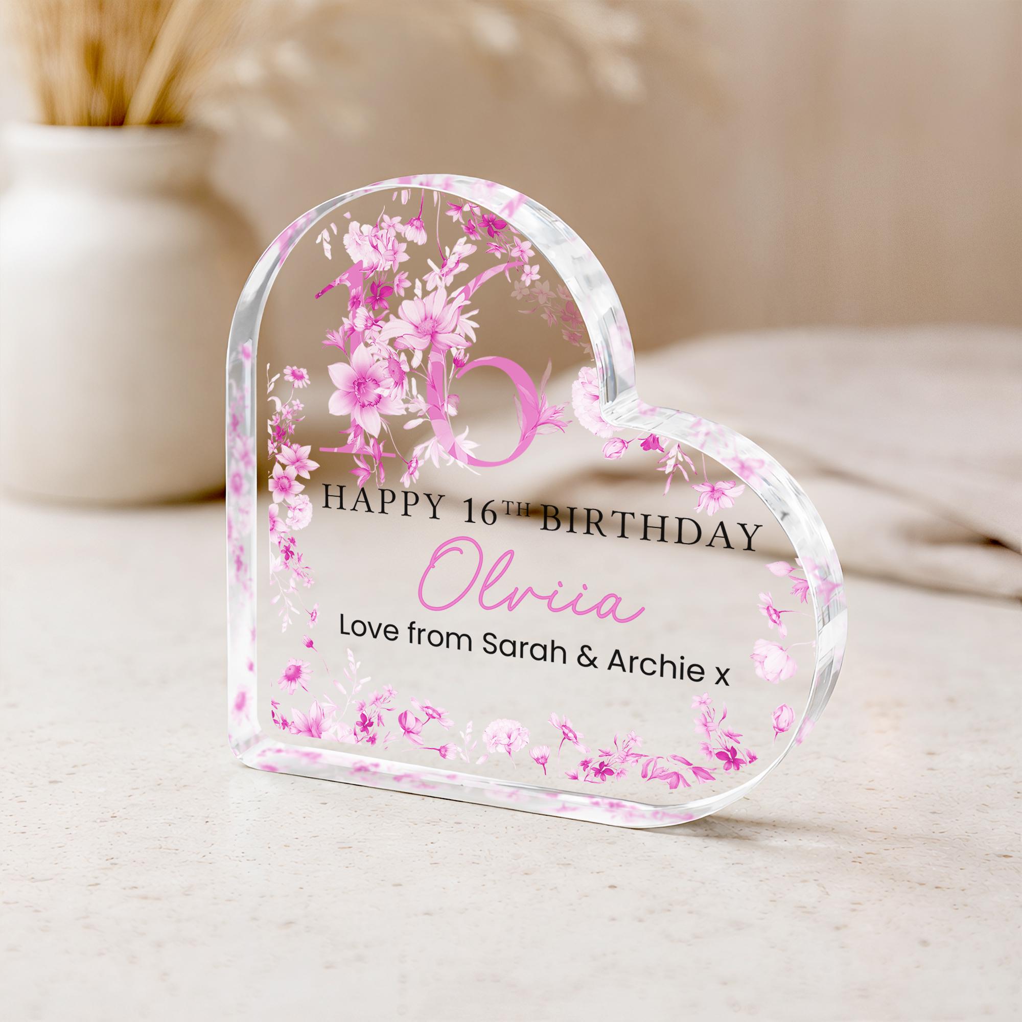 Personalised Acrylic Floral 16th Birthday Gift Plaque for Her