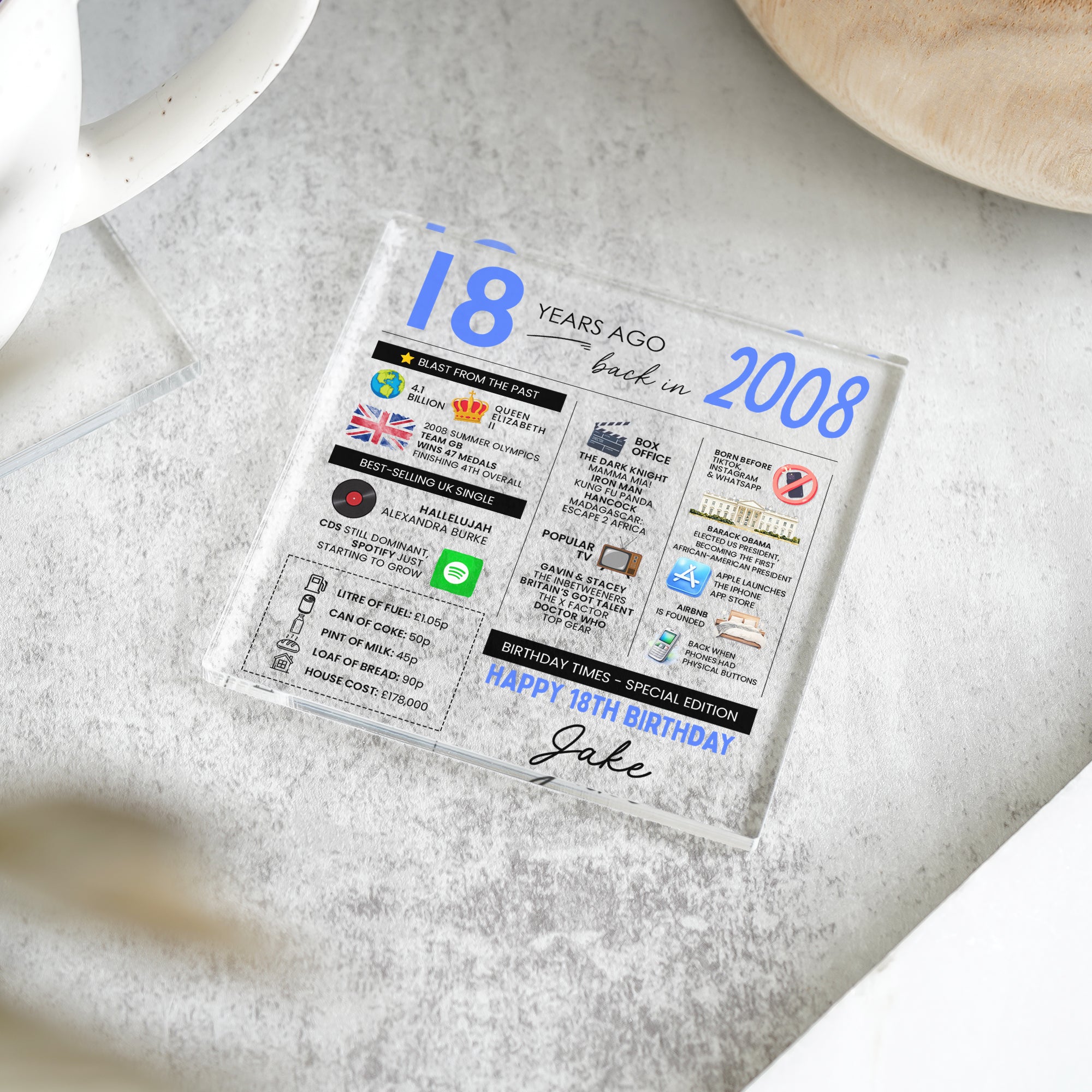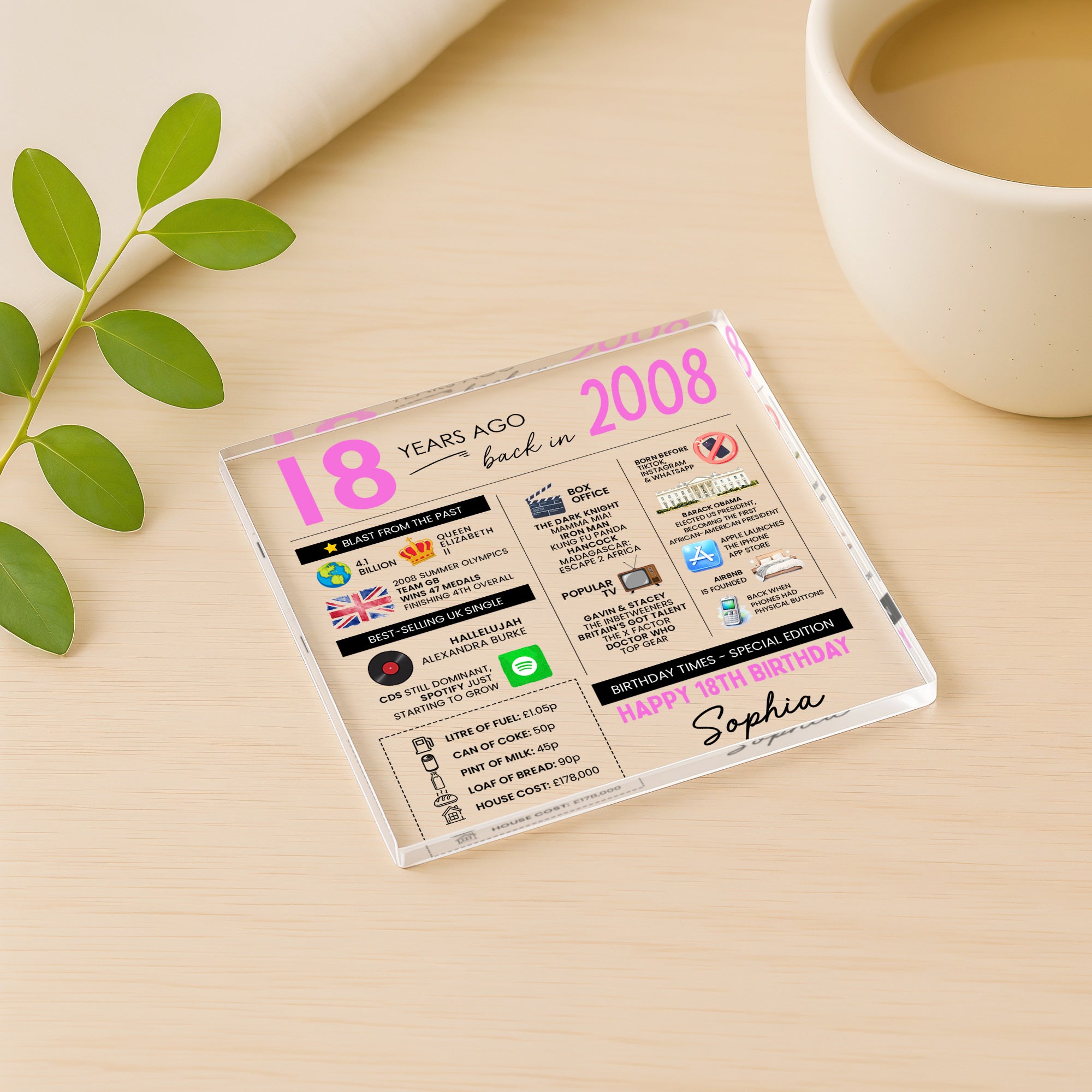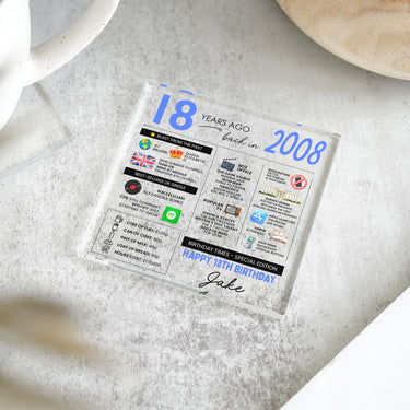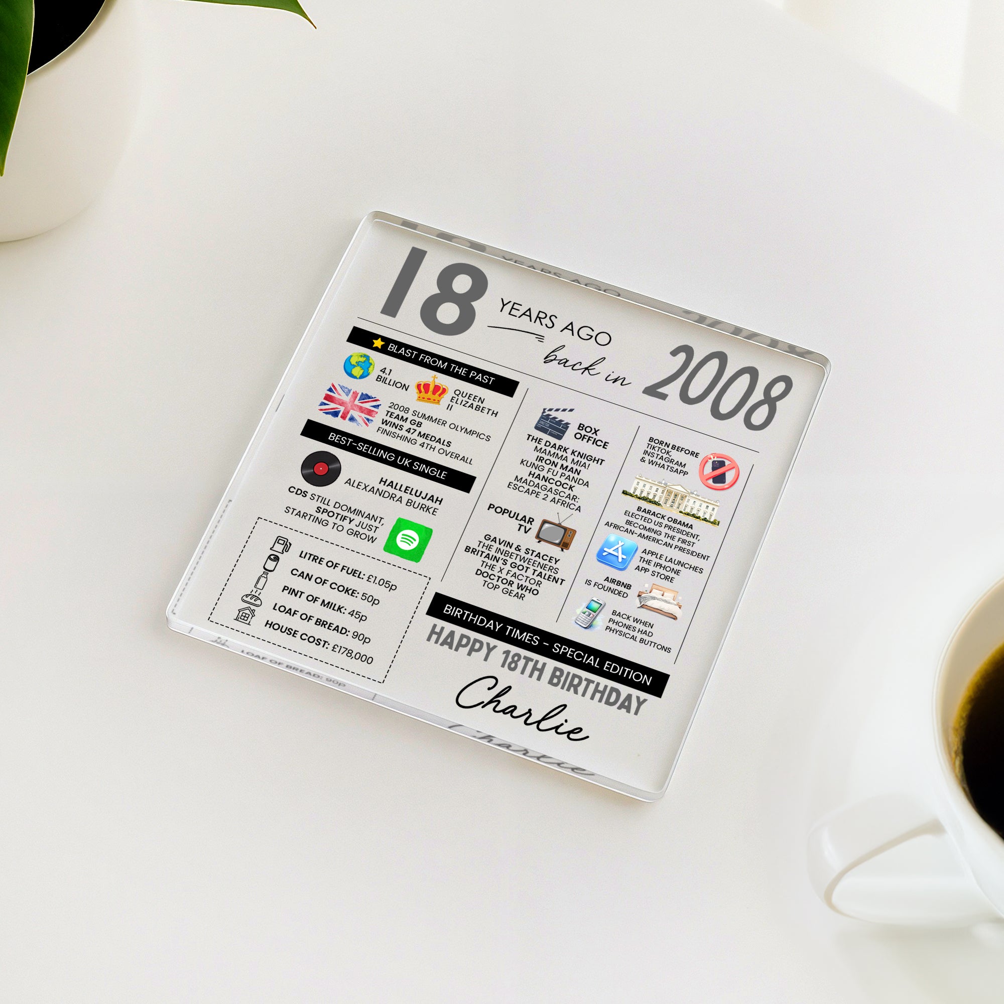 Personalised 18th Birthday Coaster Fun Facts Born in 2008 Birthday Gift for Her/Him