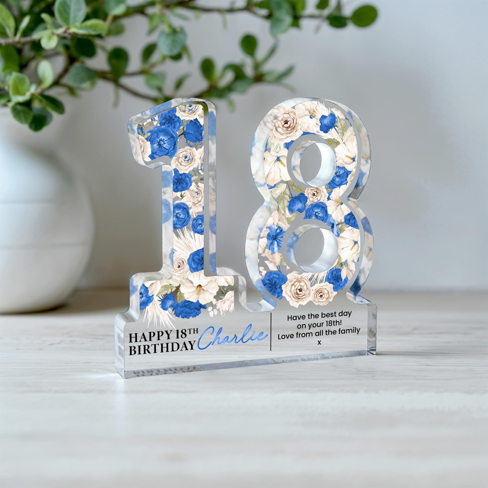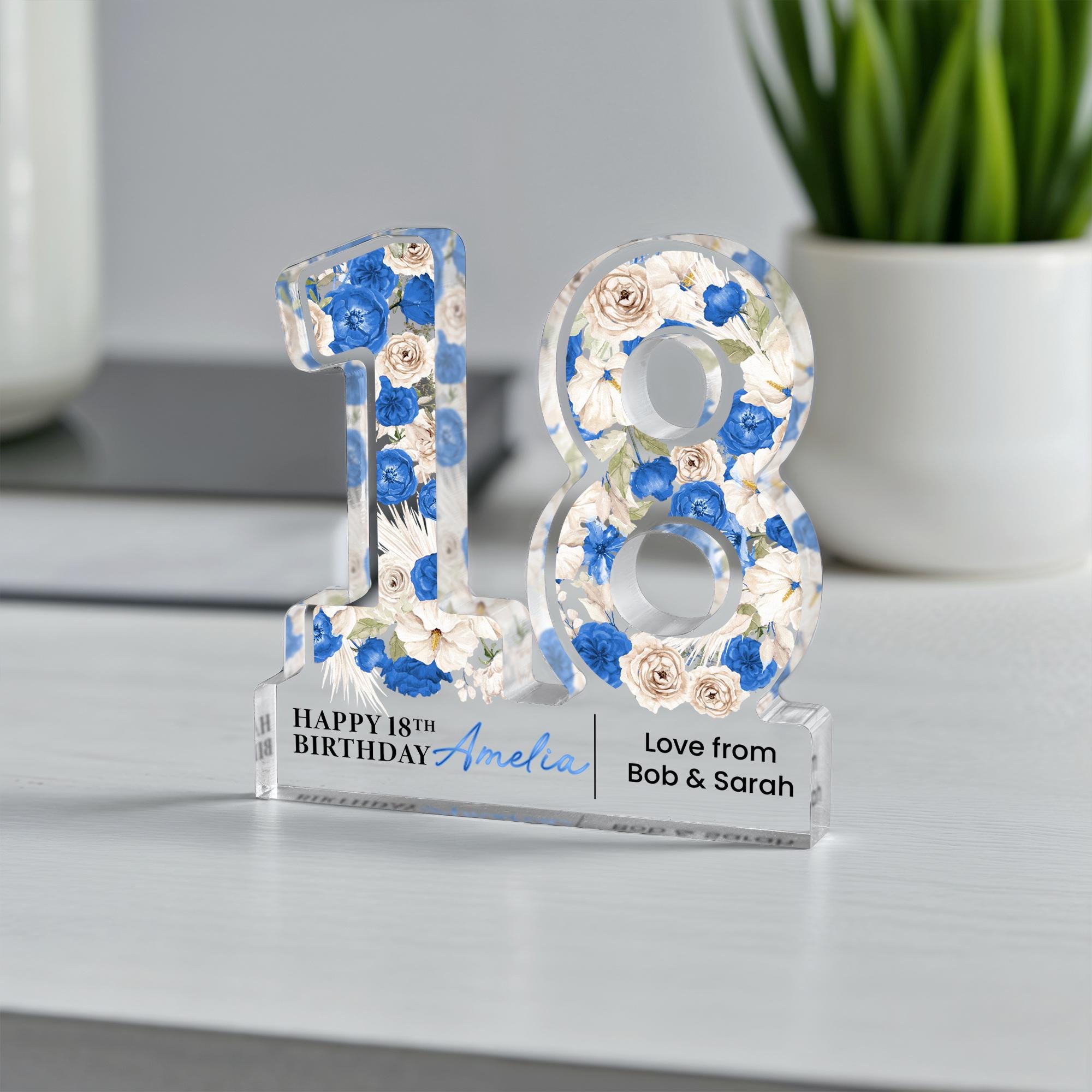 Personalised 18th Birthday Freestanding Rose Flower Gift Plaque for Her/Him