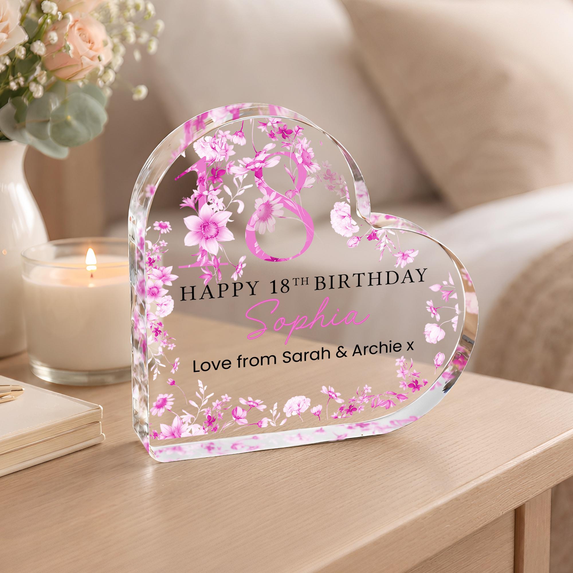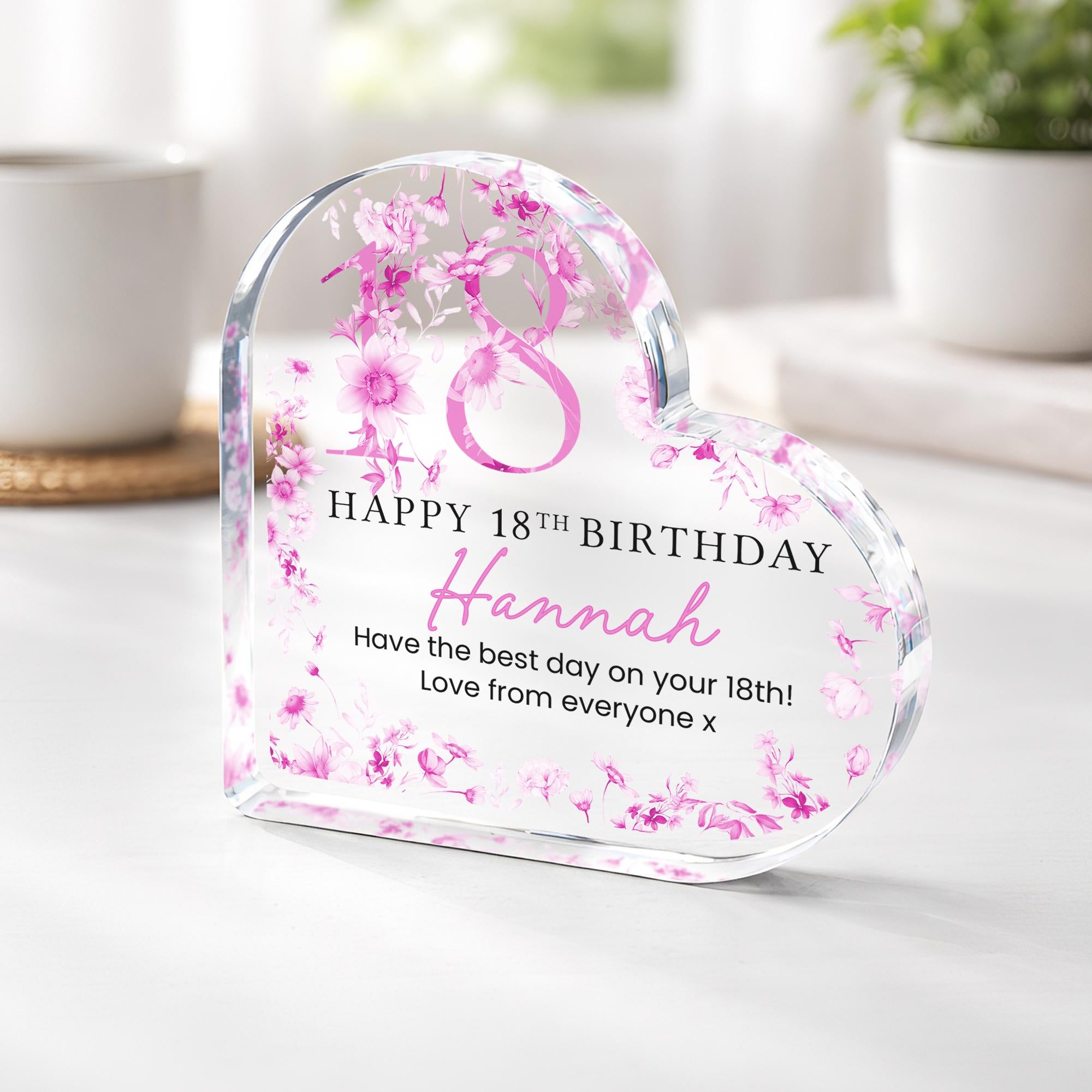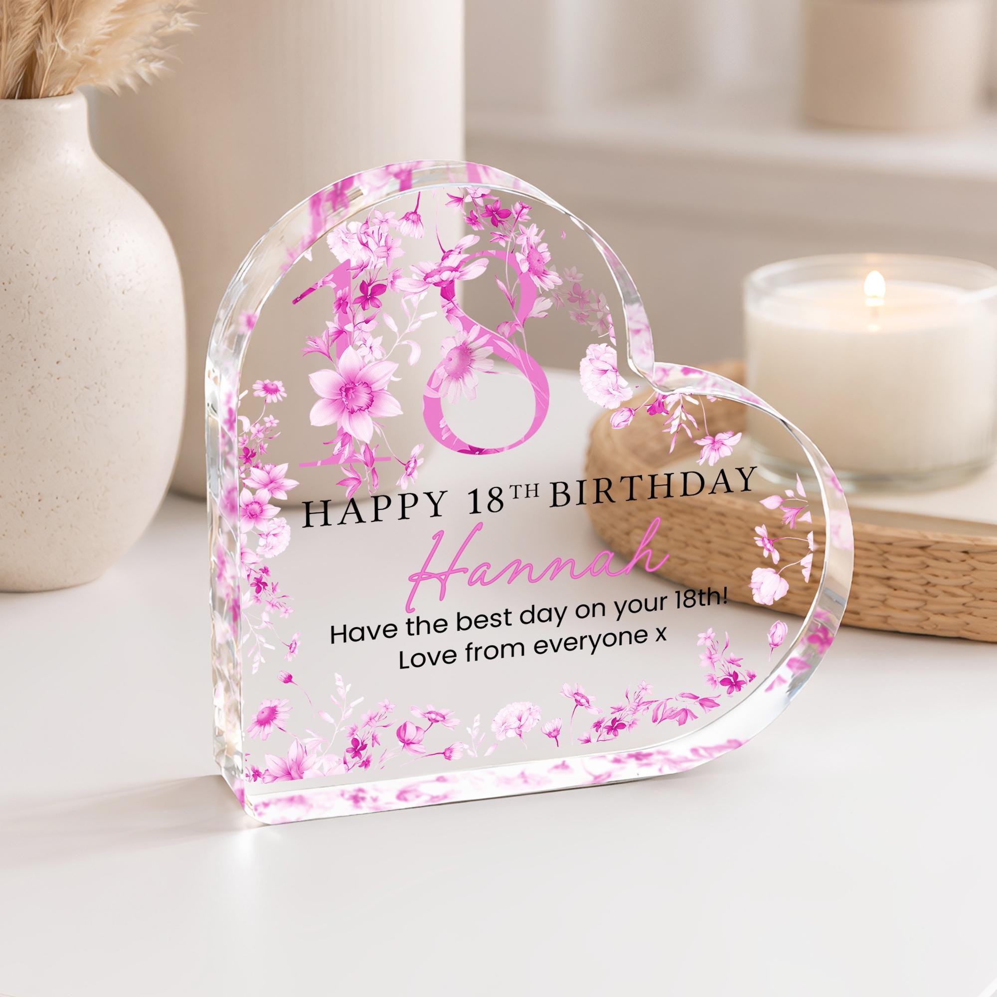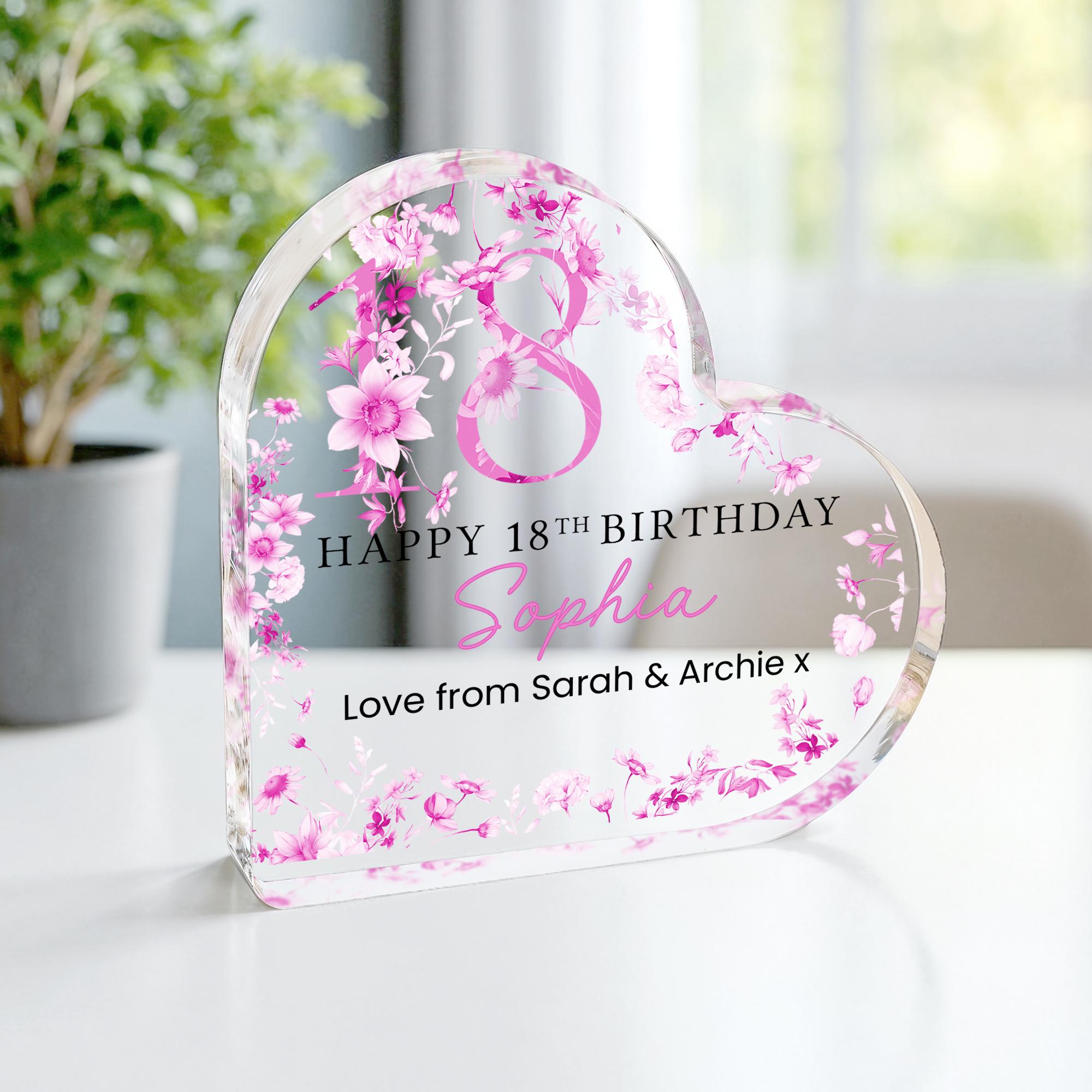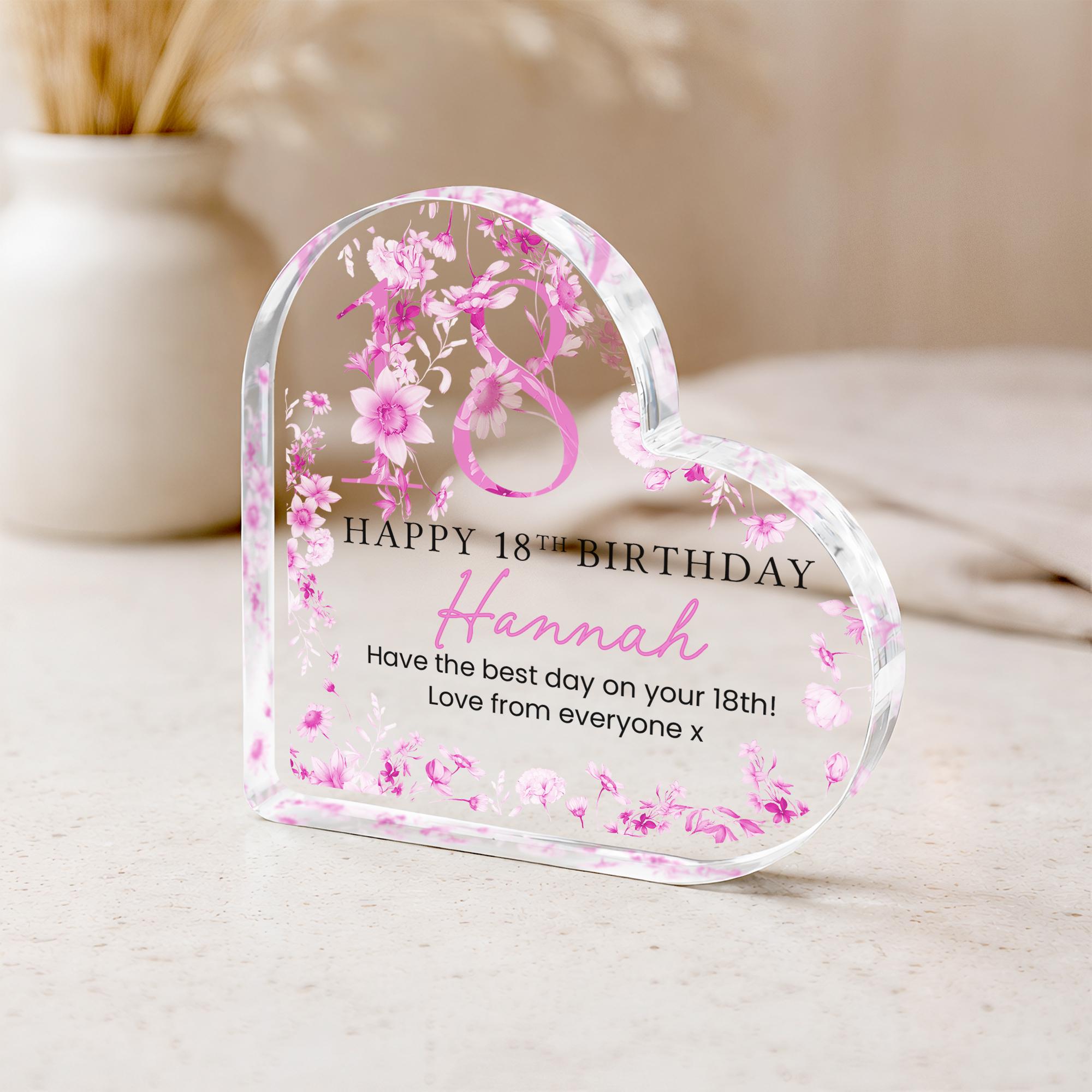 Personalised Acrylic Floral 18th Birthday Gift Plaque for Her