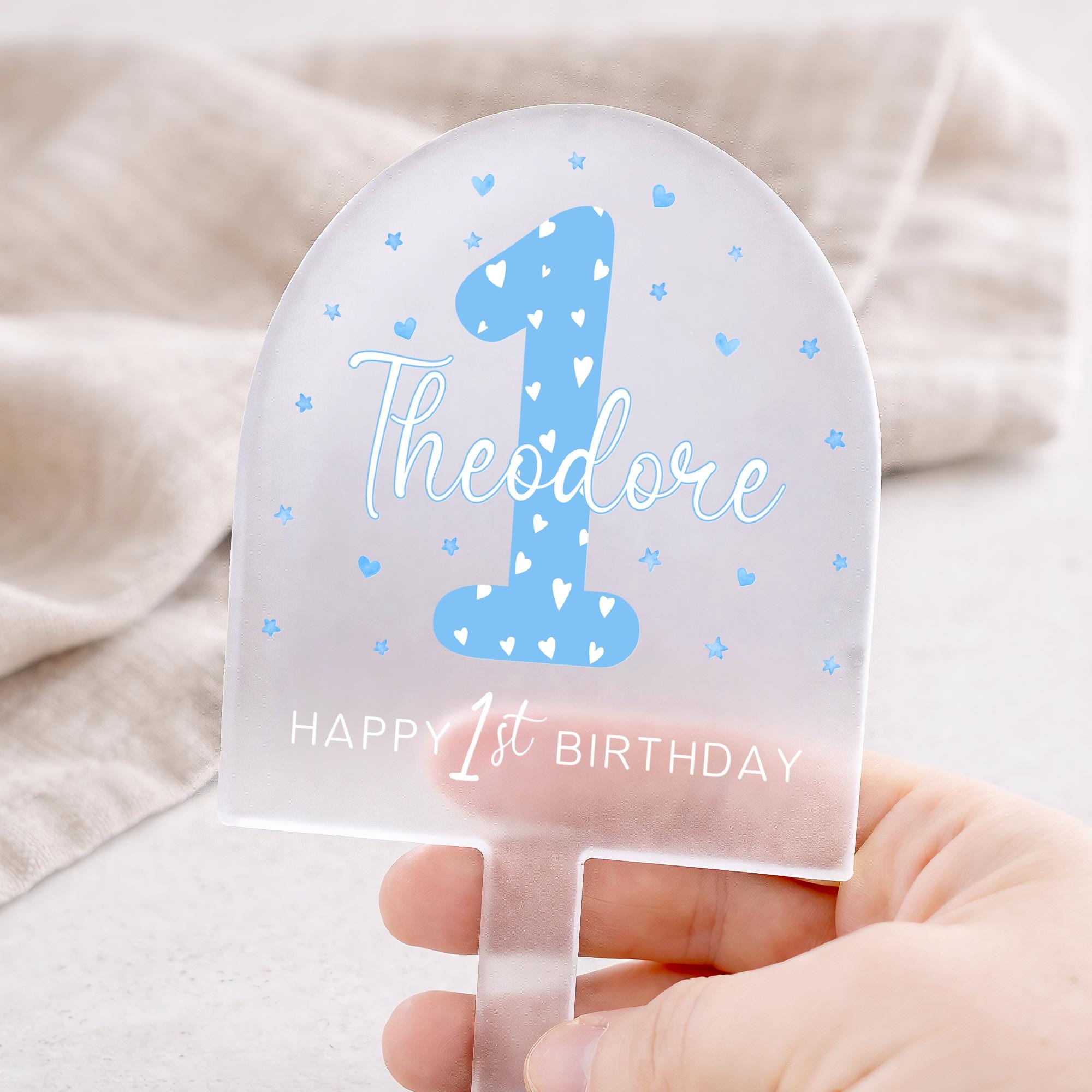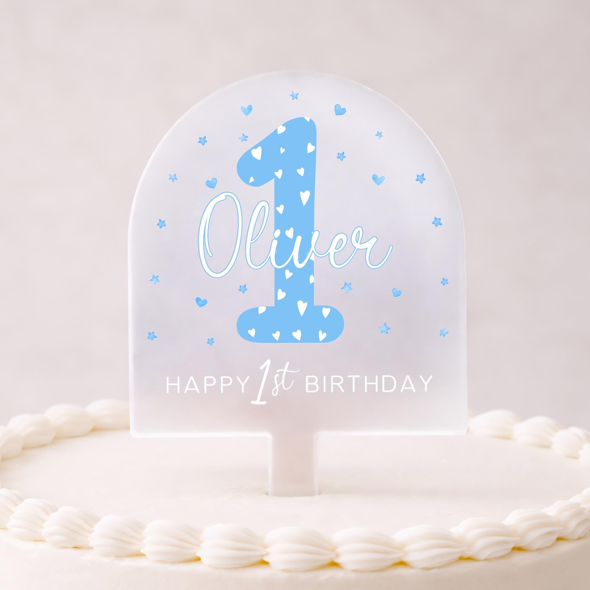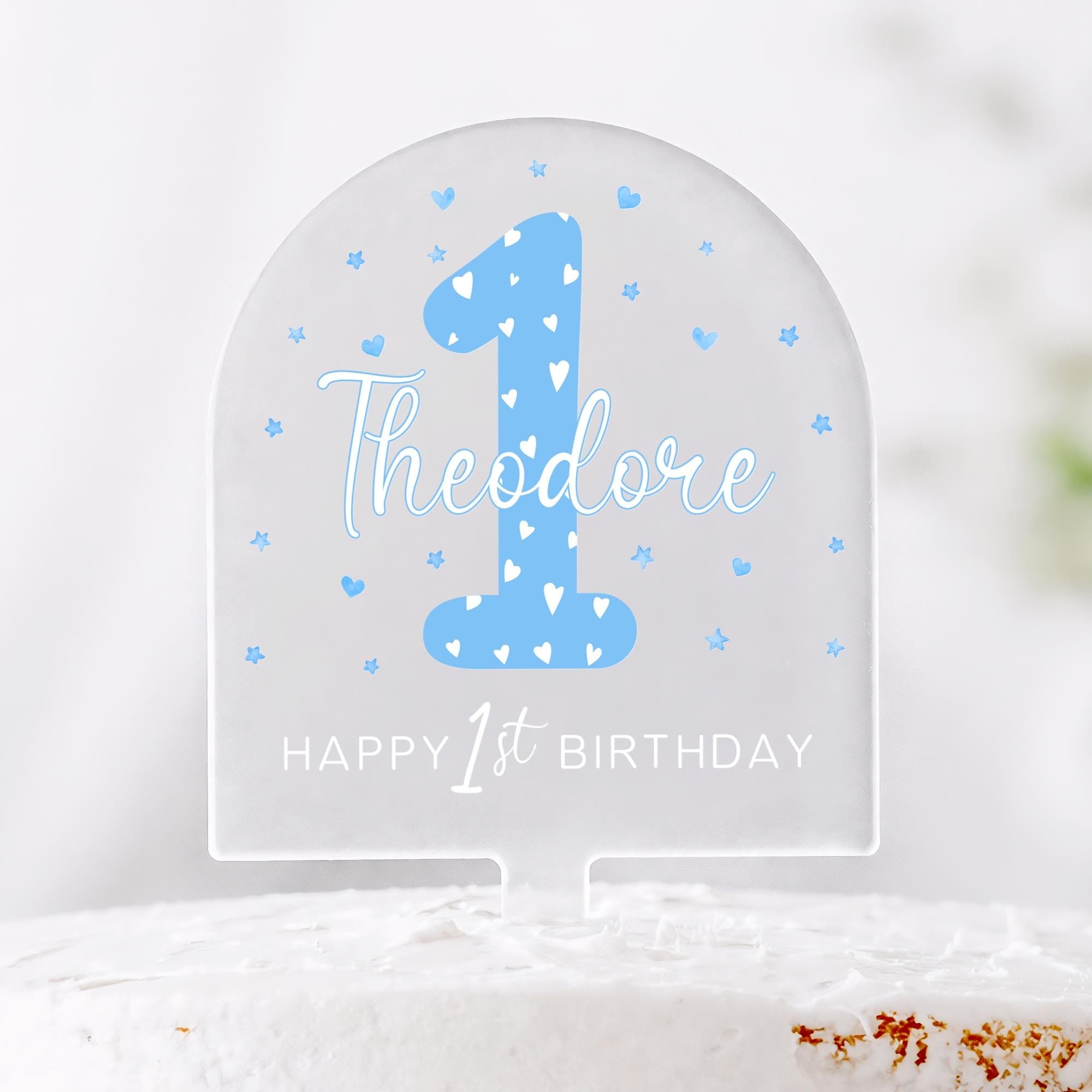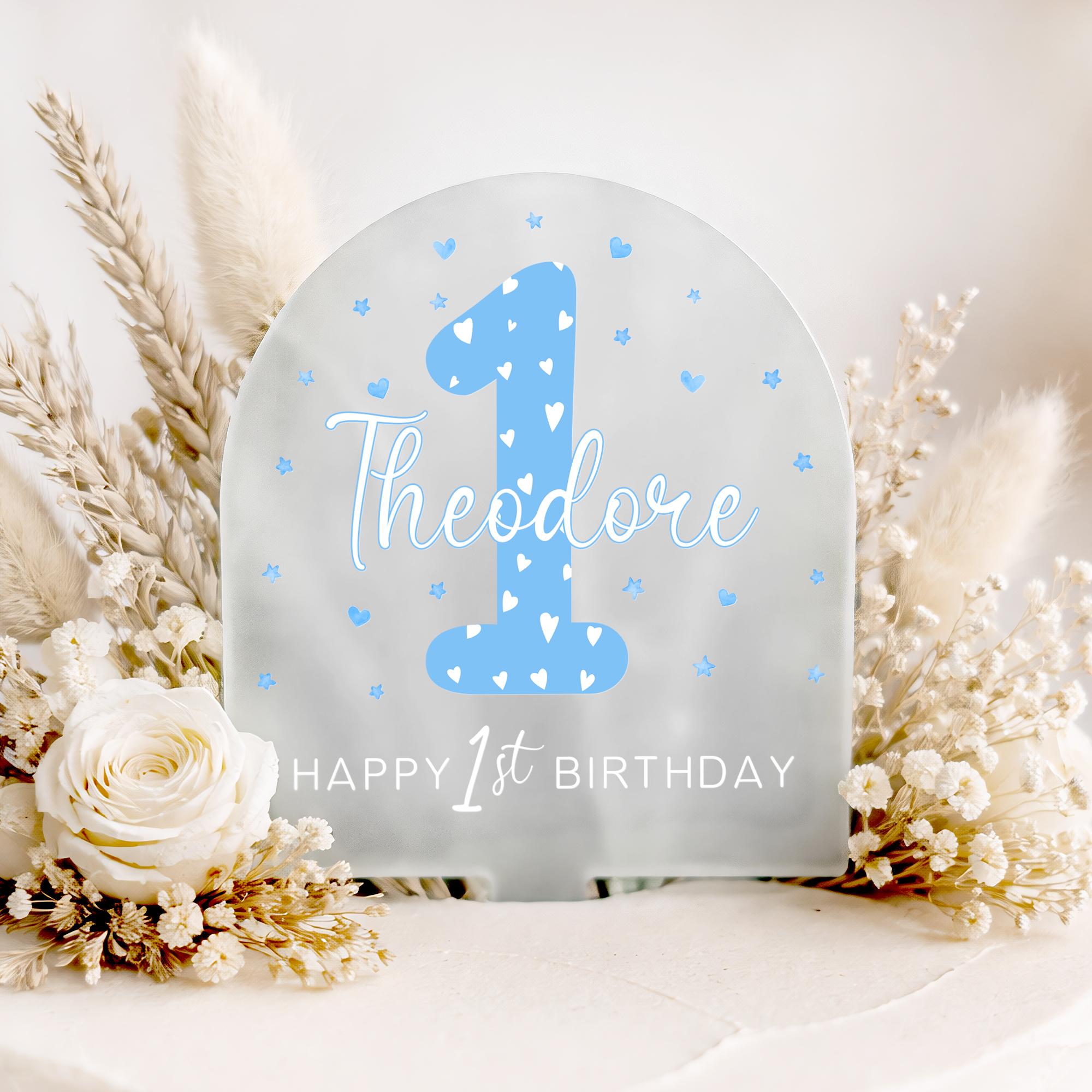 Personalised 1st Birthday Cake Topper for Baby Boy - Blue Theme Cake Decor