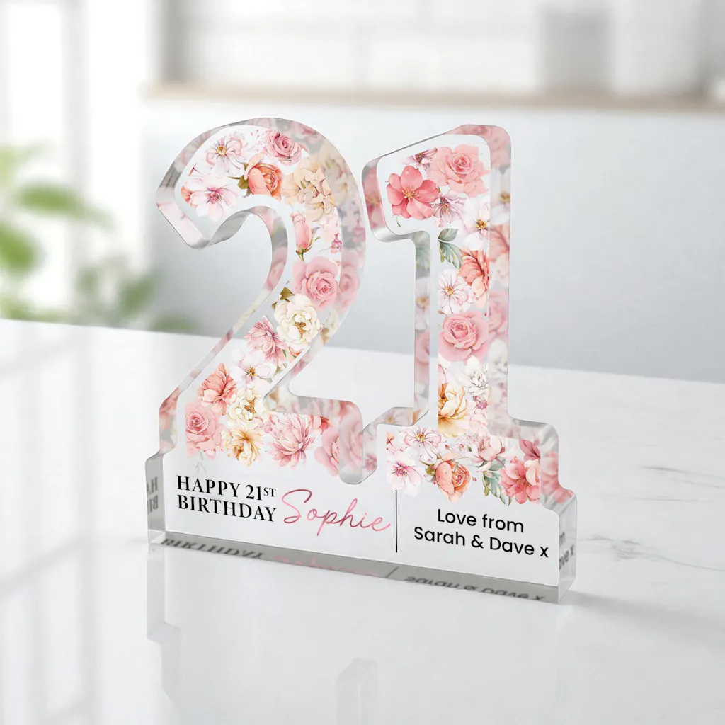 Personalised Freestanding Pink Roses 21st Birthday Gift Plaque