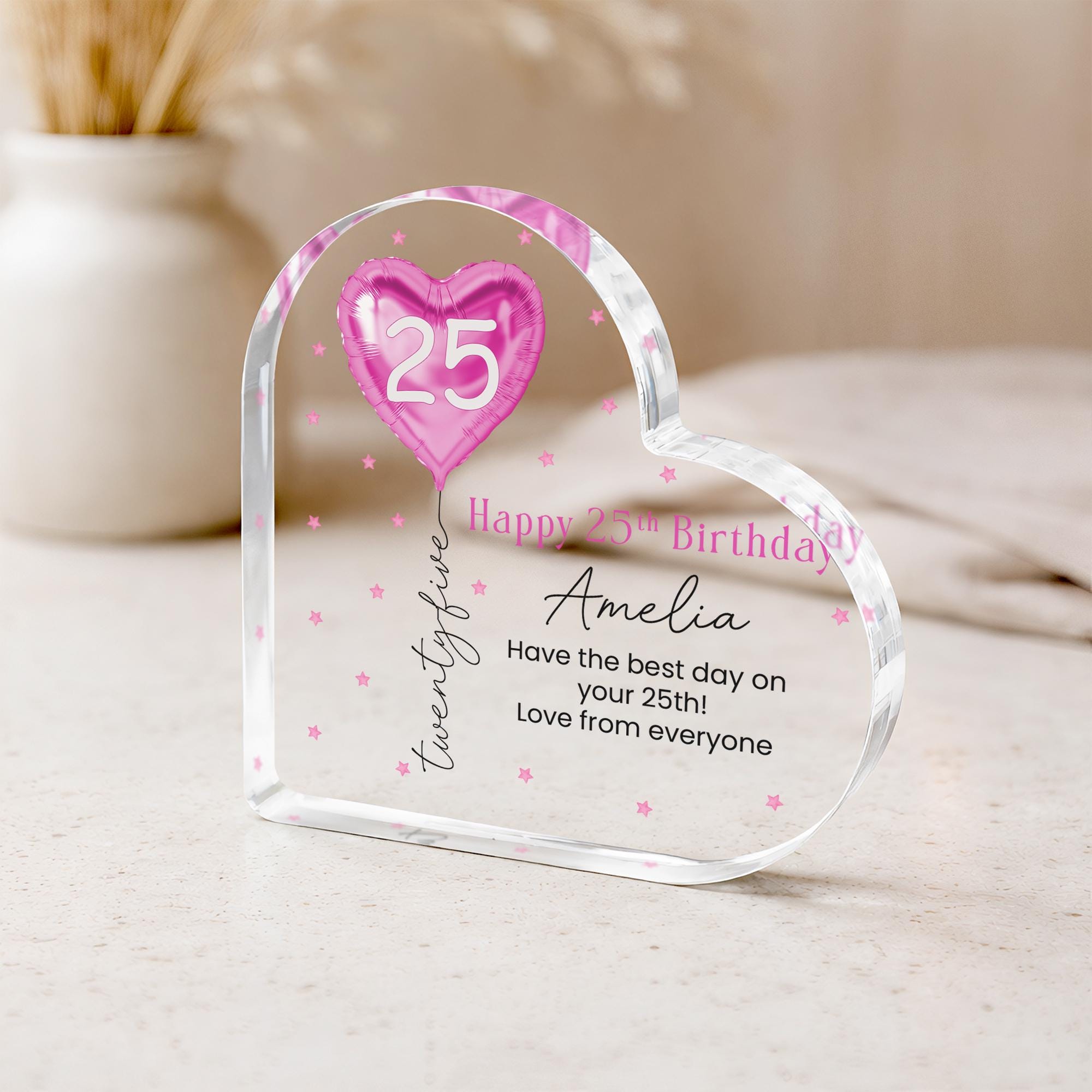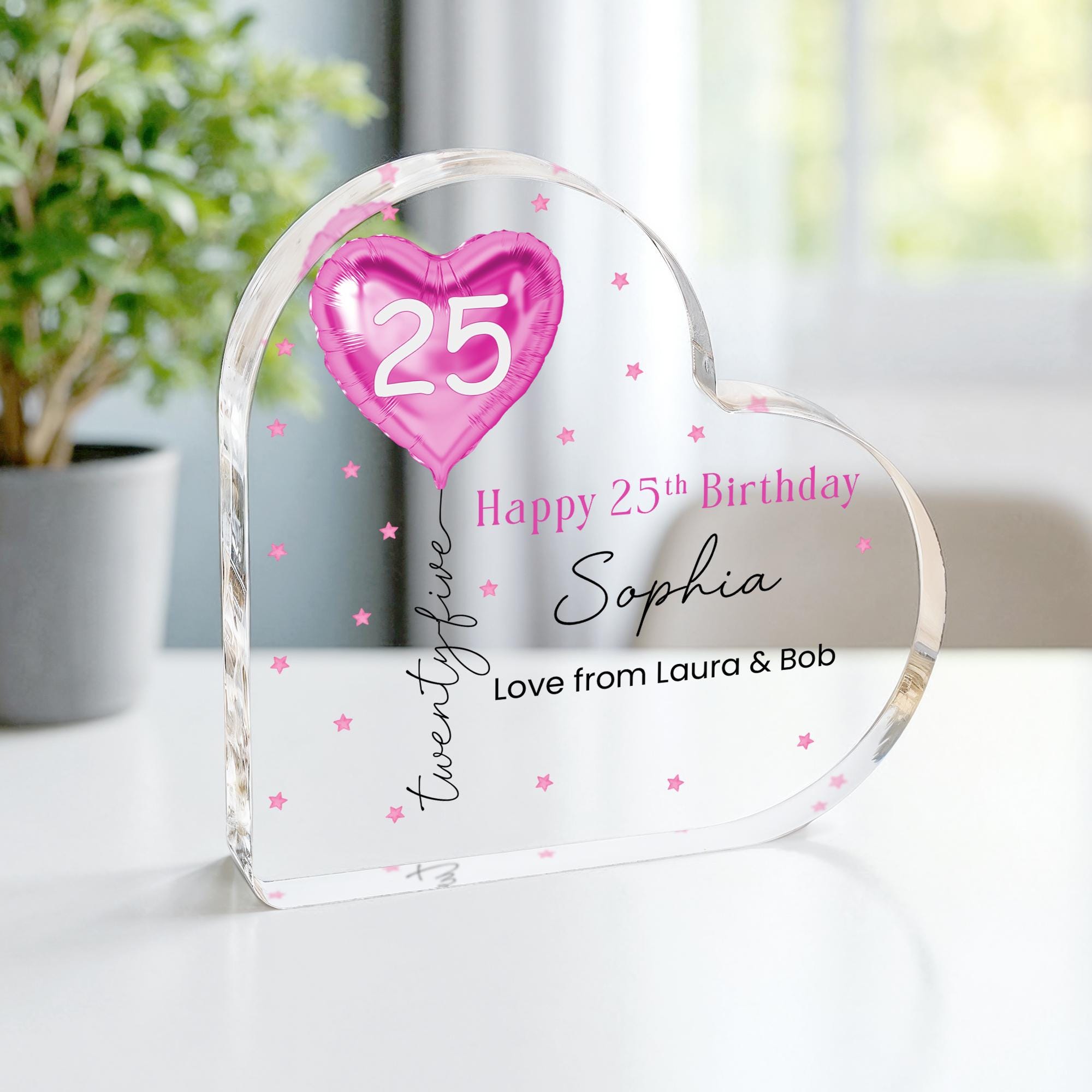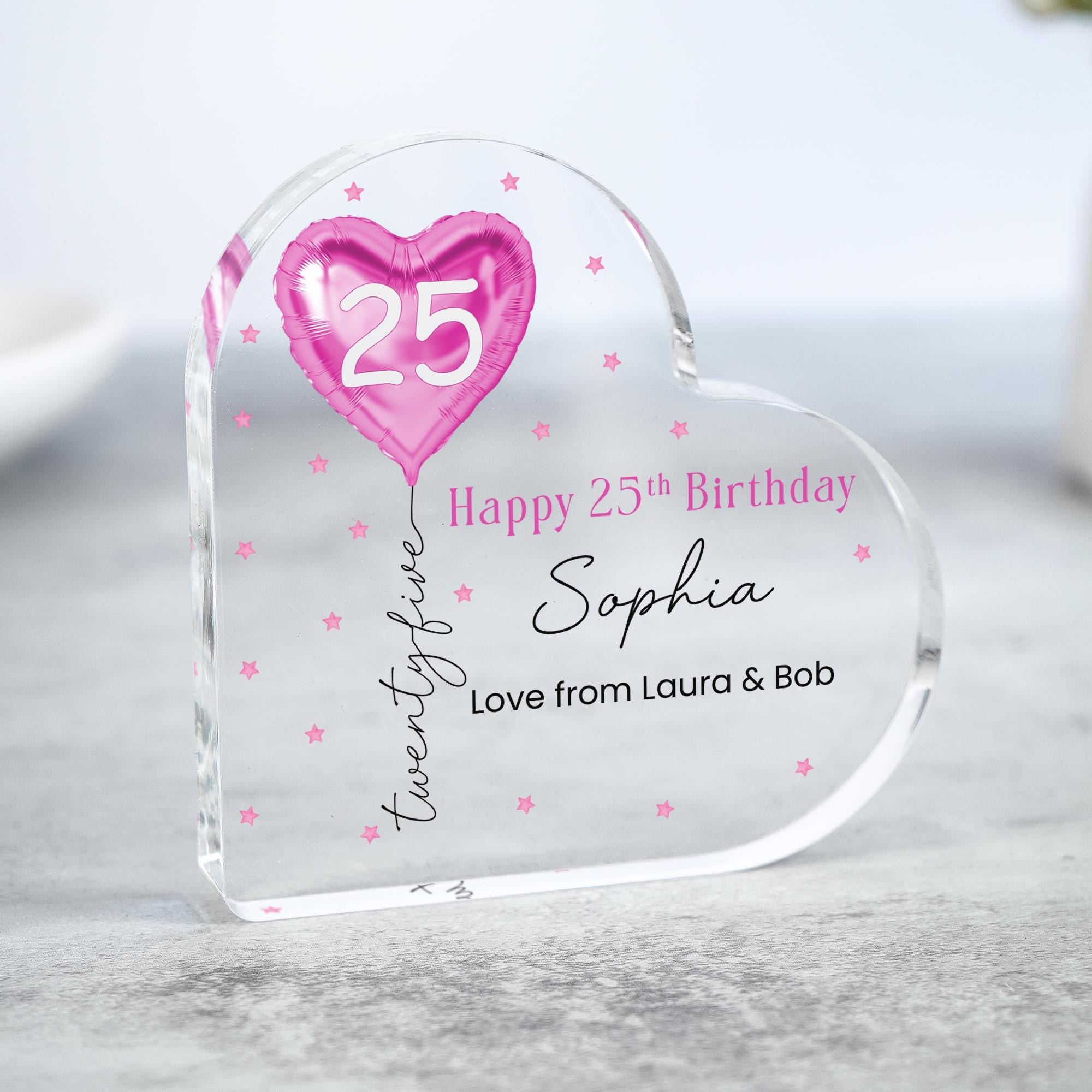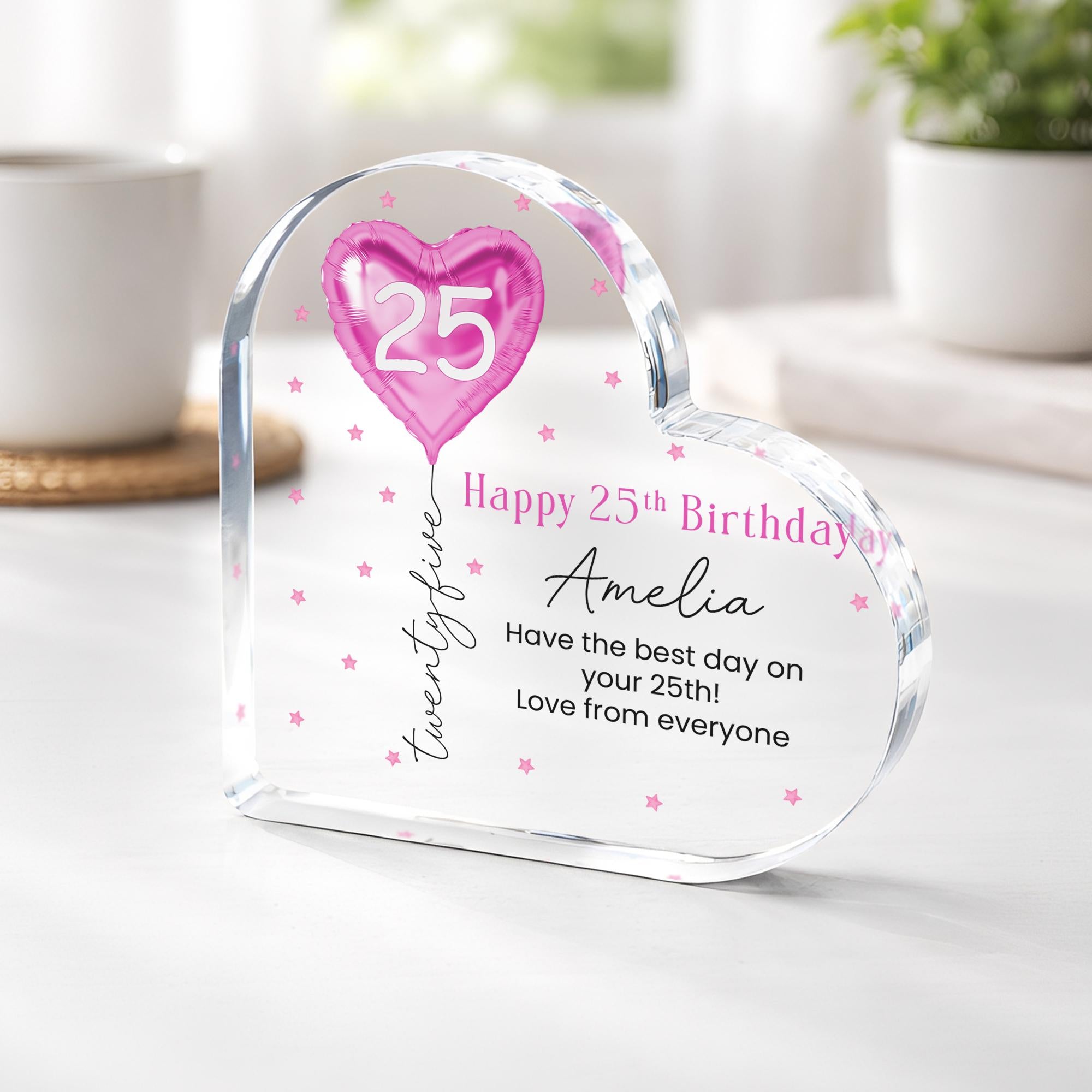 Personalised Pink Balloon 25th Birthday Gift Message Heart Plaque for Her