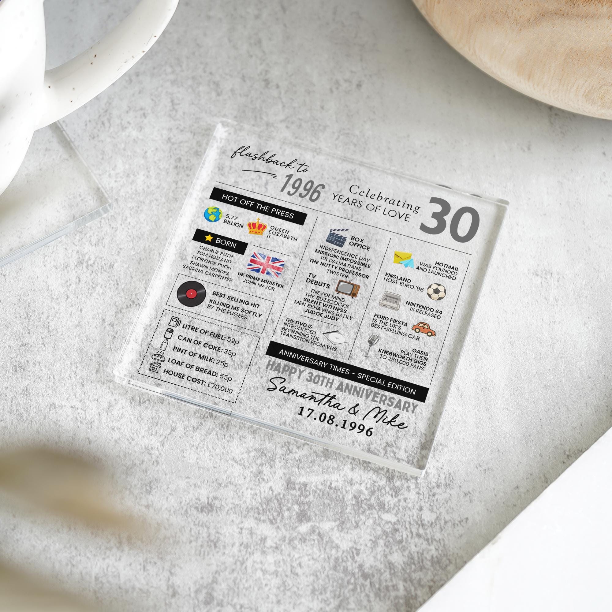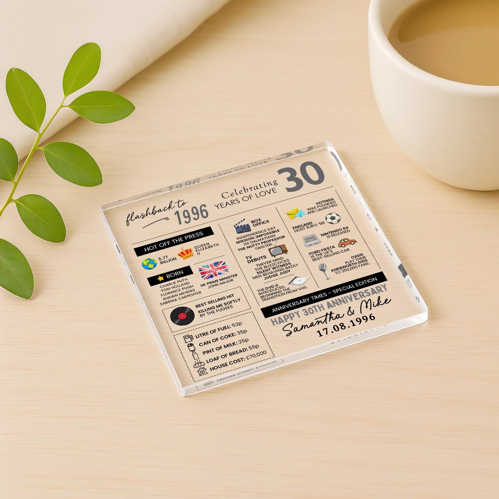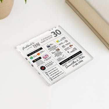 Personalised Marriage Facts 30th Anniversary Coaster Married in 1996 Keepsake