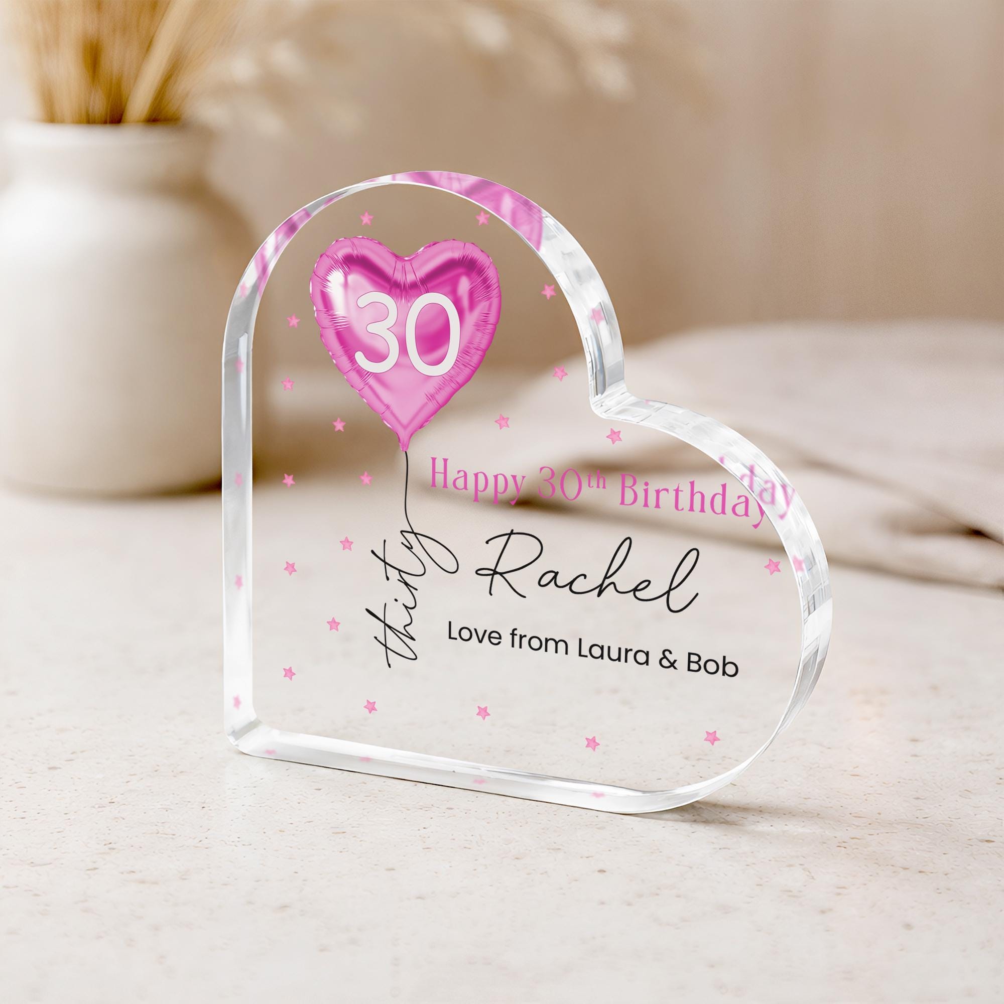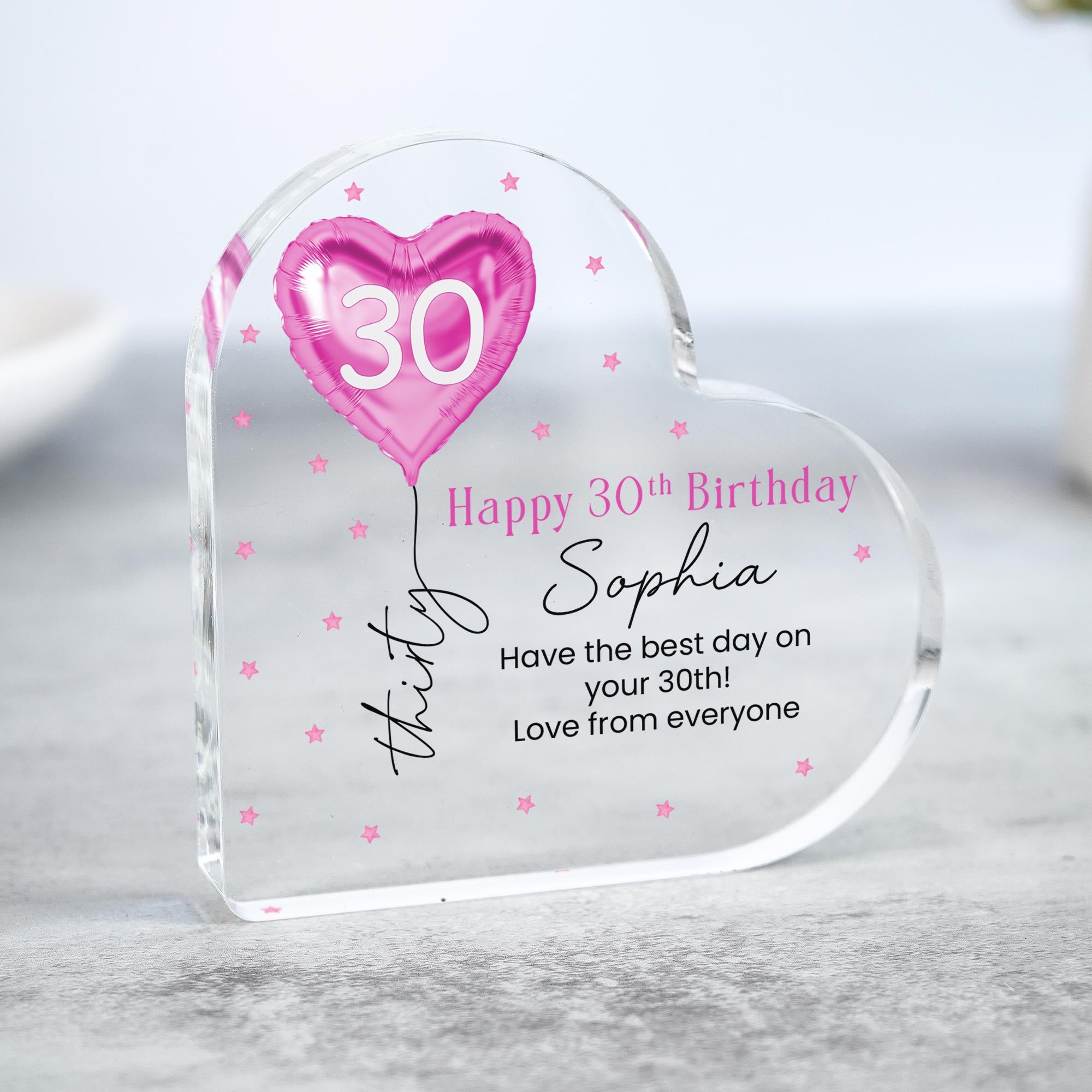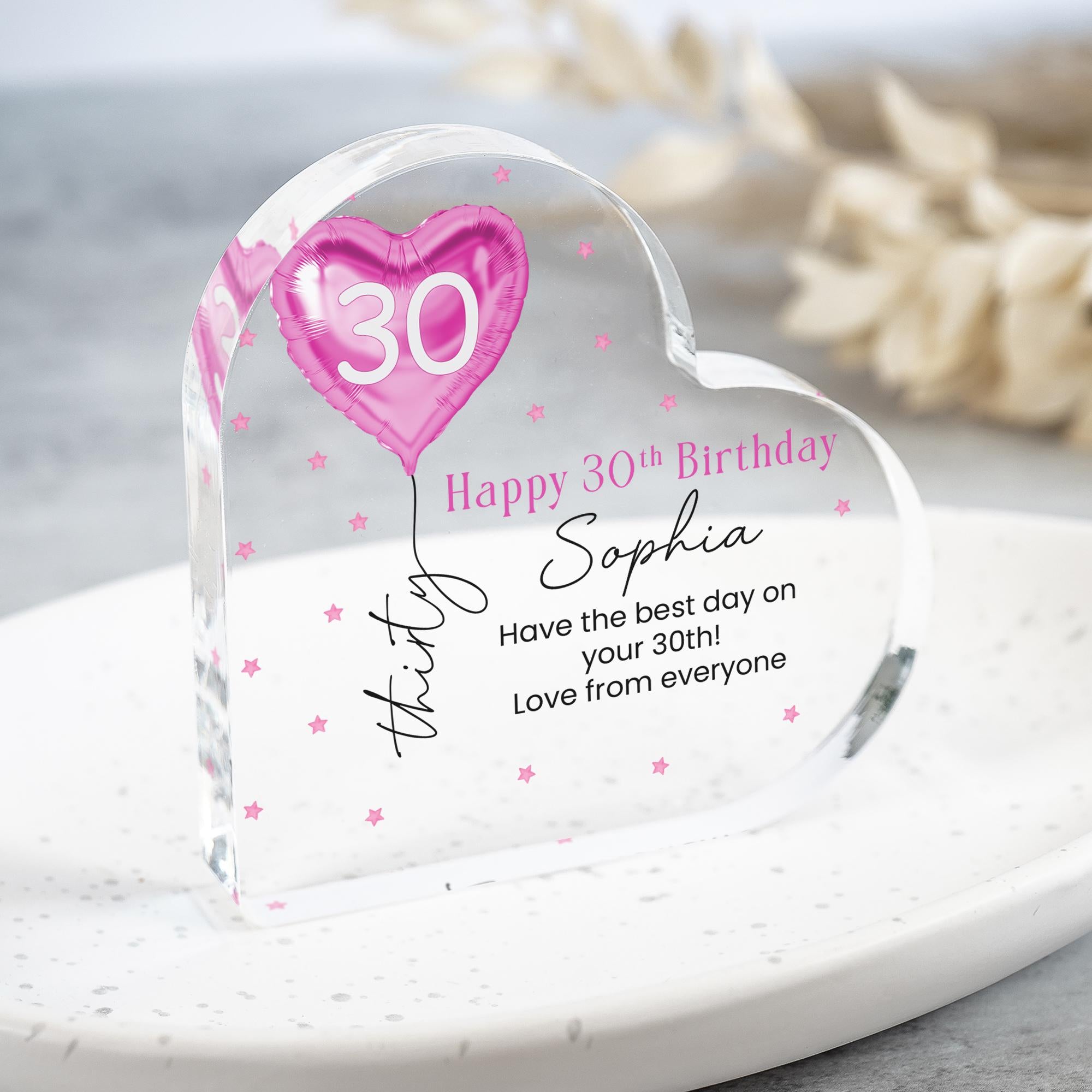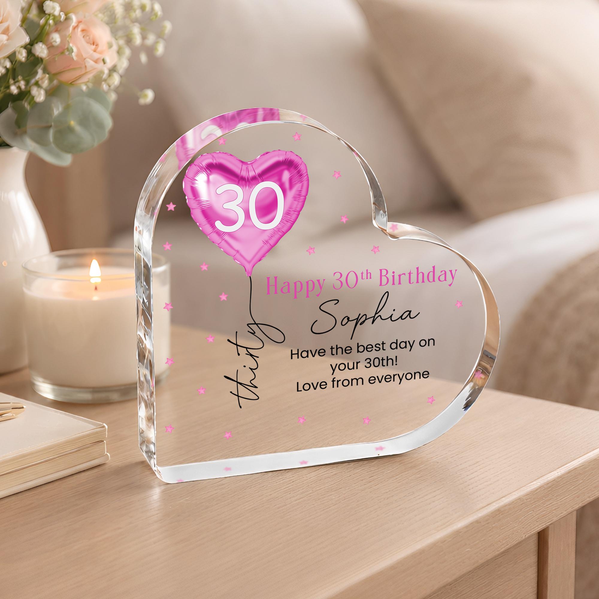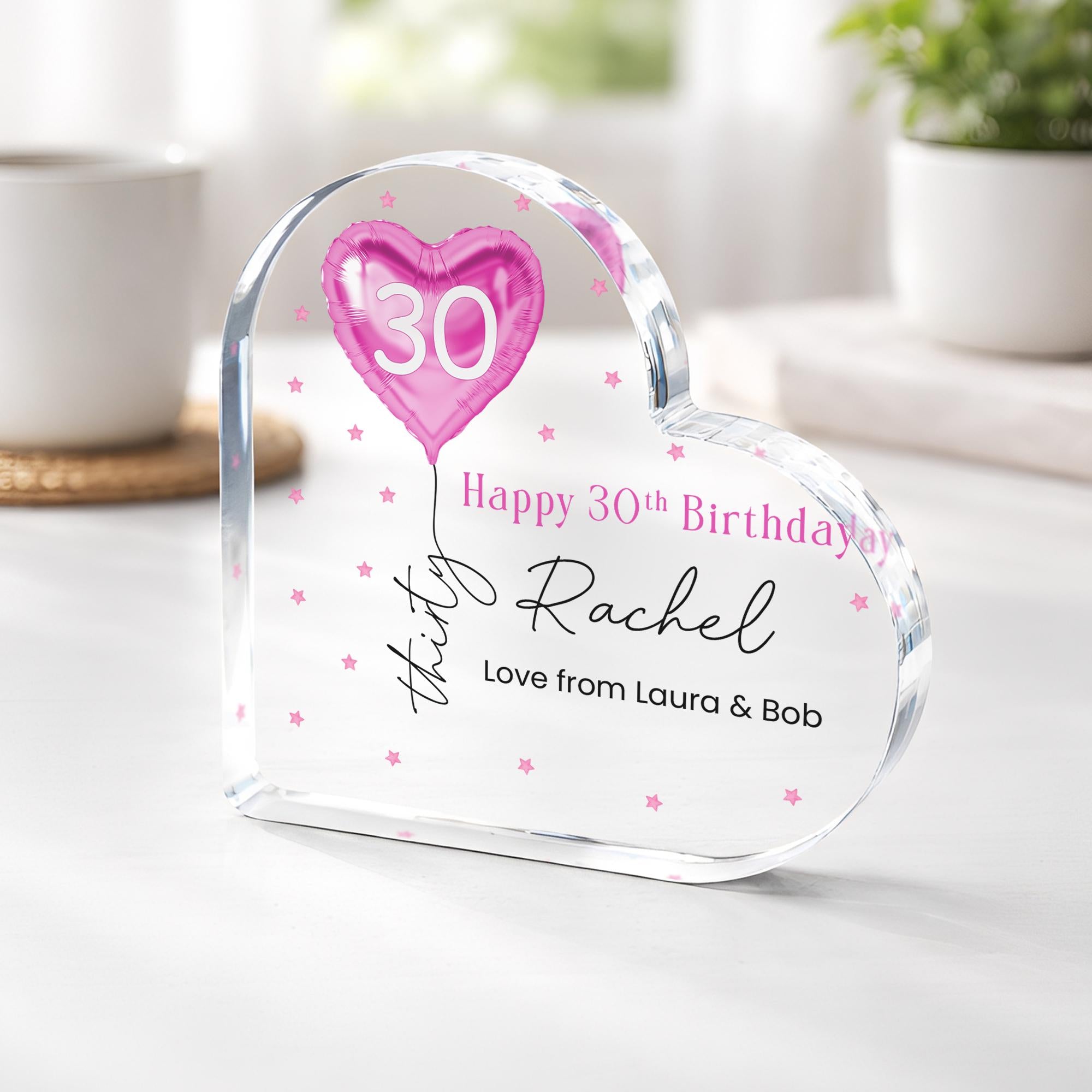 Personalised Pink Balloon 30th Birthday Gift Message Heart Plaque for Her