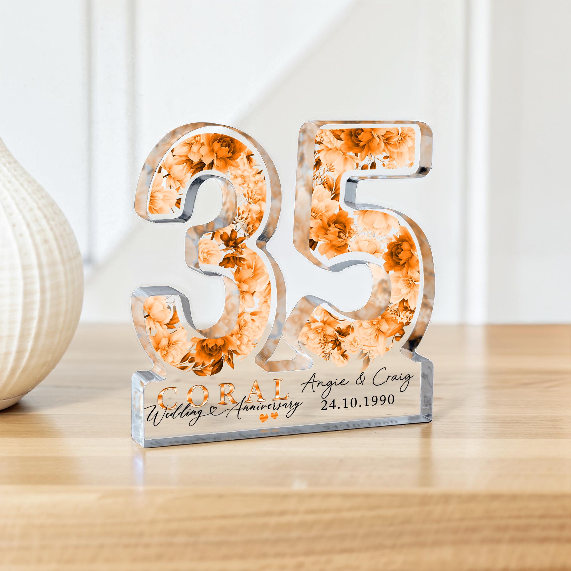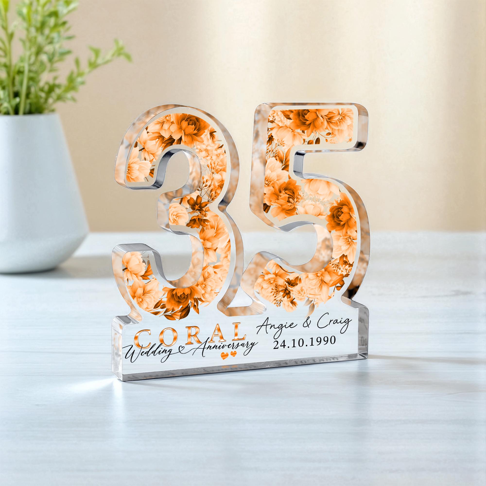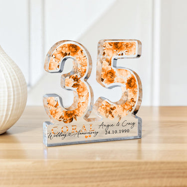 Personalised 35th Freestanding Coral Anniversary Gift Plaque