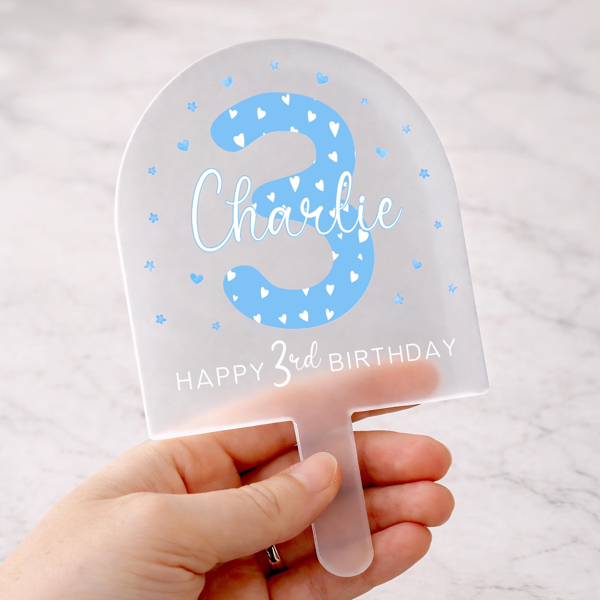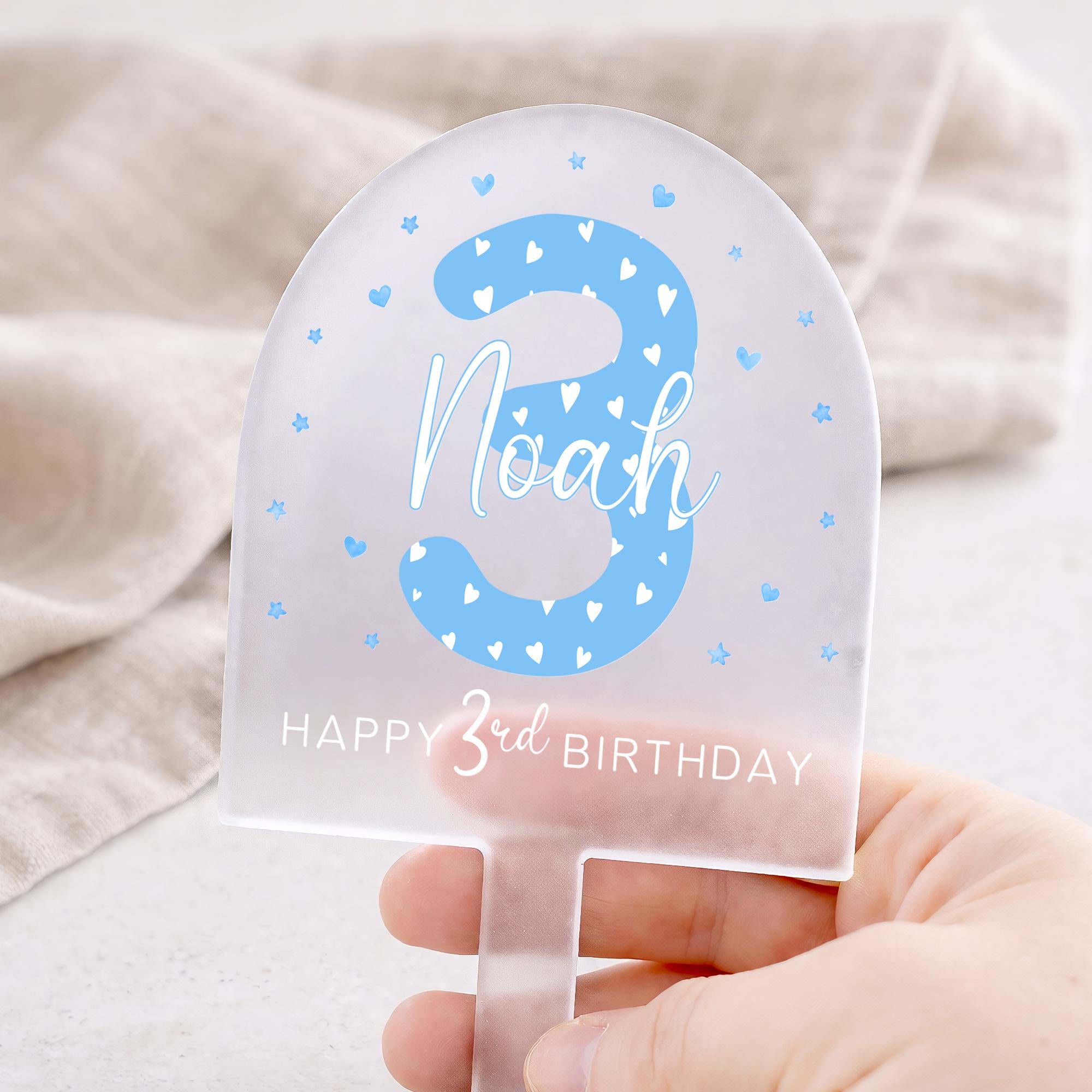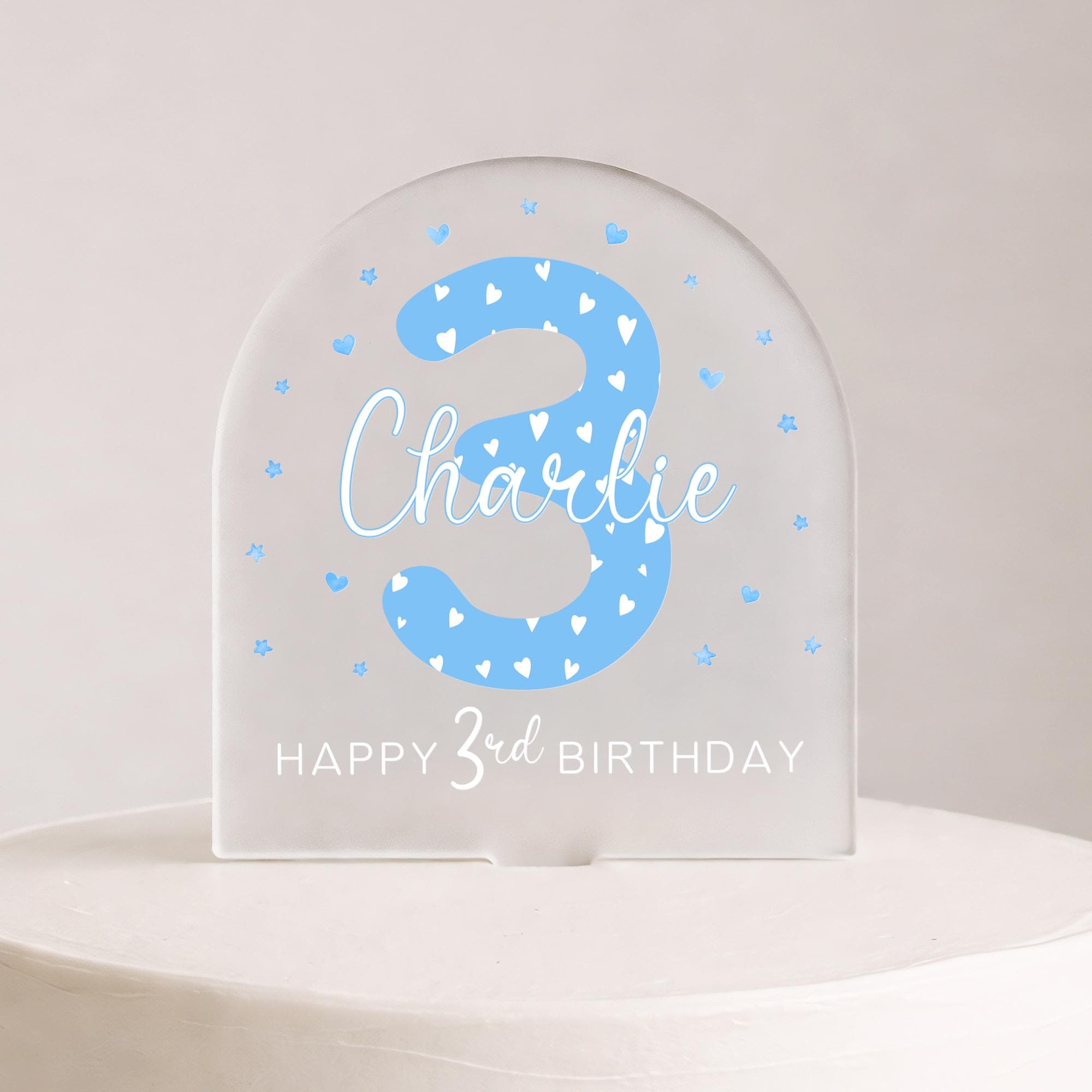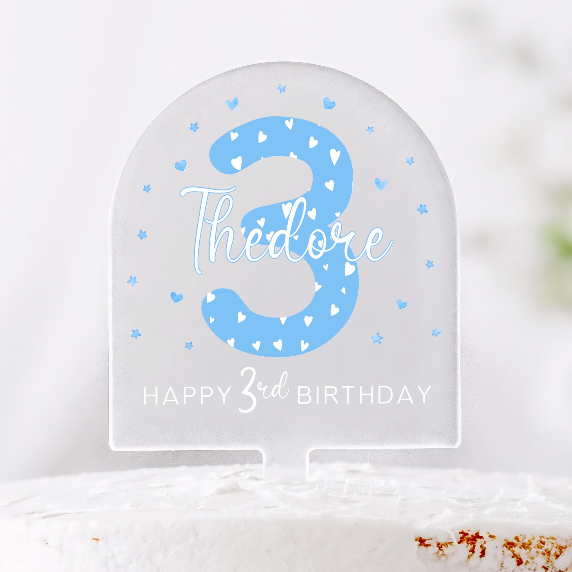 Personalised 3rd Birthday Cake Topper for Baby Boy - Blue Theme Cake Decor