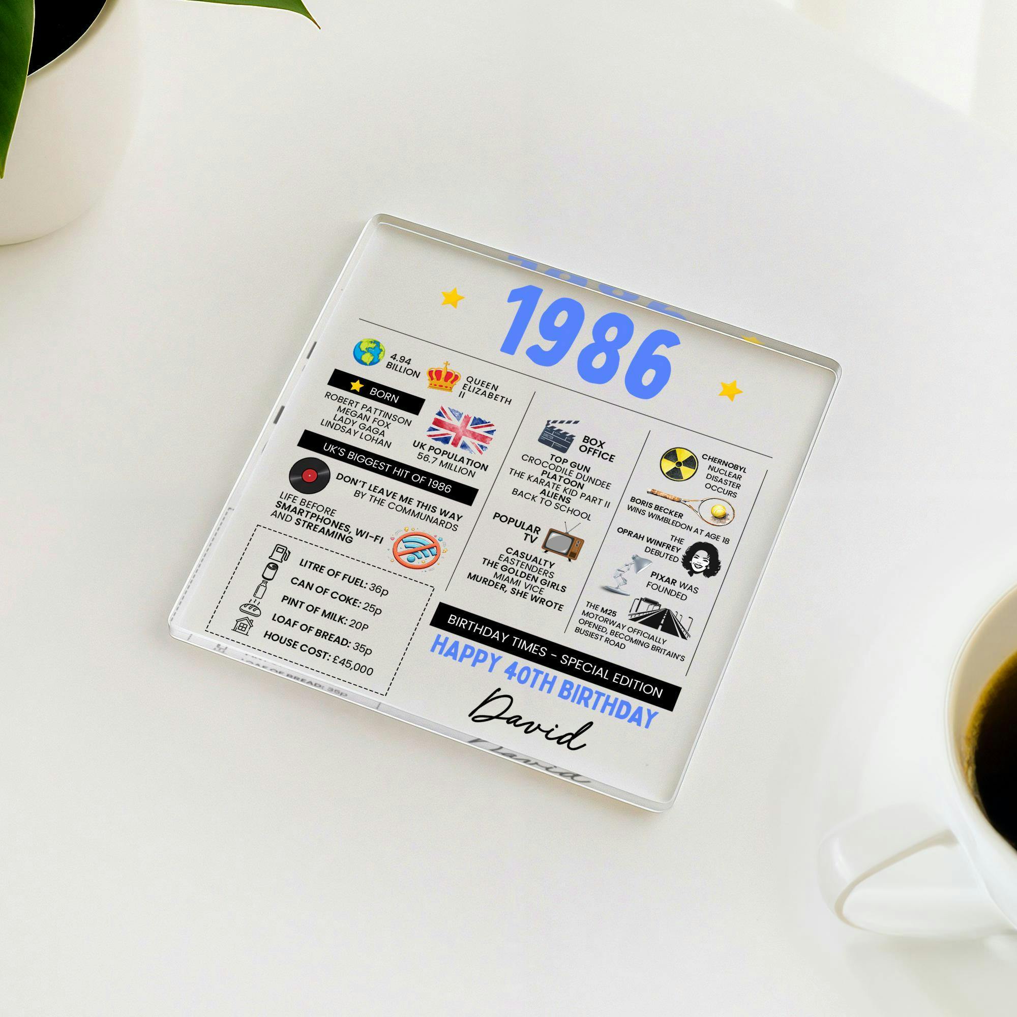 Personalised Fun Facts 40th Birthday 1986 Coaster