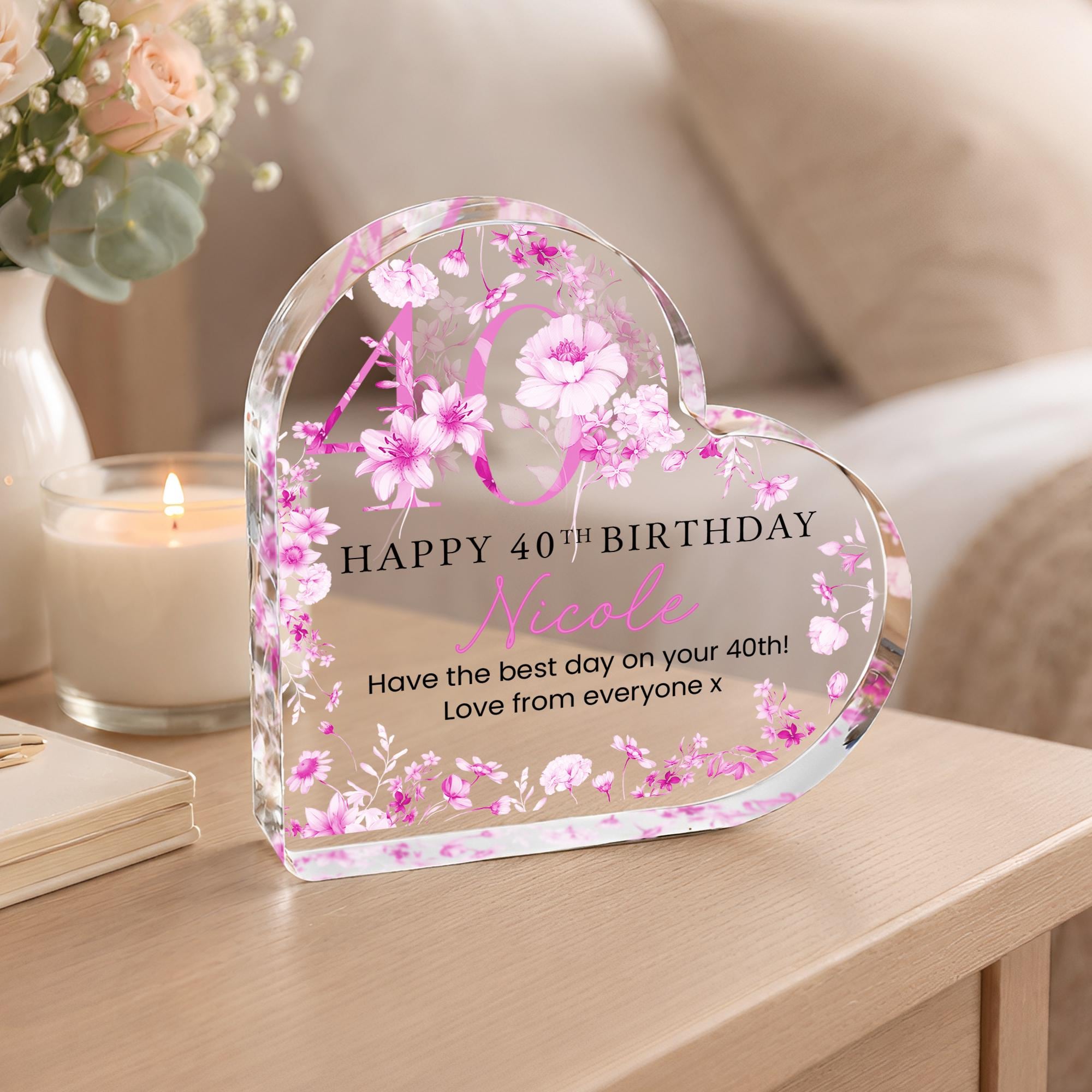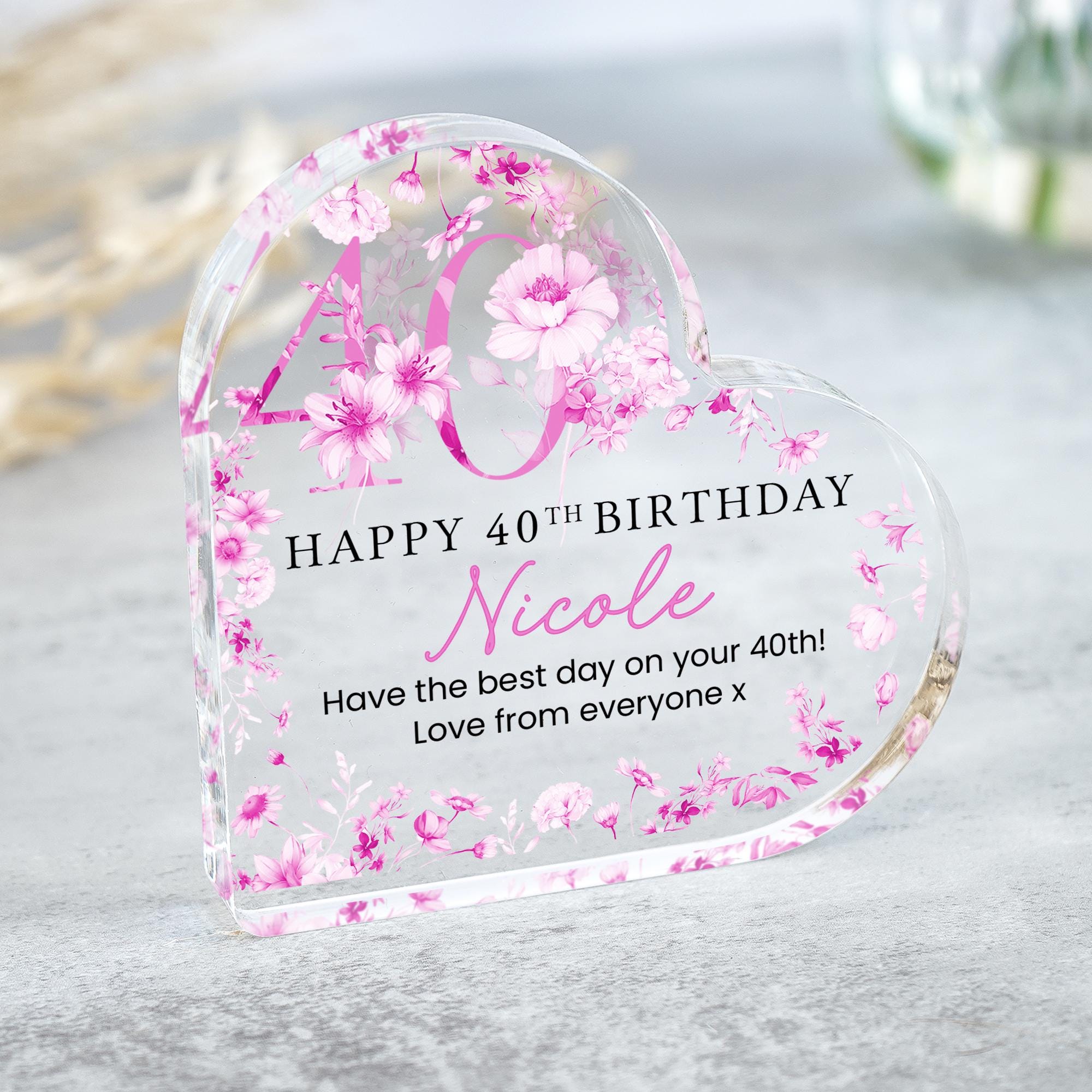 Personalised Acrylic Floral 40th Birthday Gift Plaque for Her