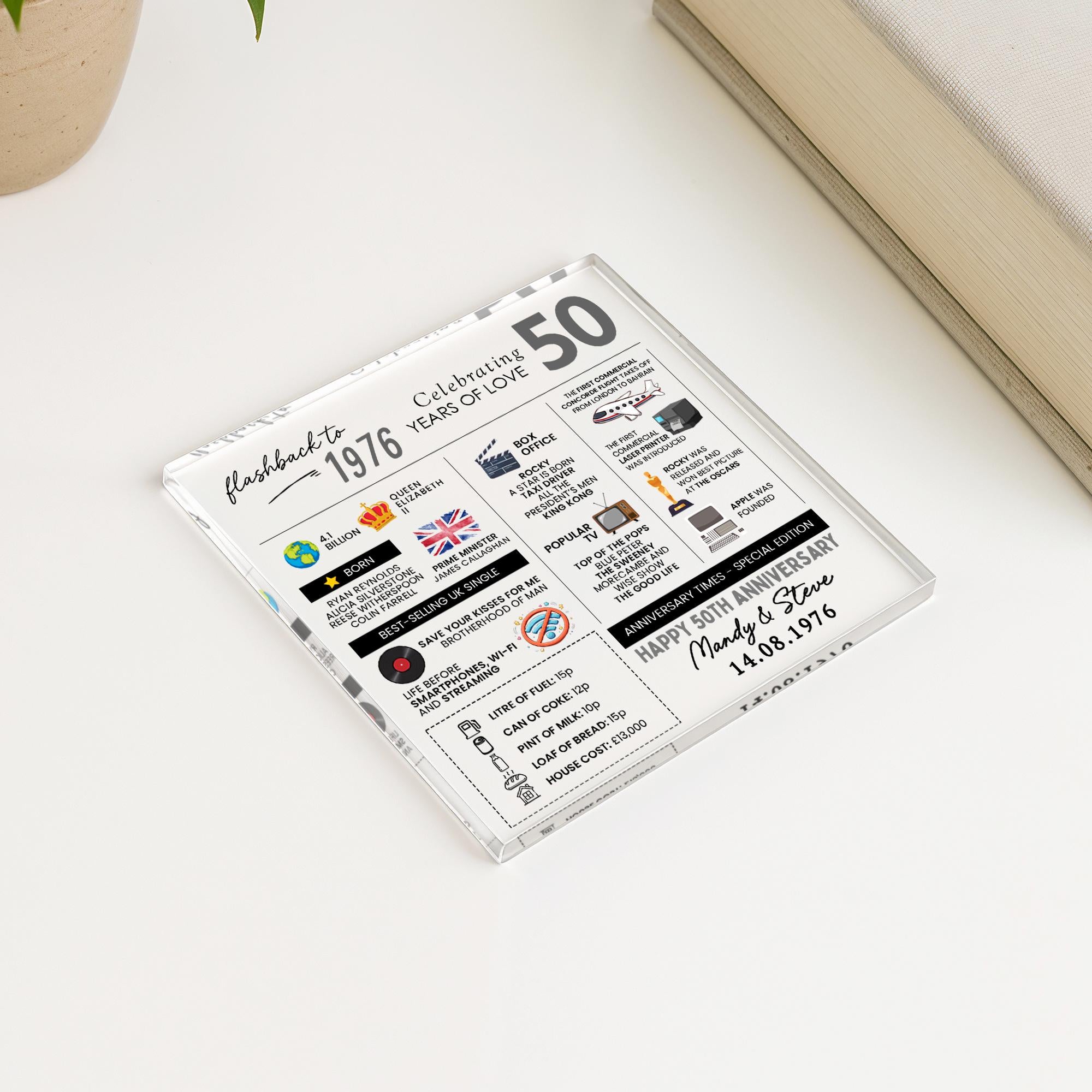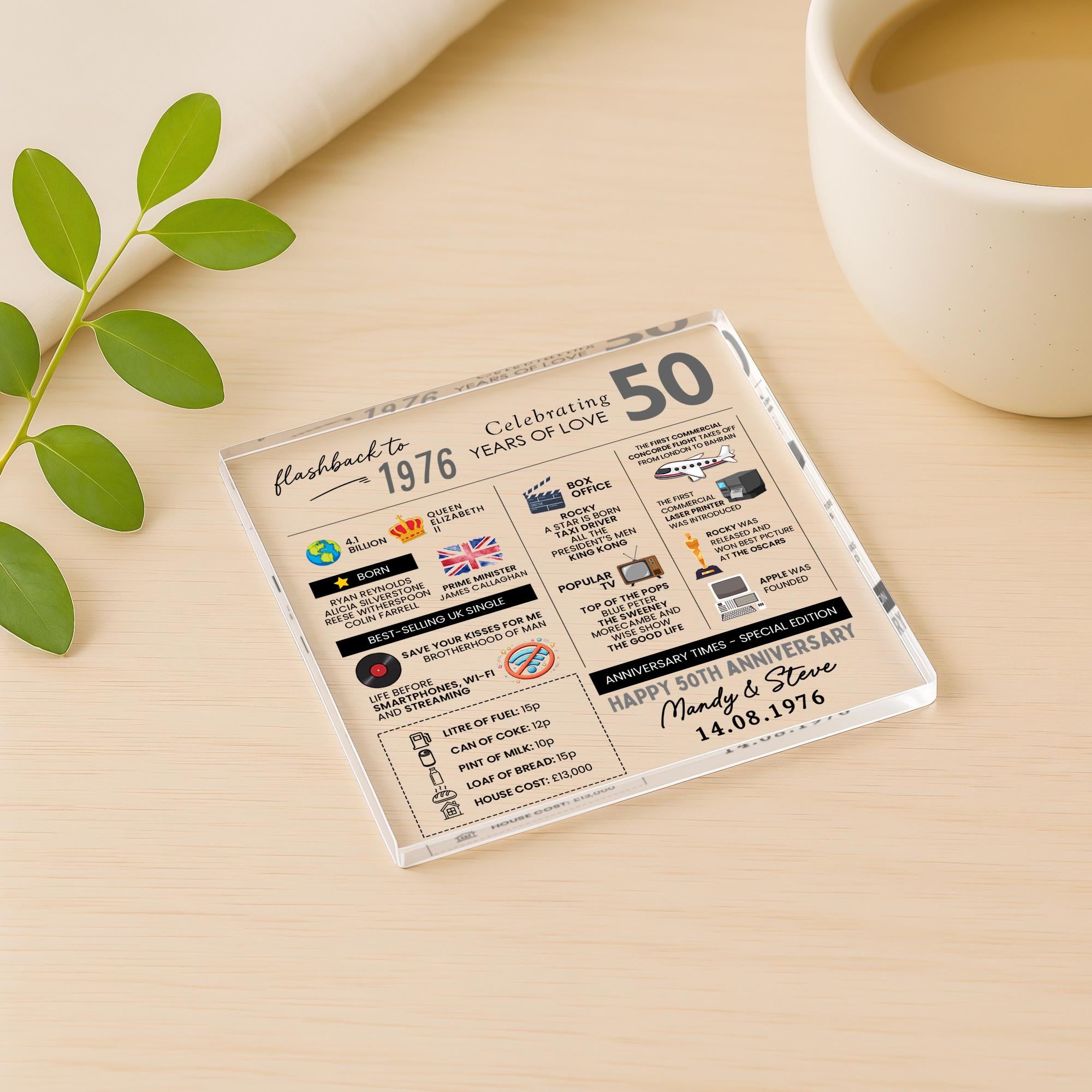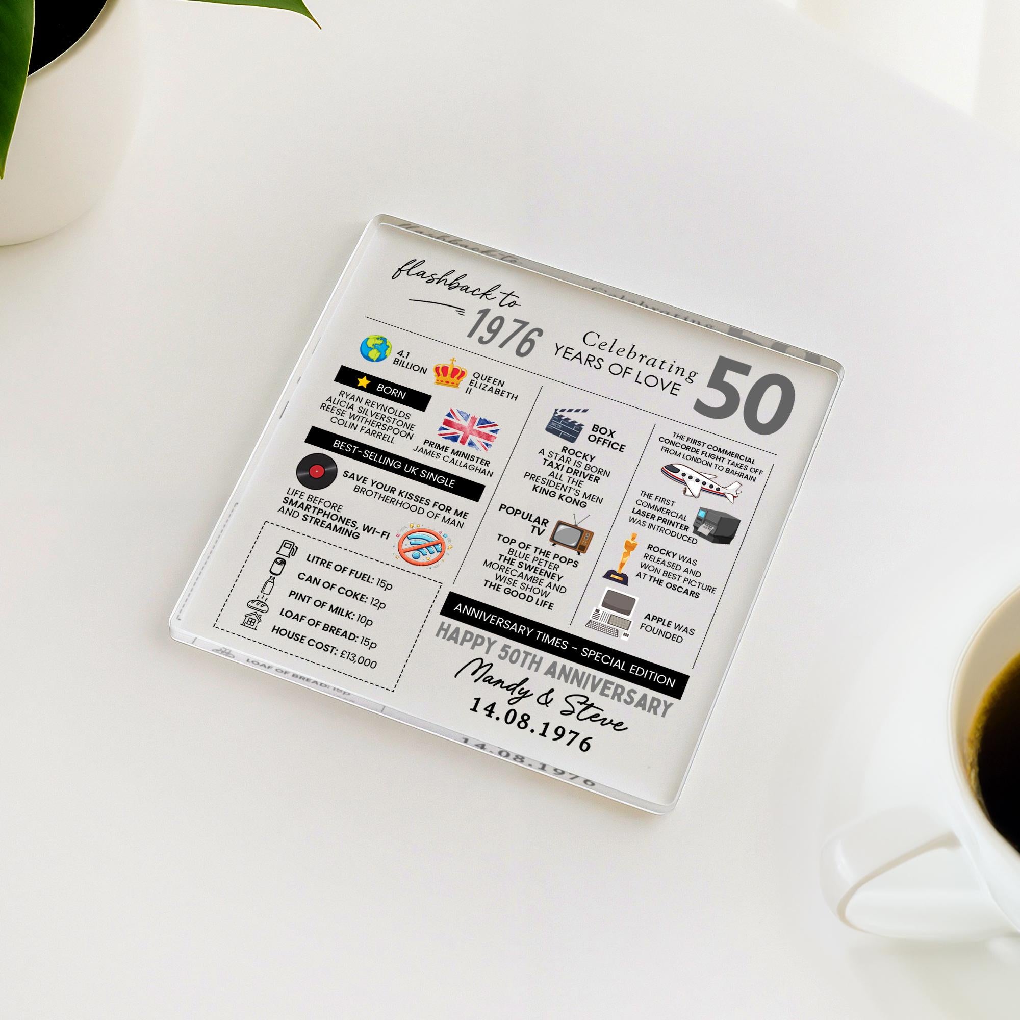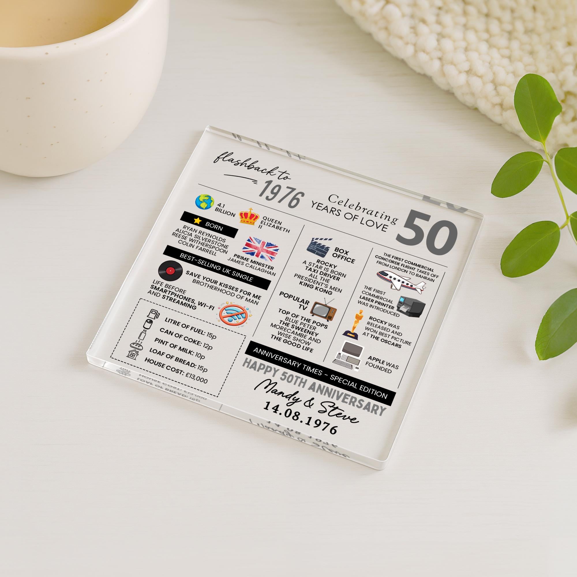 Personalised Marriage Facts 50th Anniversary Coaster Married in 1976 Keepsake