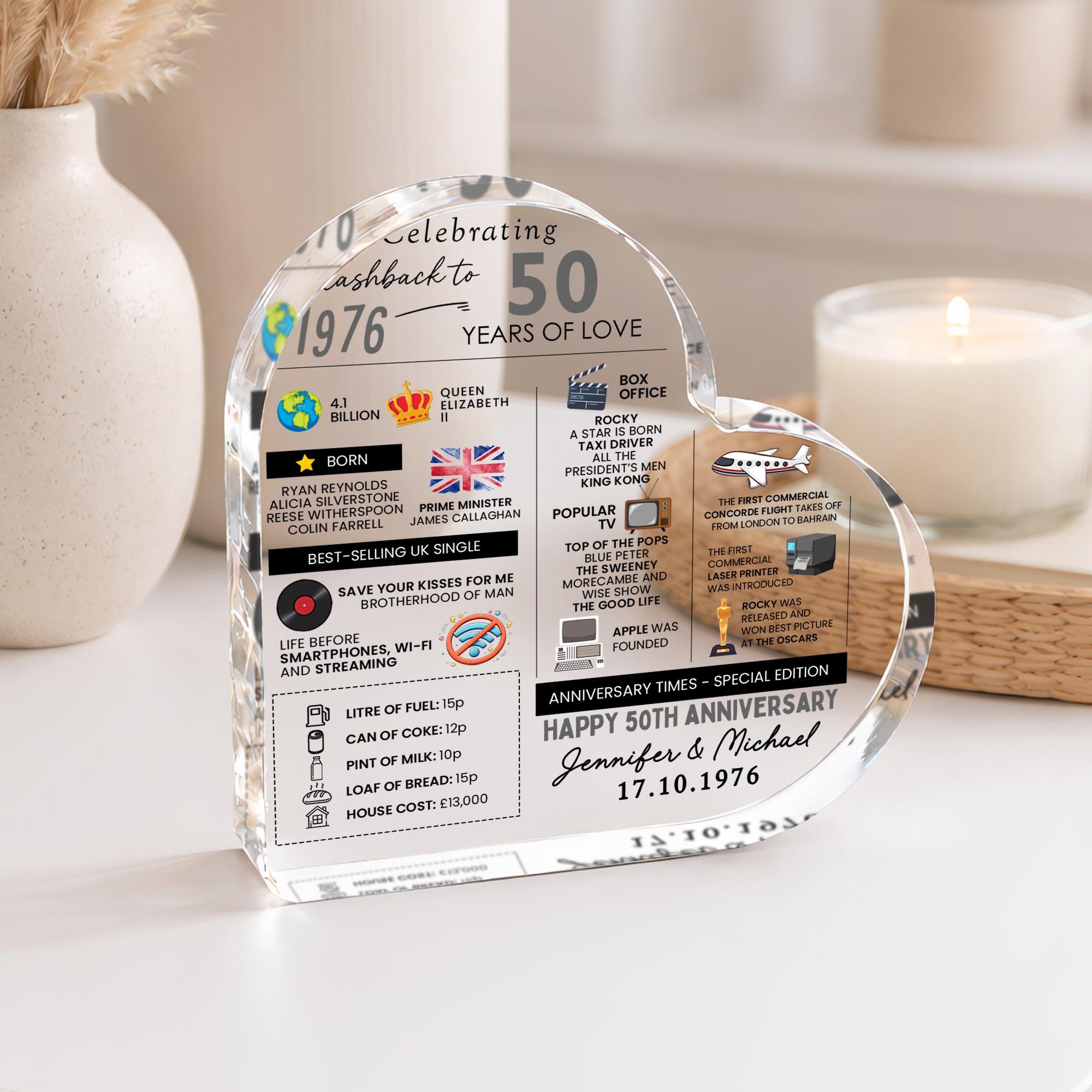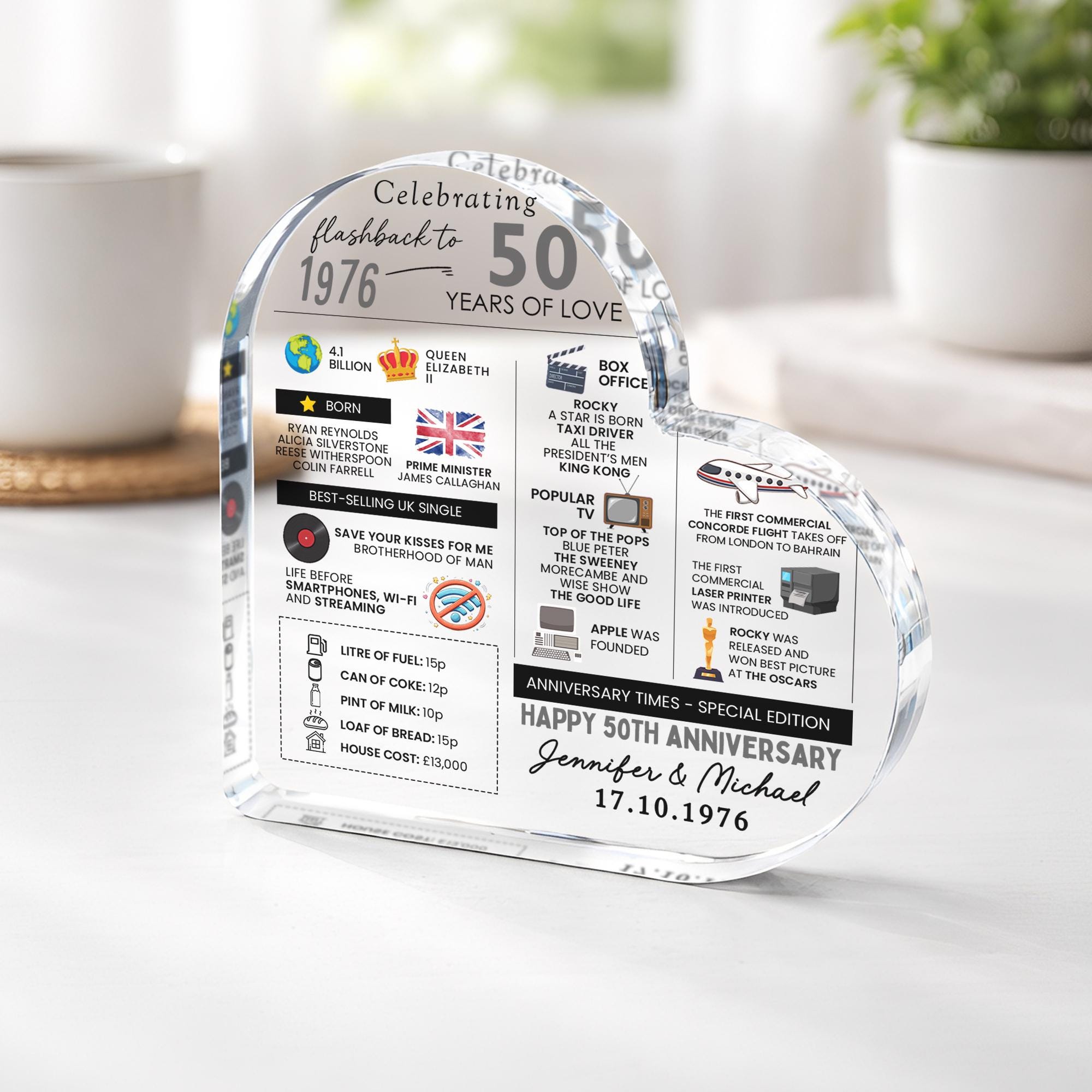 Personalised Marriage Facts 50th Anniversary Married in 1976 Heart Keepsake Plaque