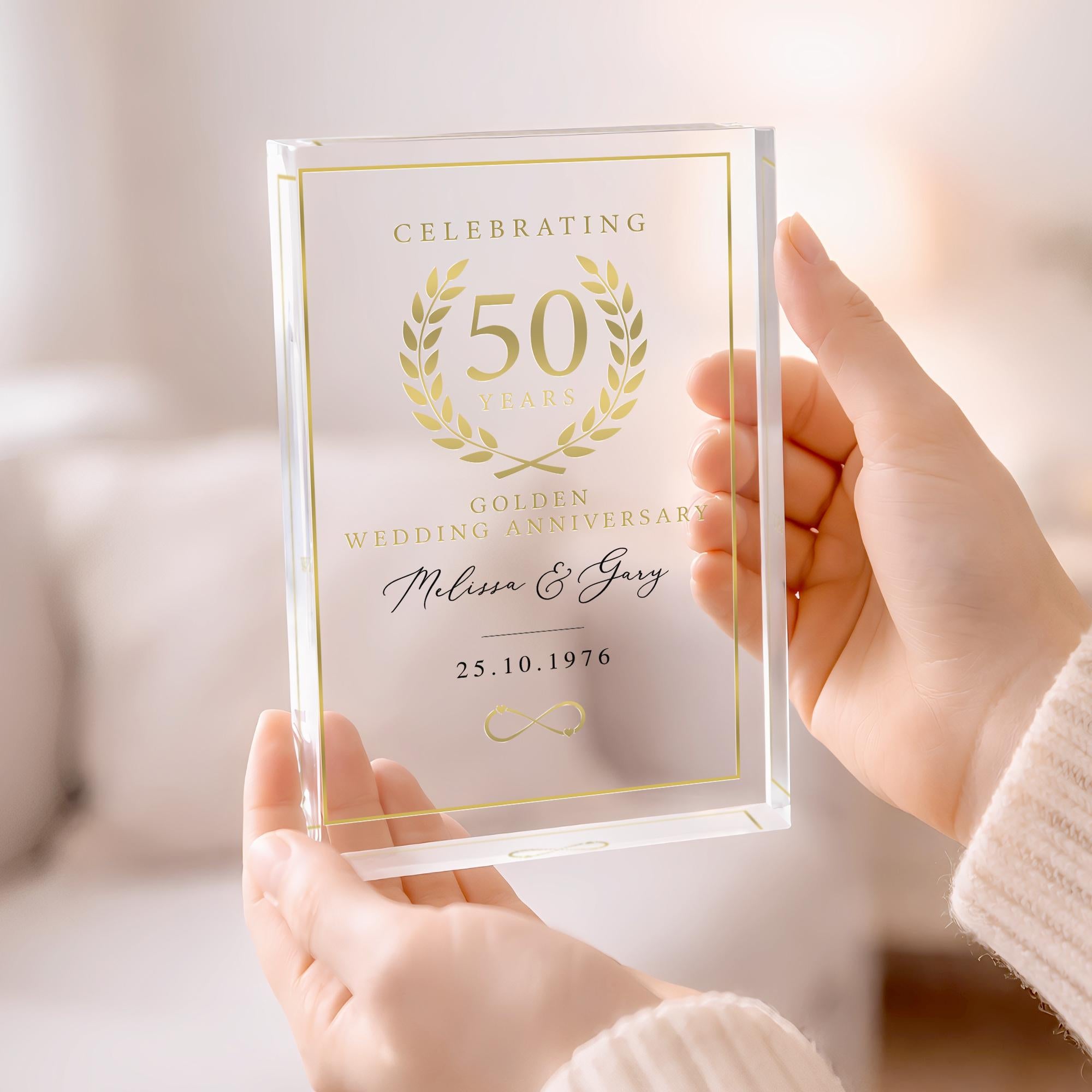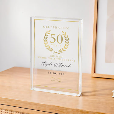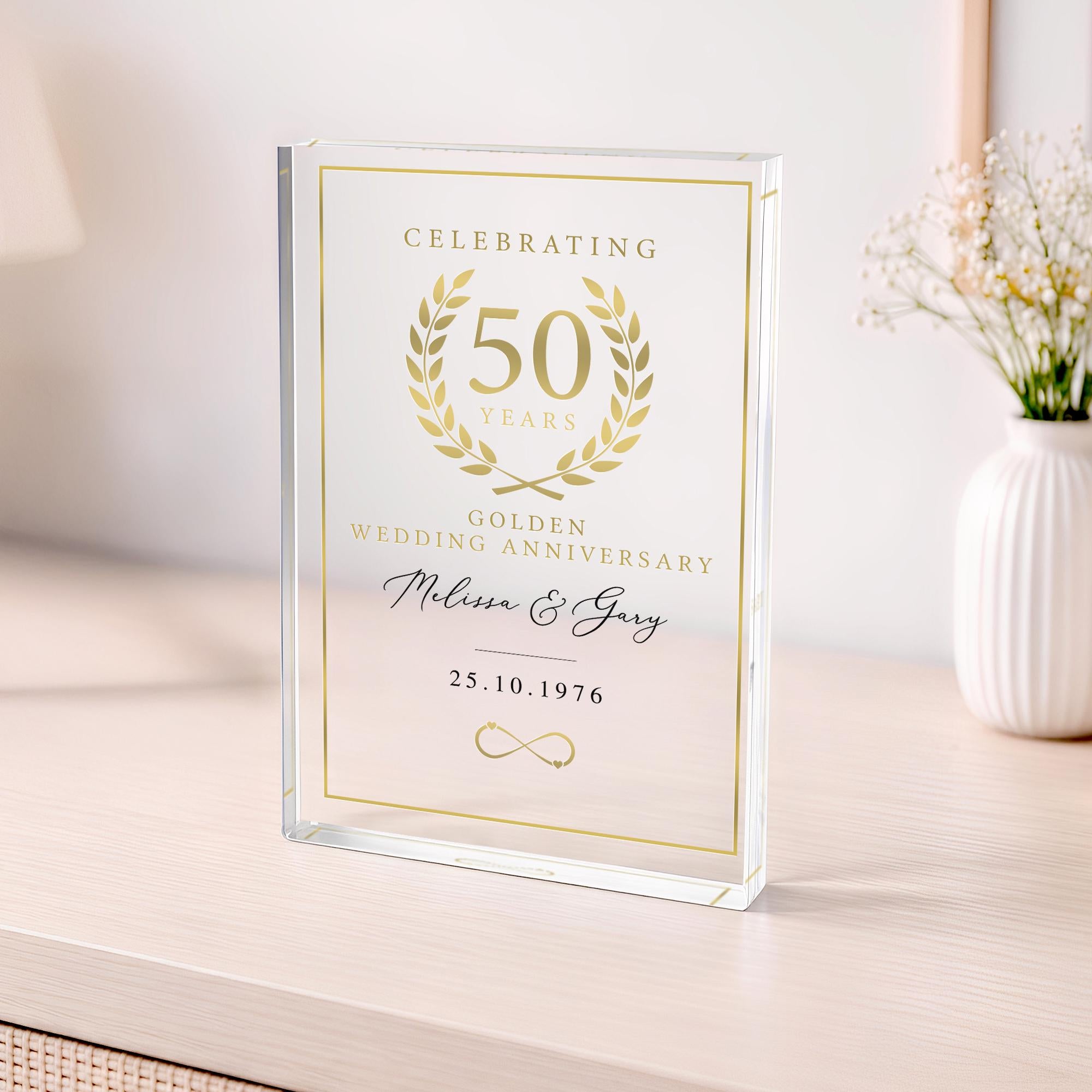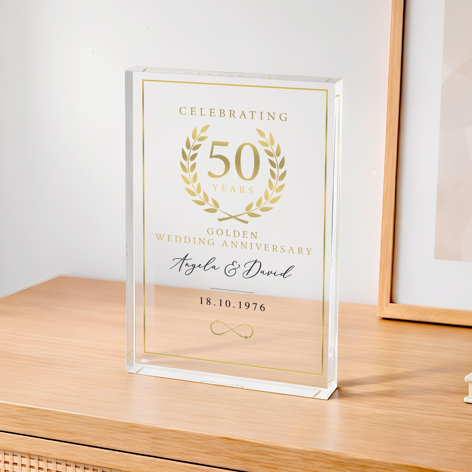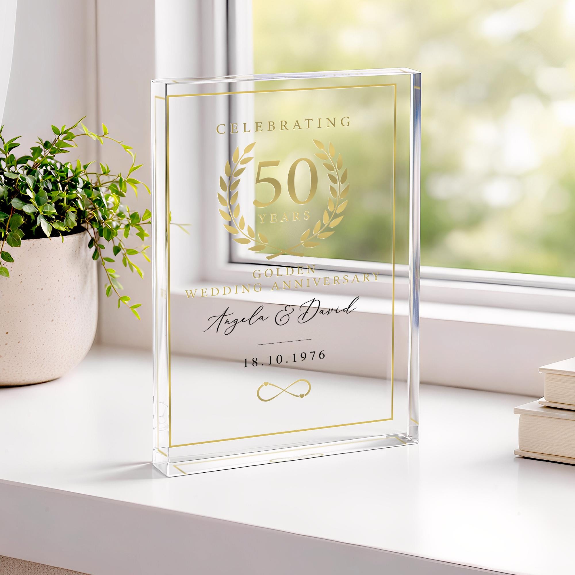 Personalised 50th Golden Wedding Anniversary Gift Plaque Polished Clear Acrylic