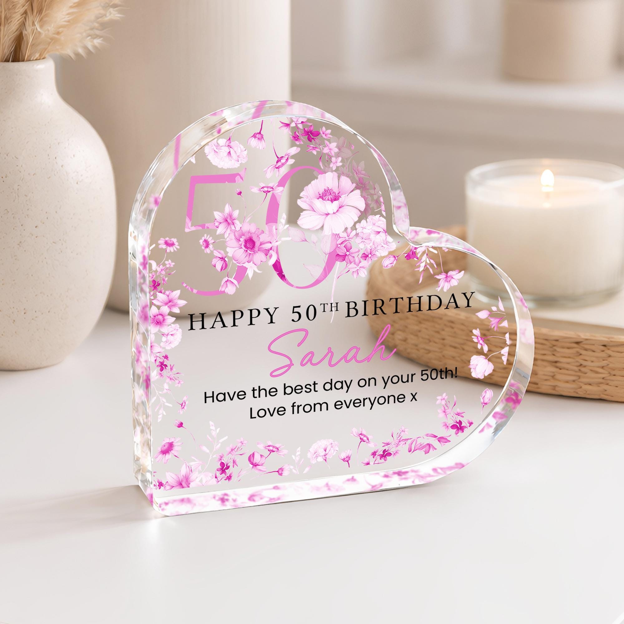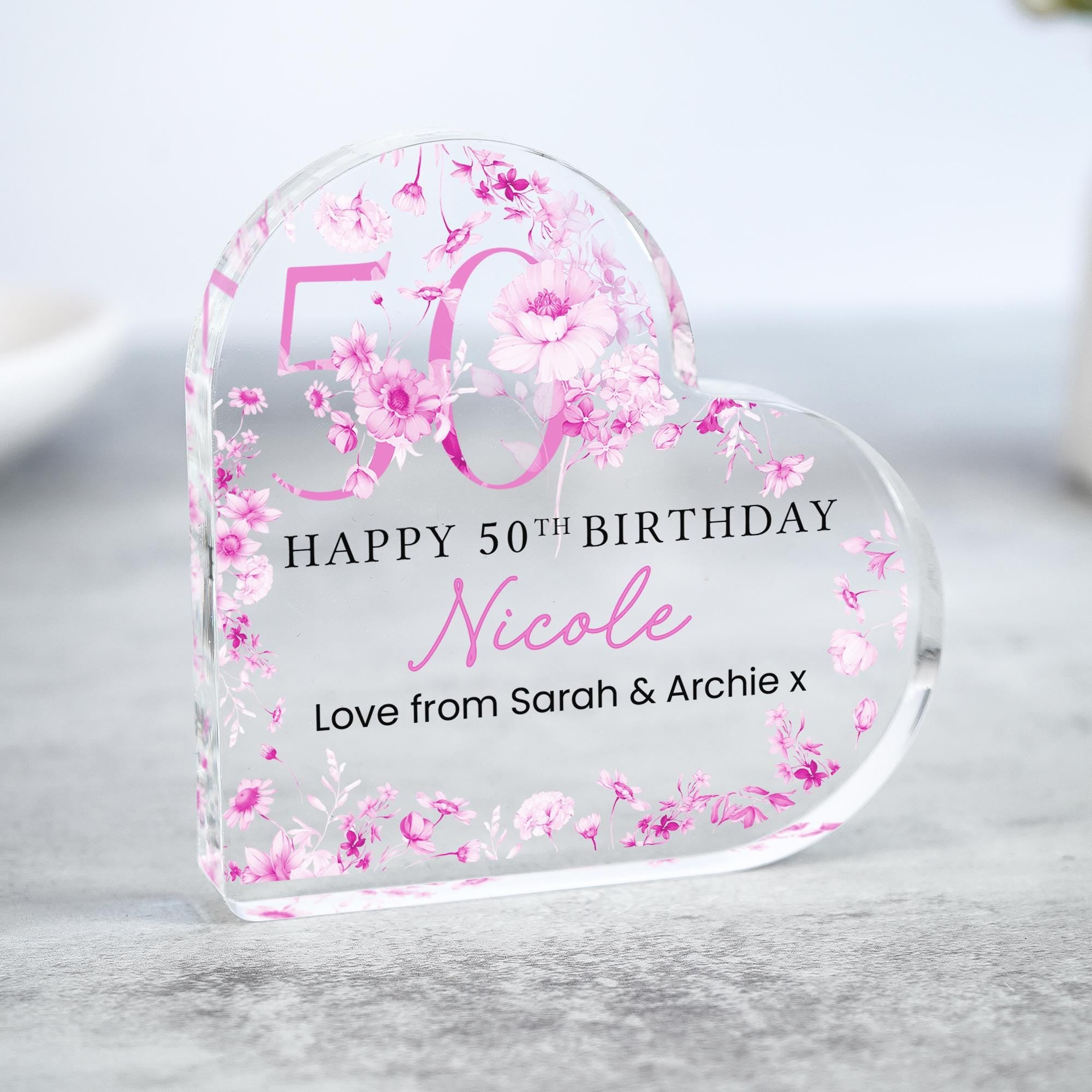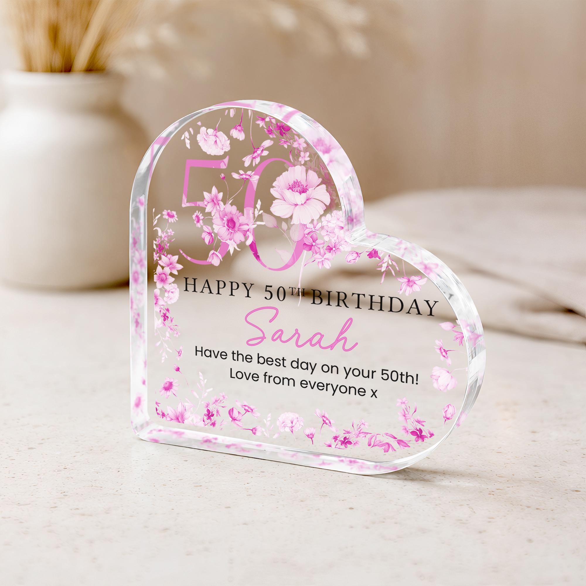 Personalised Acrylic Floral 50th Birthday Gift Plaque for Mum From Daughter/Son