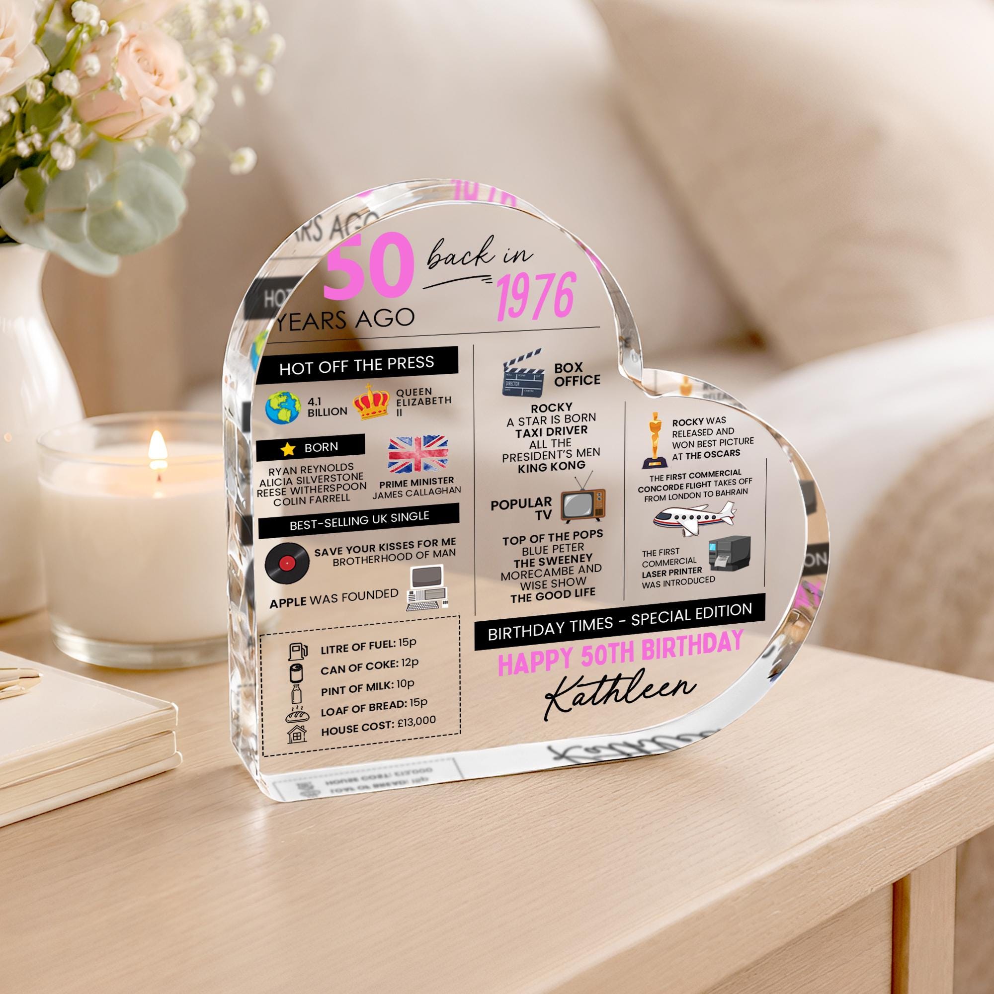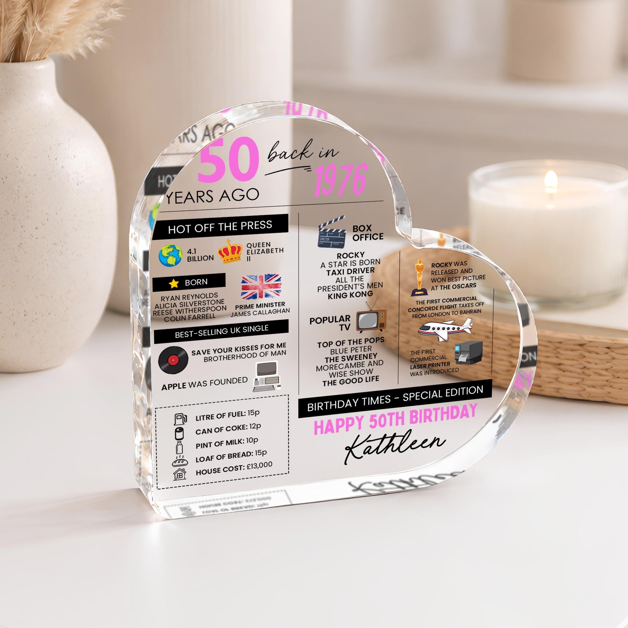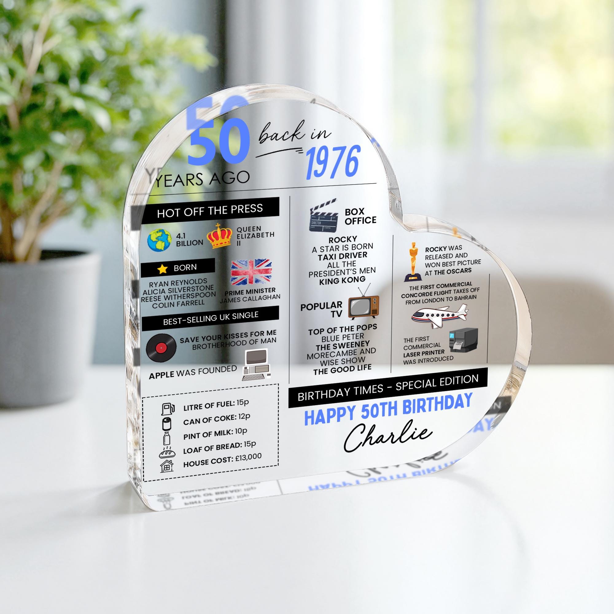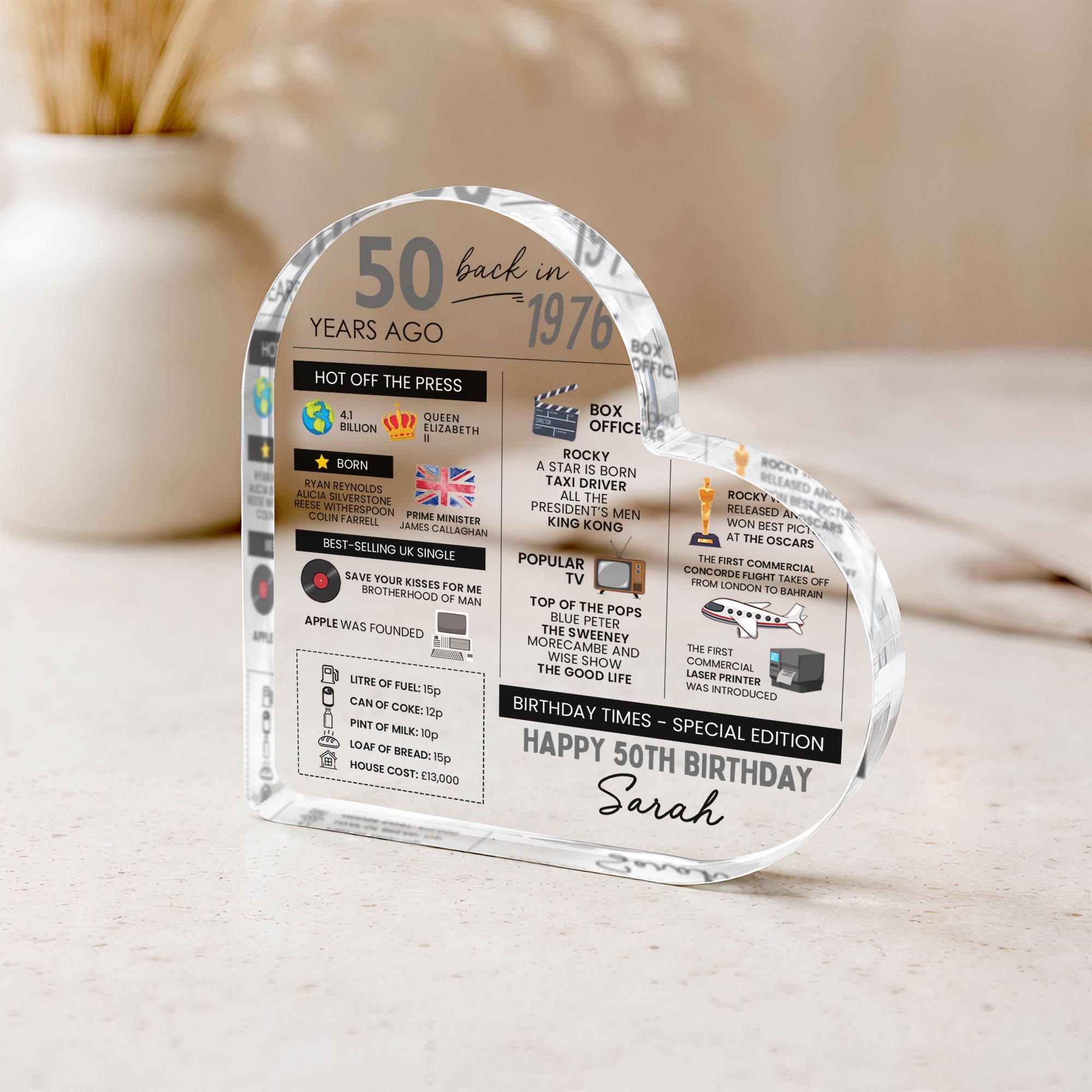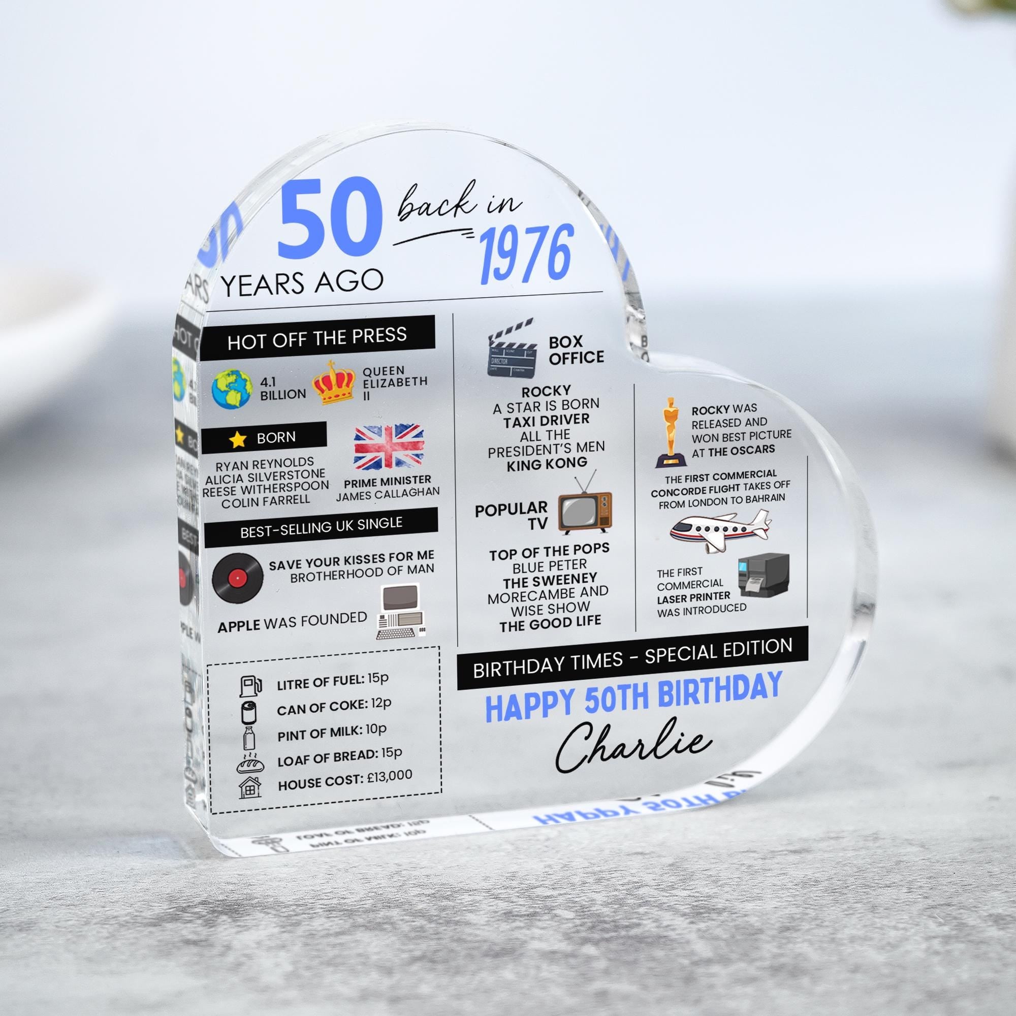 Personalised 50th Fun Facts Birthday Gift Plaque Keepsake Born in 1976