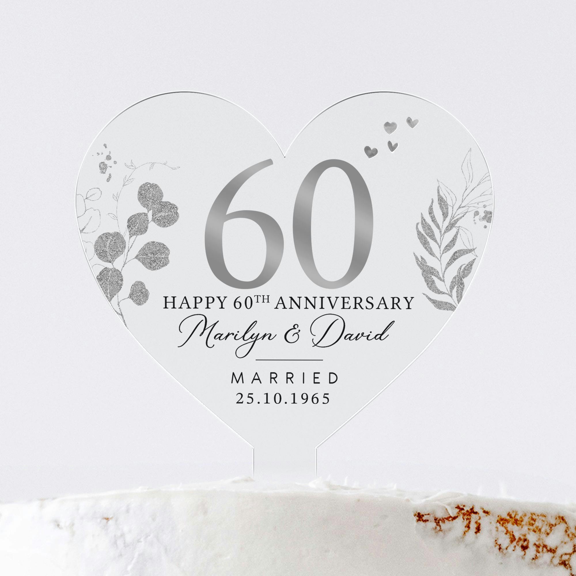 Personalised 60th Diamond Anniversary Heart Cake Topper