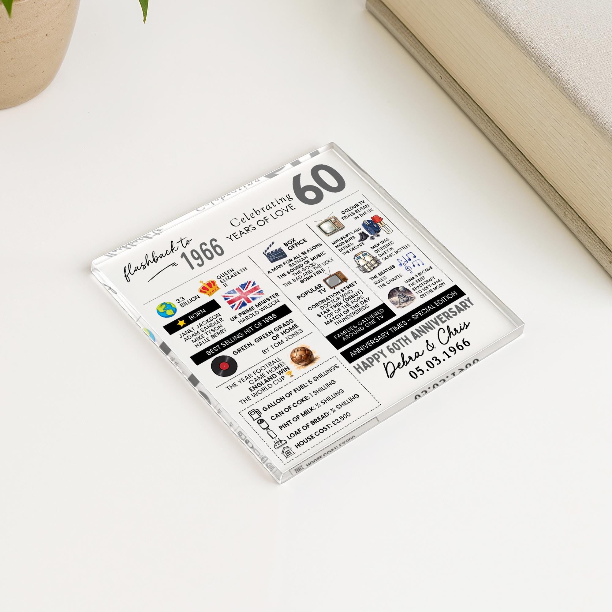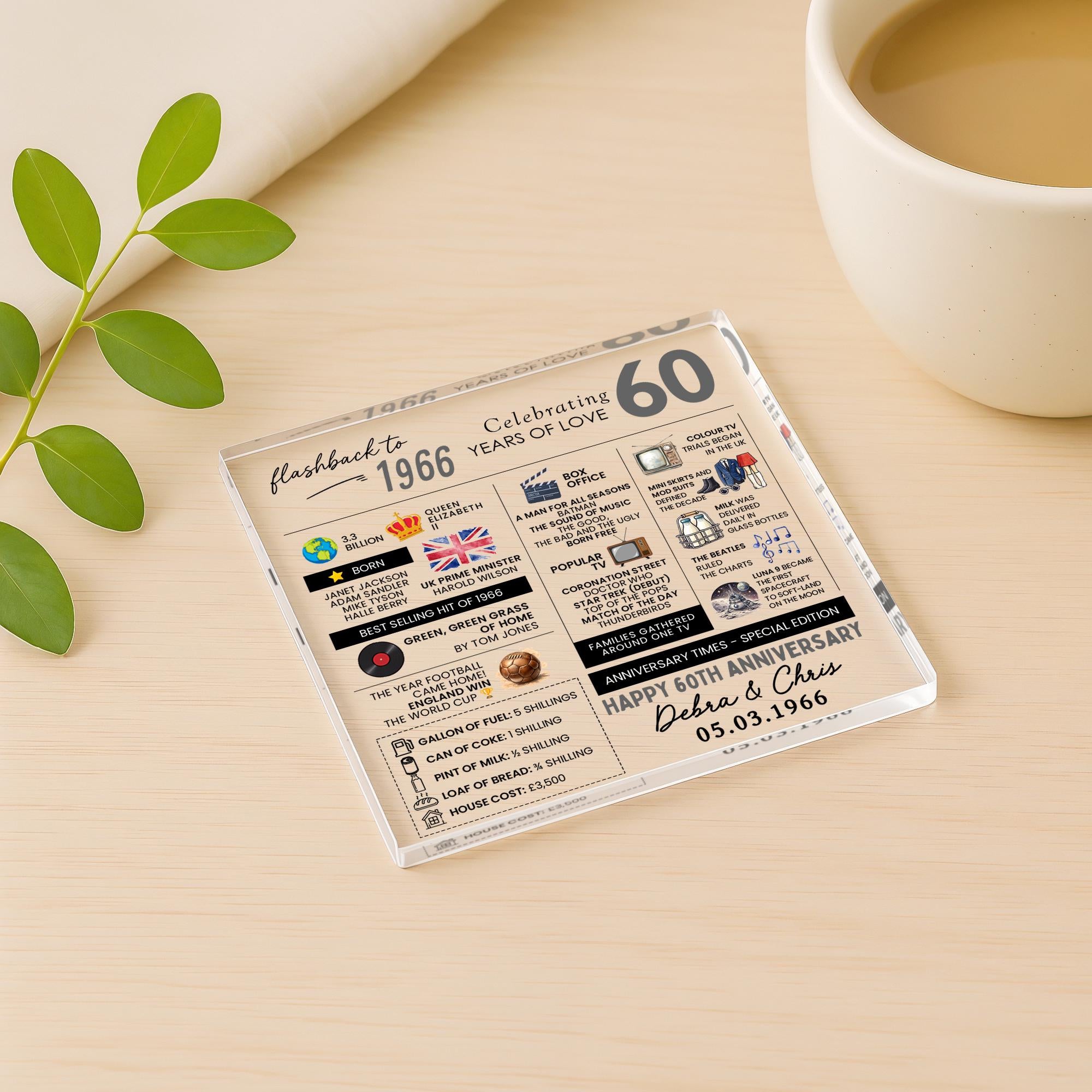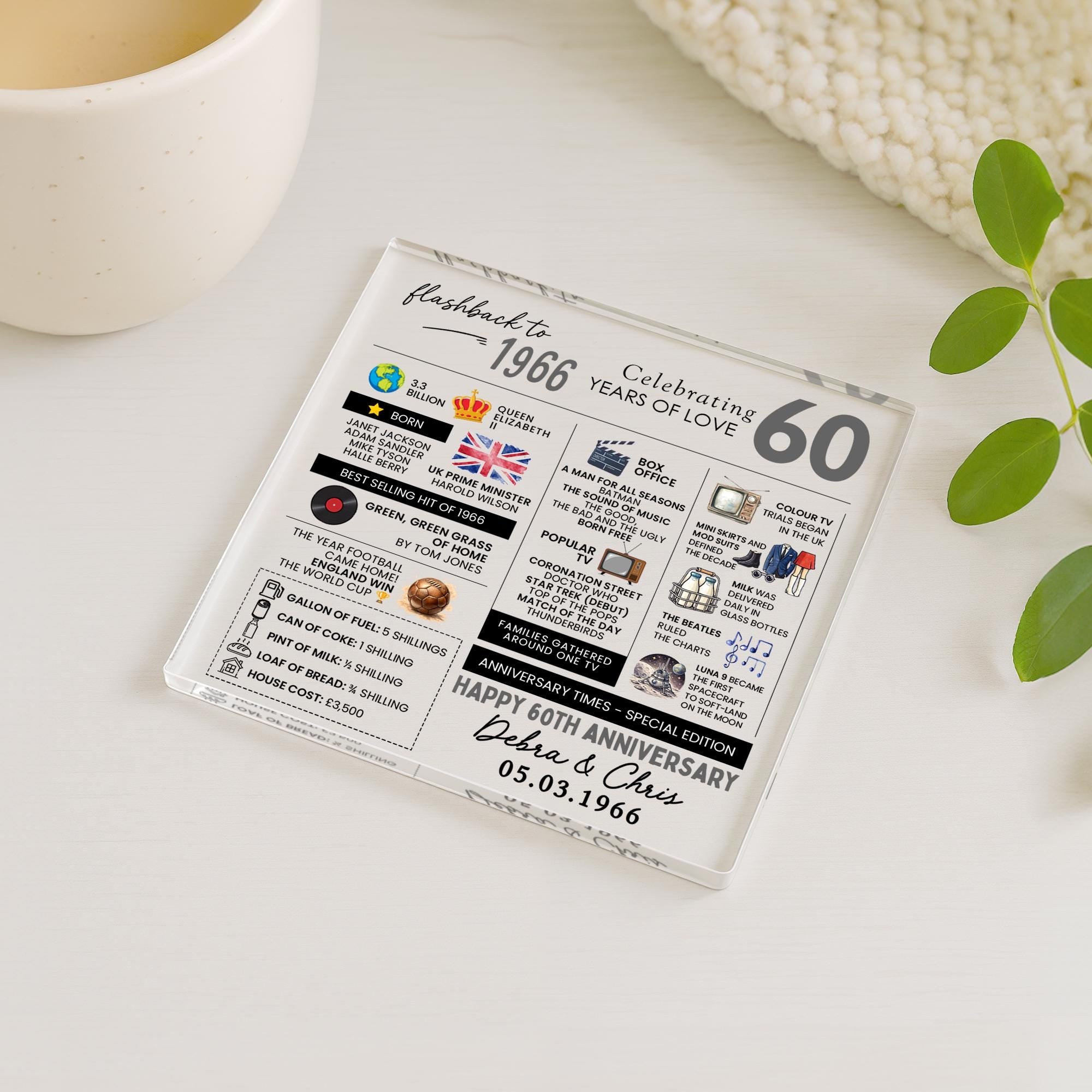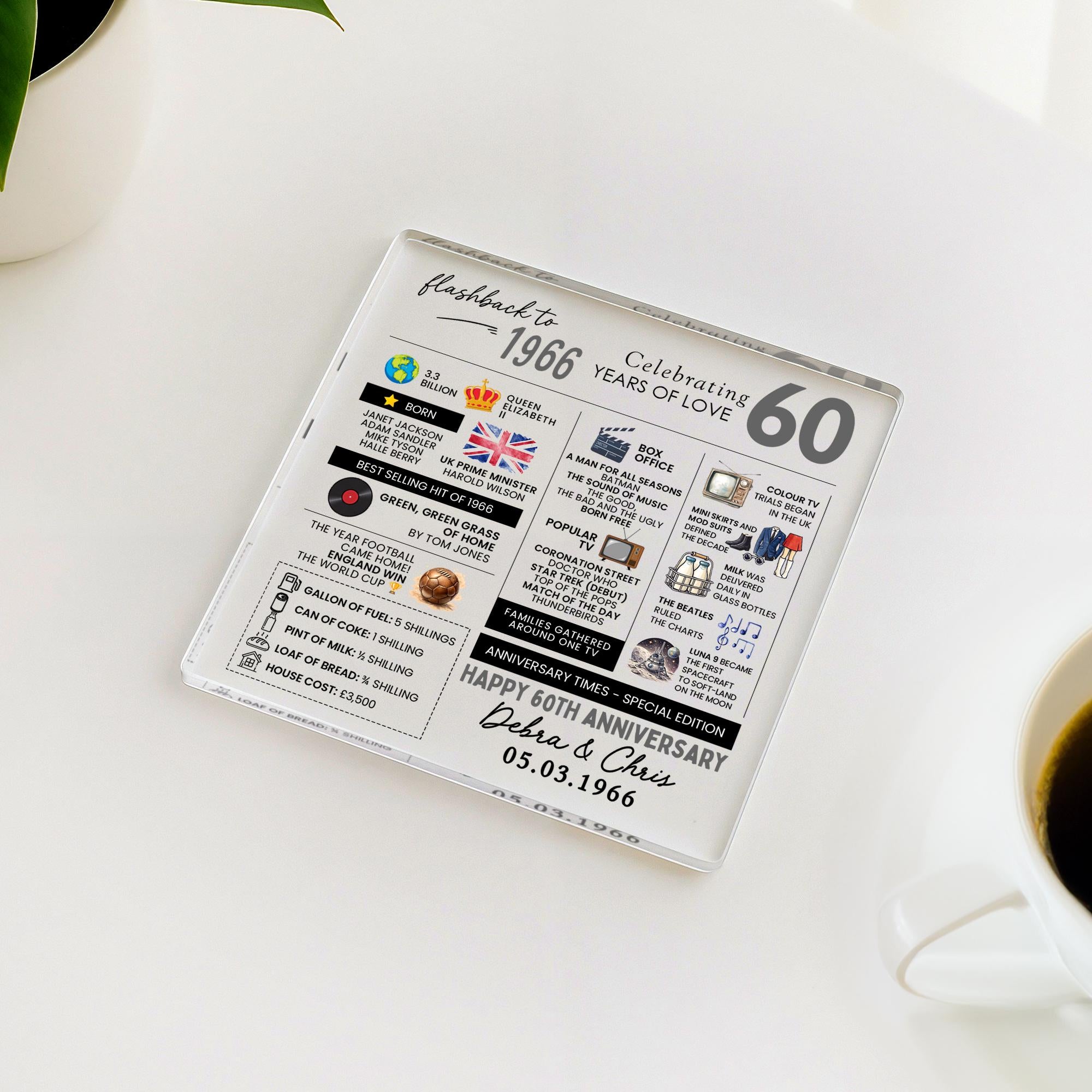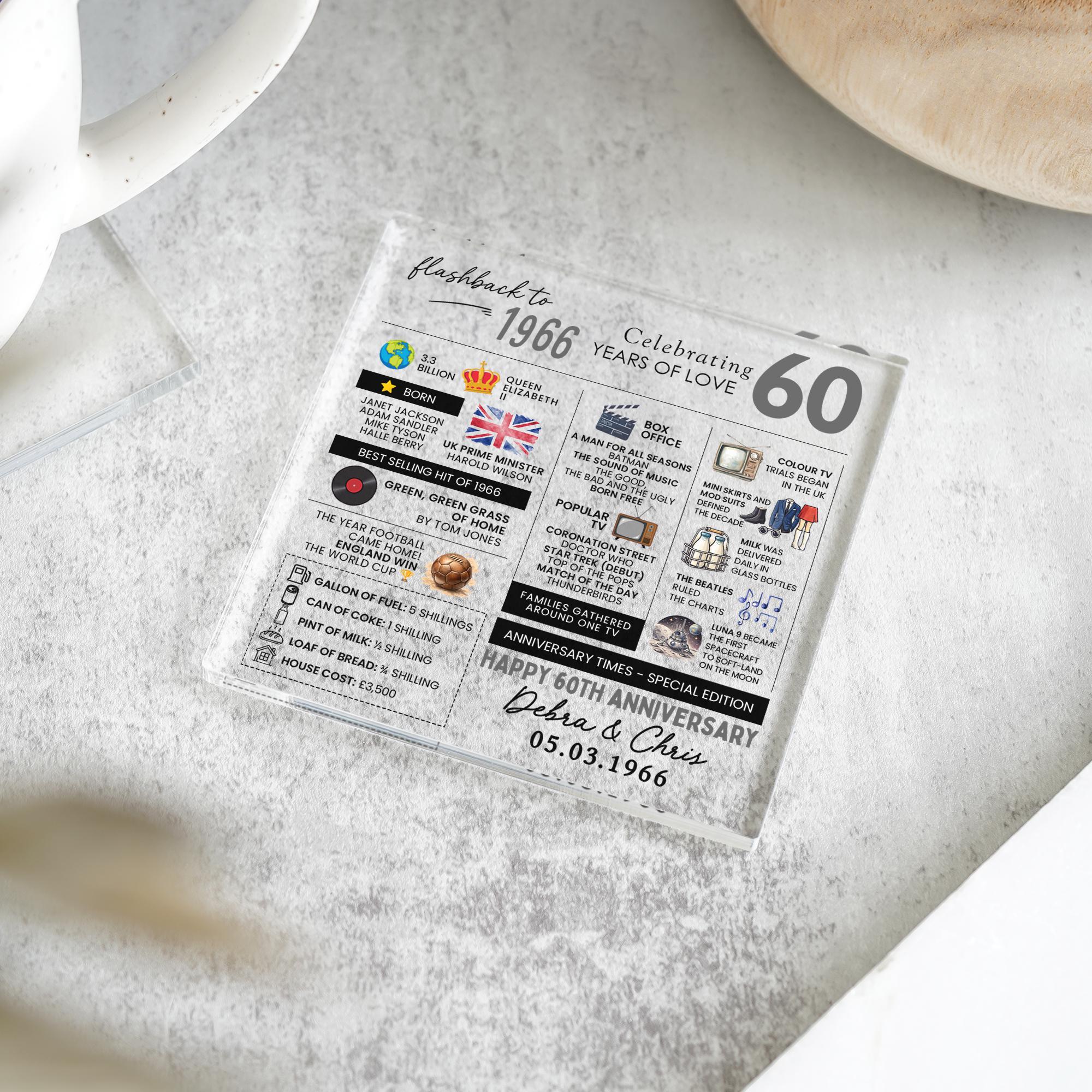 Personalised Marriage Facts 60th Anniversary Coaster Married in 1966 Keepsake