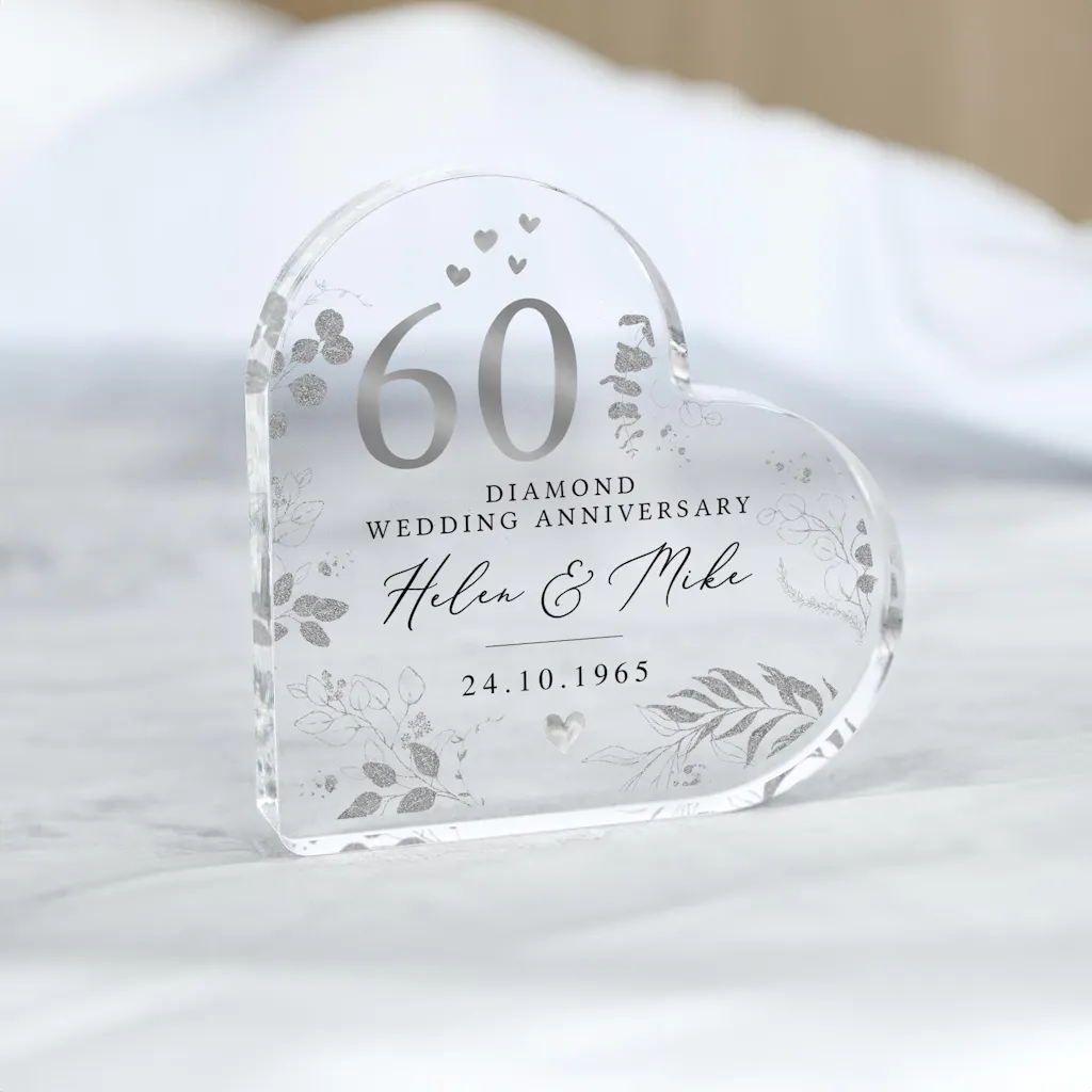 Personalised 60th Diamond Wedding Anniversary Heart Plaque