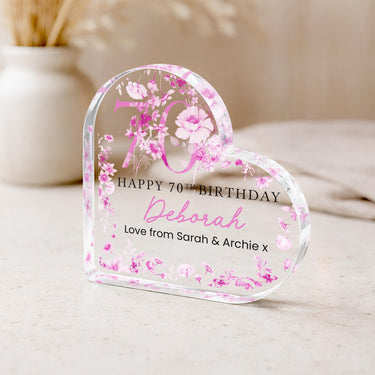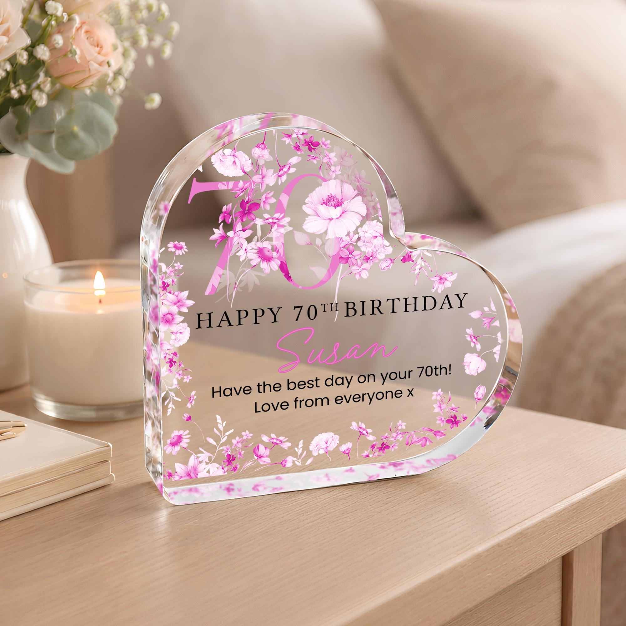 Personalised Acrylic Floral 70th Birthday Gift Plaque for Mum From Daughter/Son
