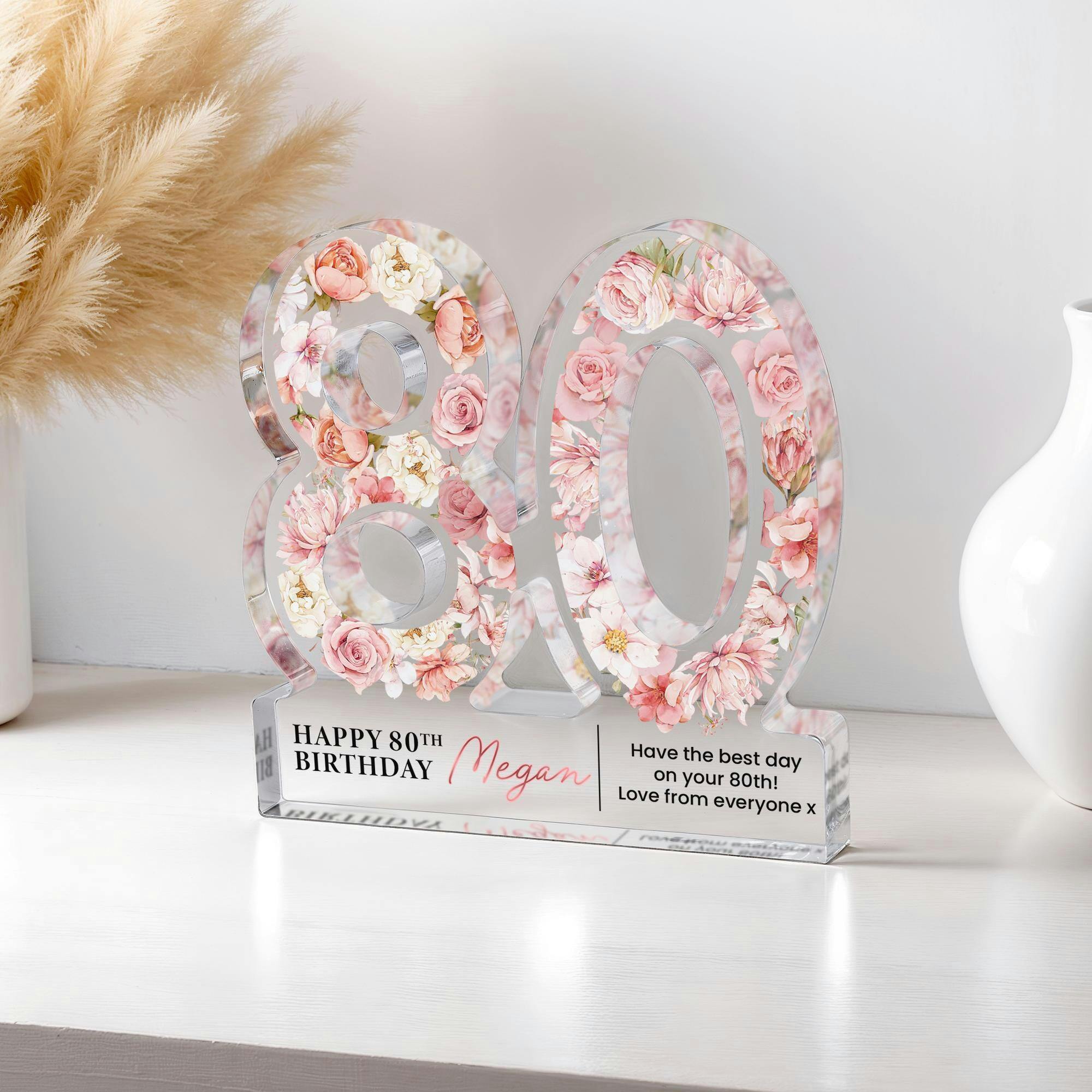 Personalised Pink Floral 80th Birthday Gift Plaque