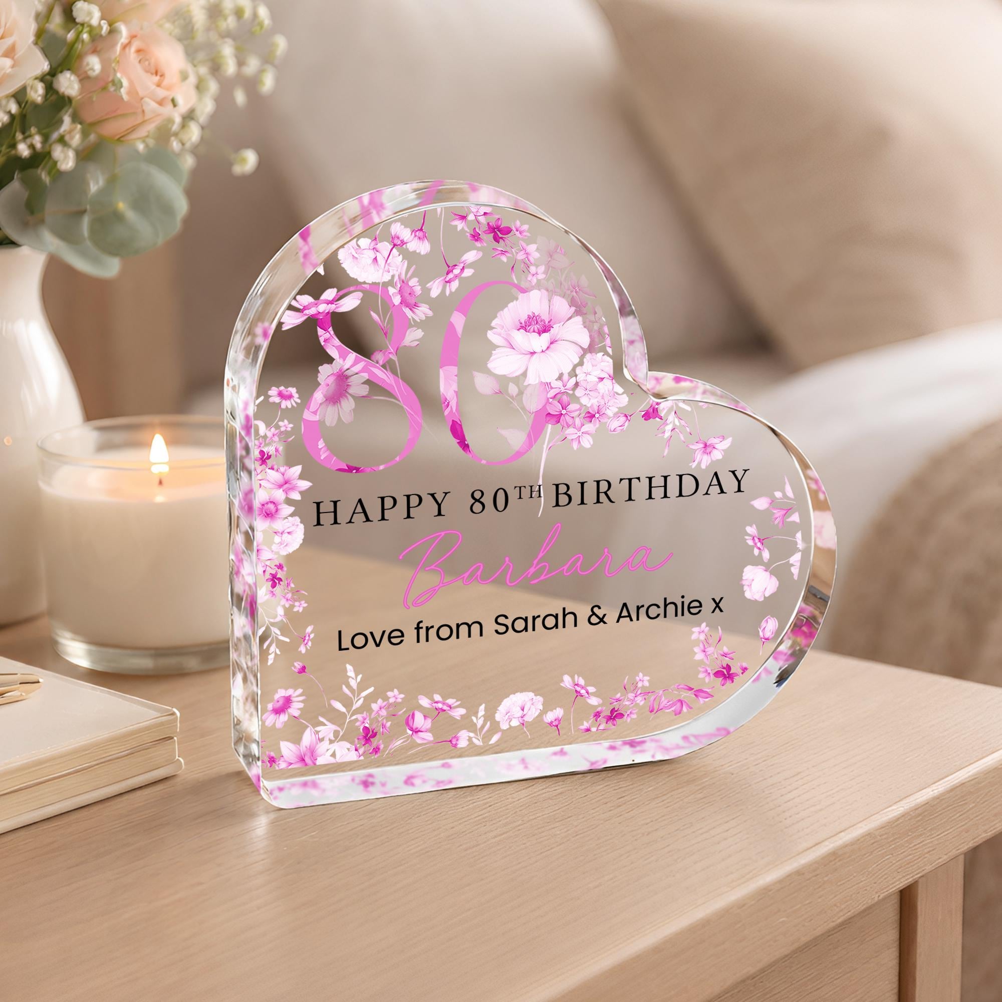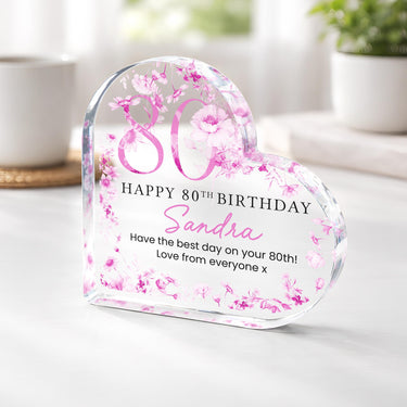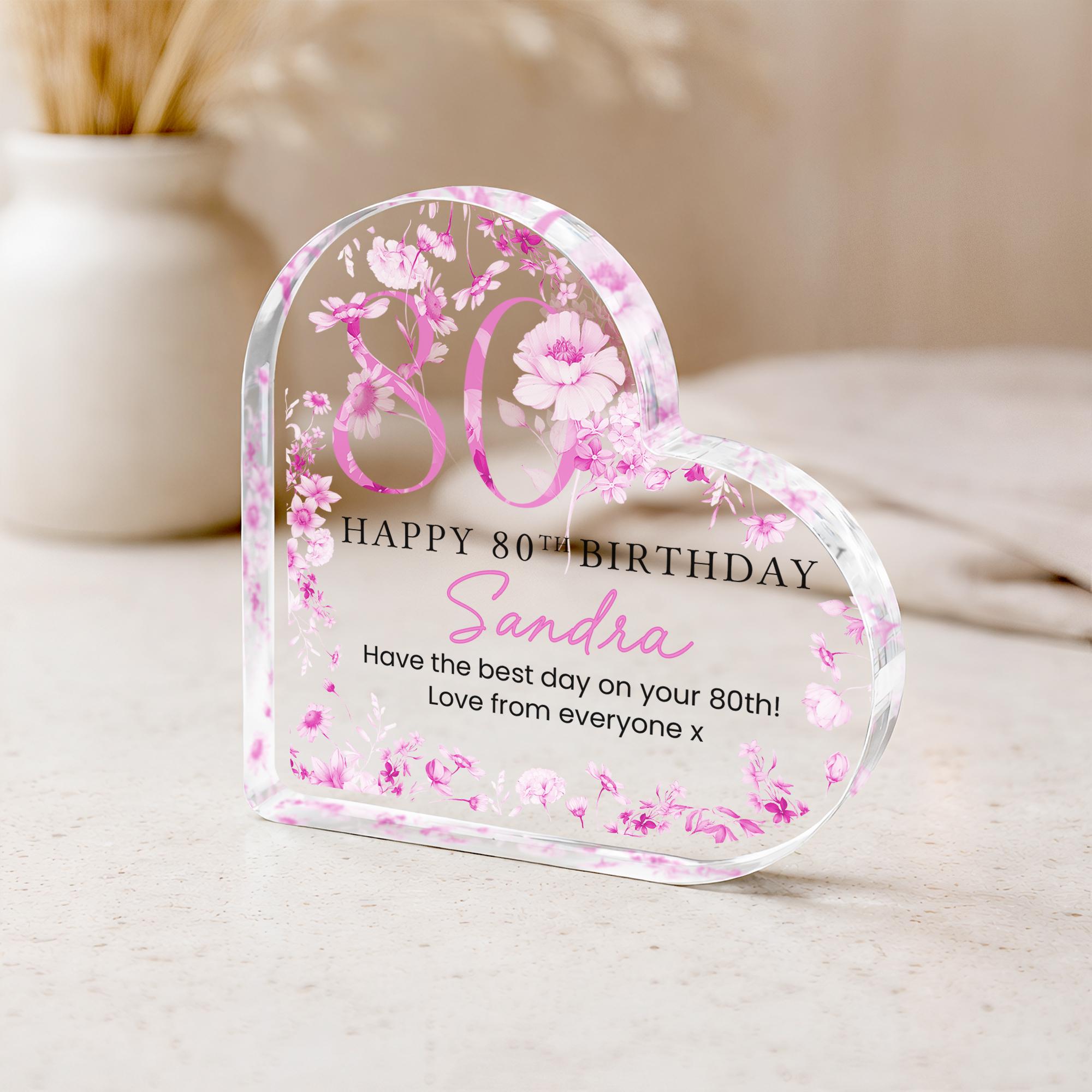 Personalised Acrylic Floral 80th Birthday Gift Plaque for Mum From Daughter/Son