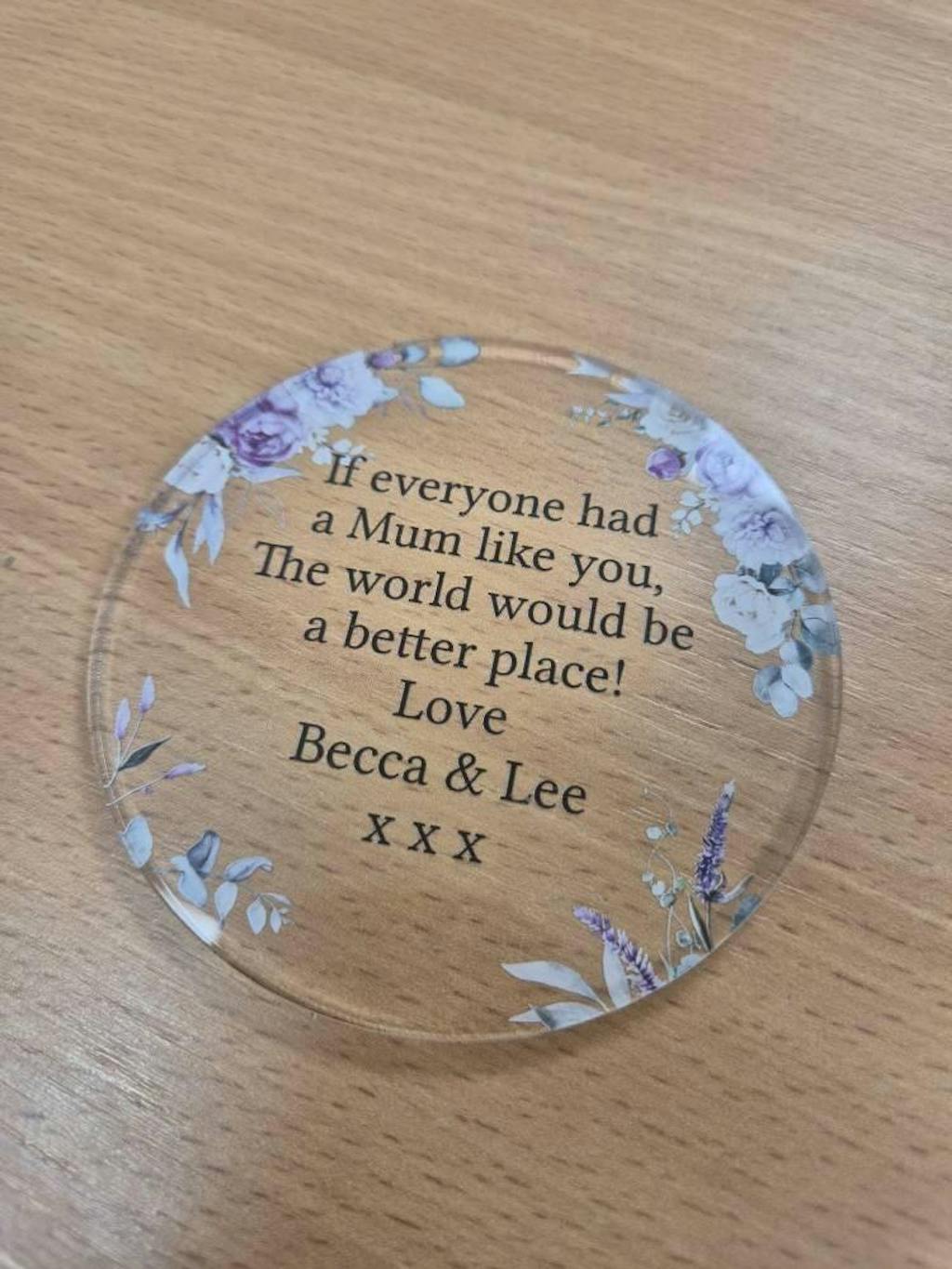 Beautiful clear acrylic printed cake topper personalised making that extra special gift.