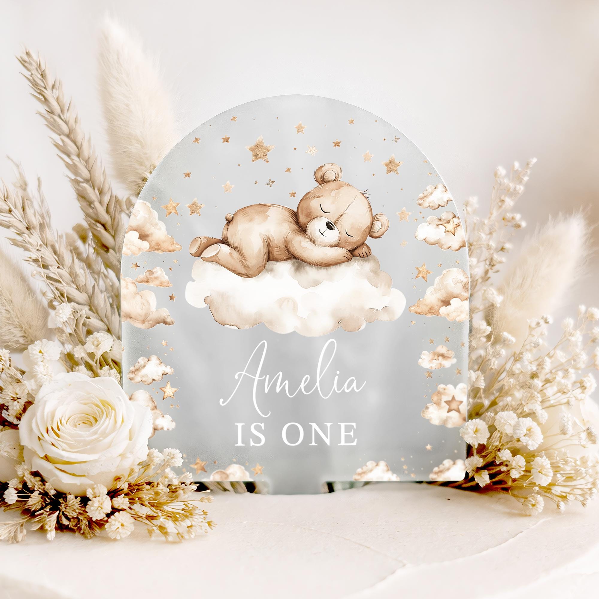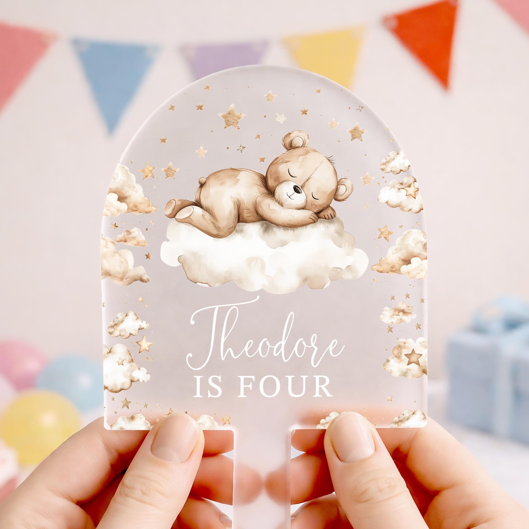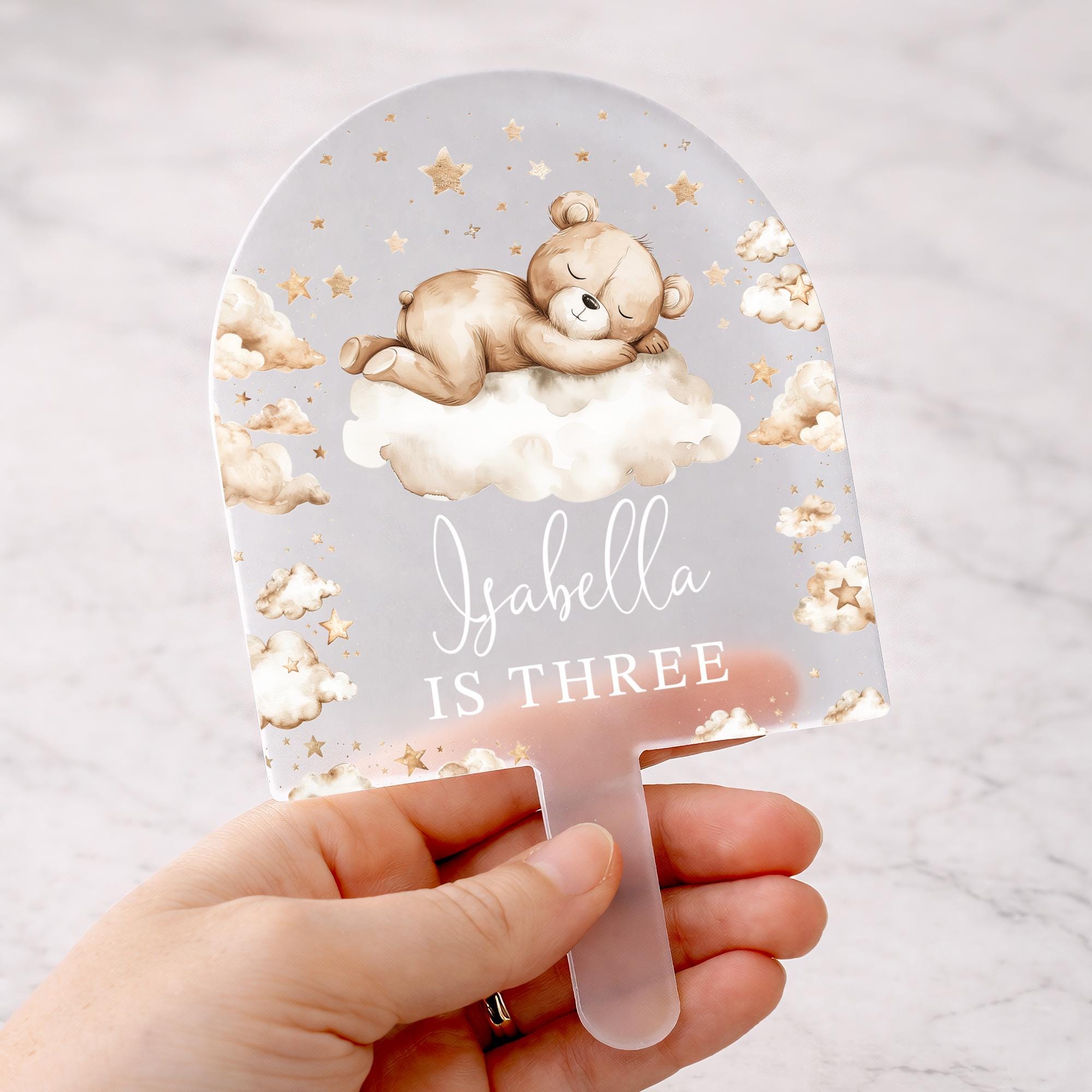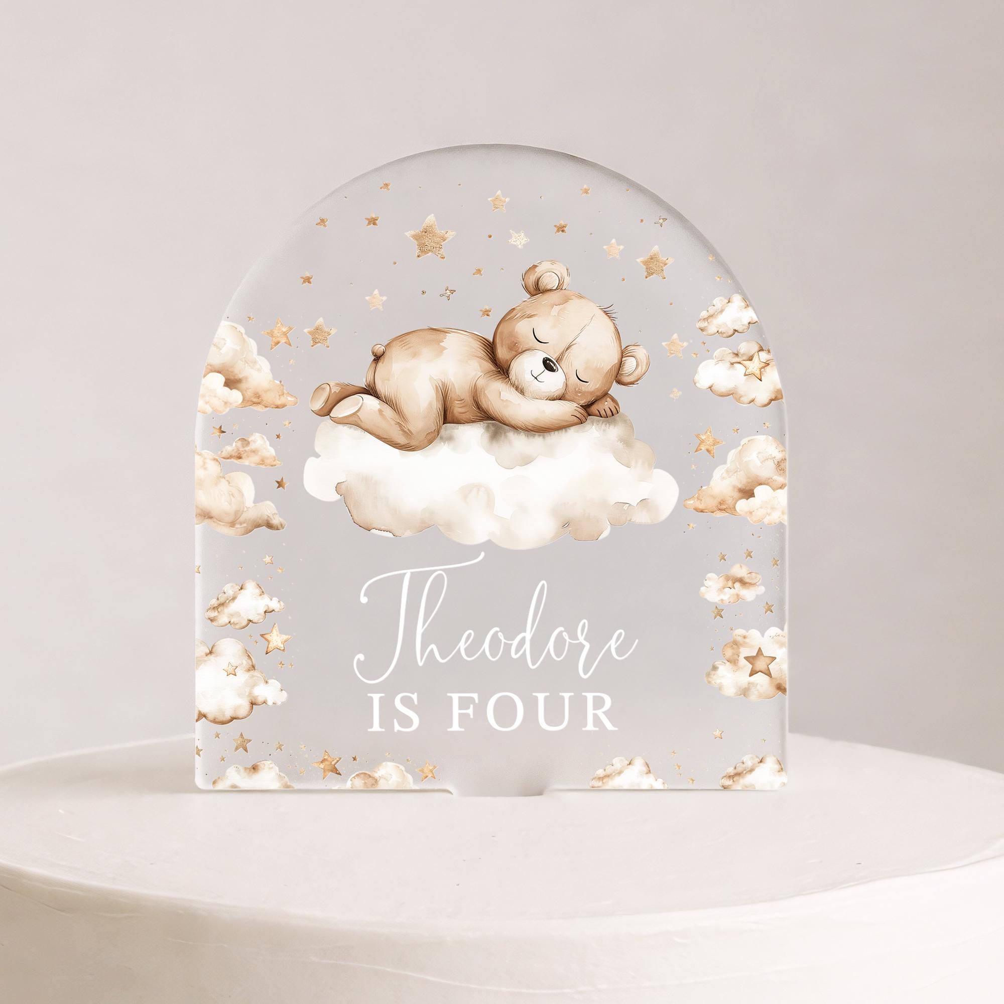 Personalised Baby Bear Birthday Cake Topper Beige Theme 1st 2nd 3rd 4th 5th