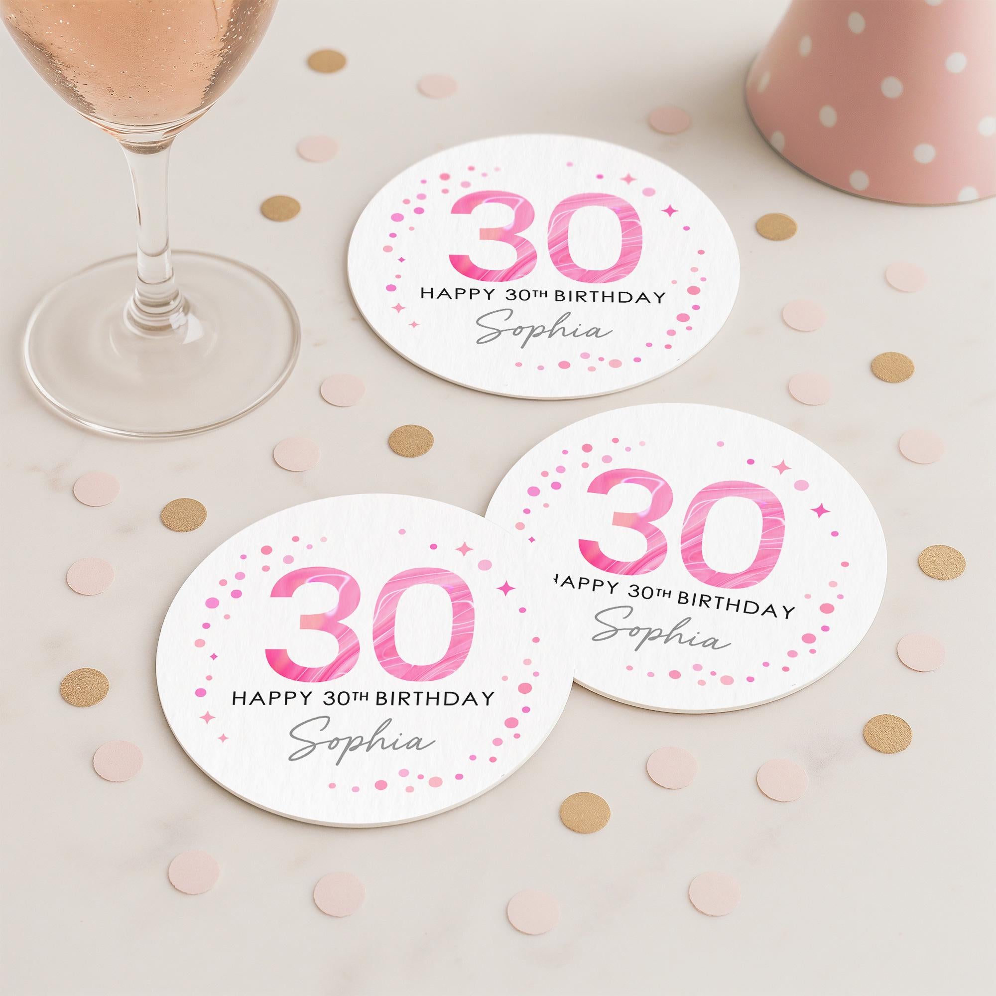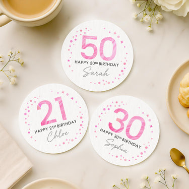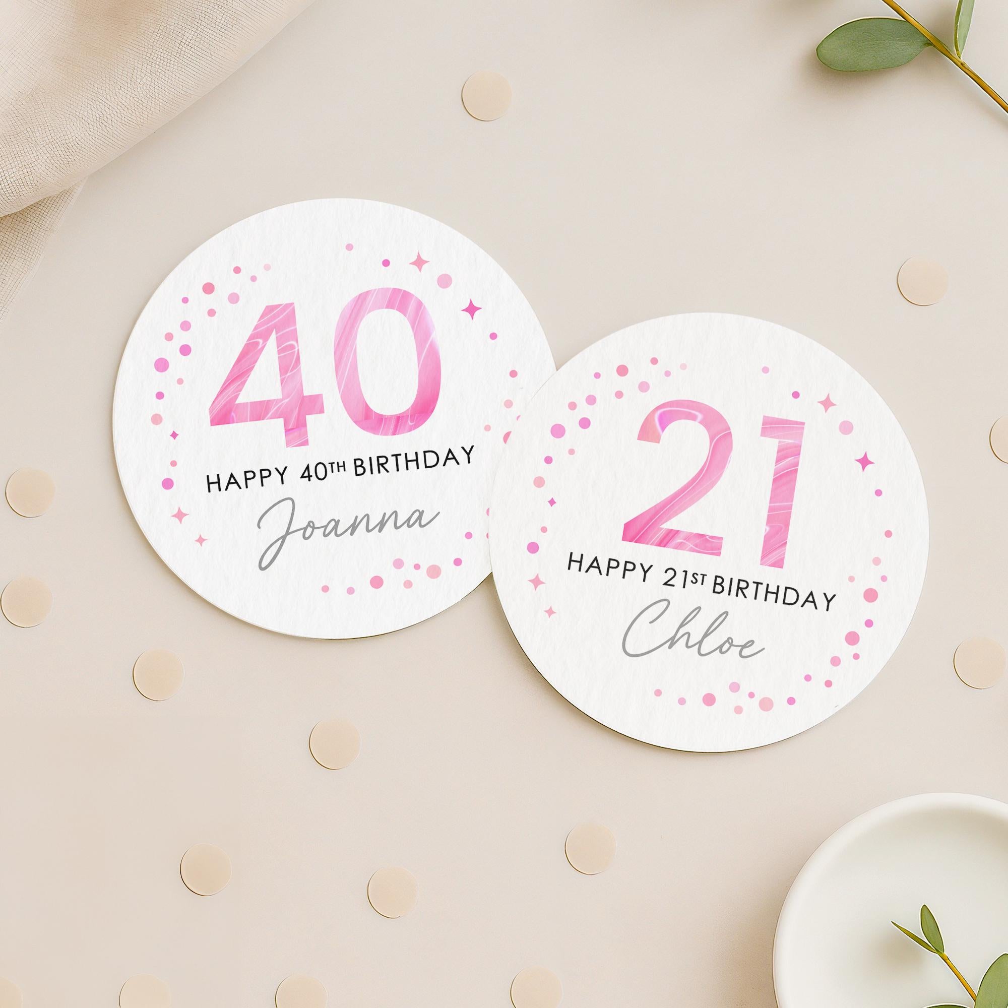 Personalised Birthday Party Coasters 18th 21st 30th 40th 50th Favors