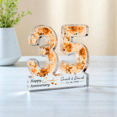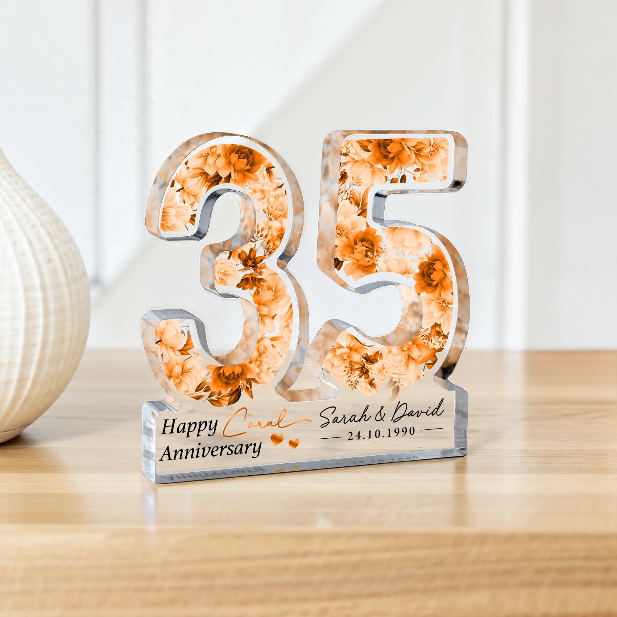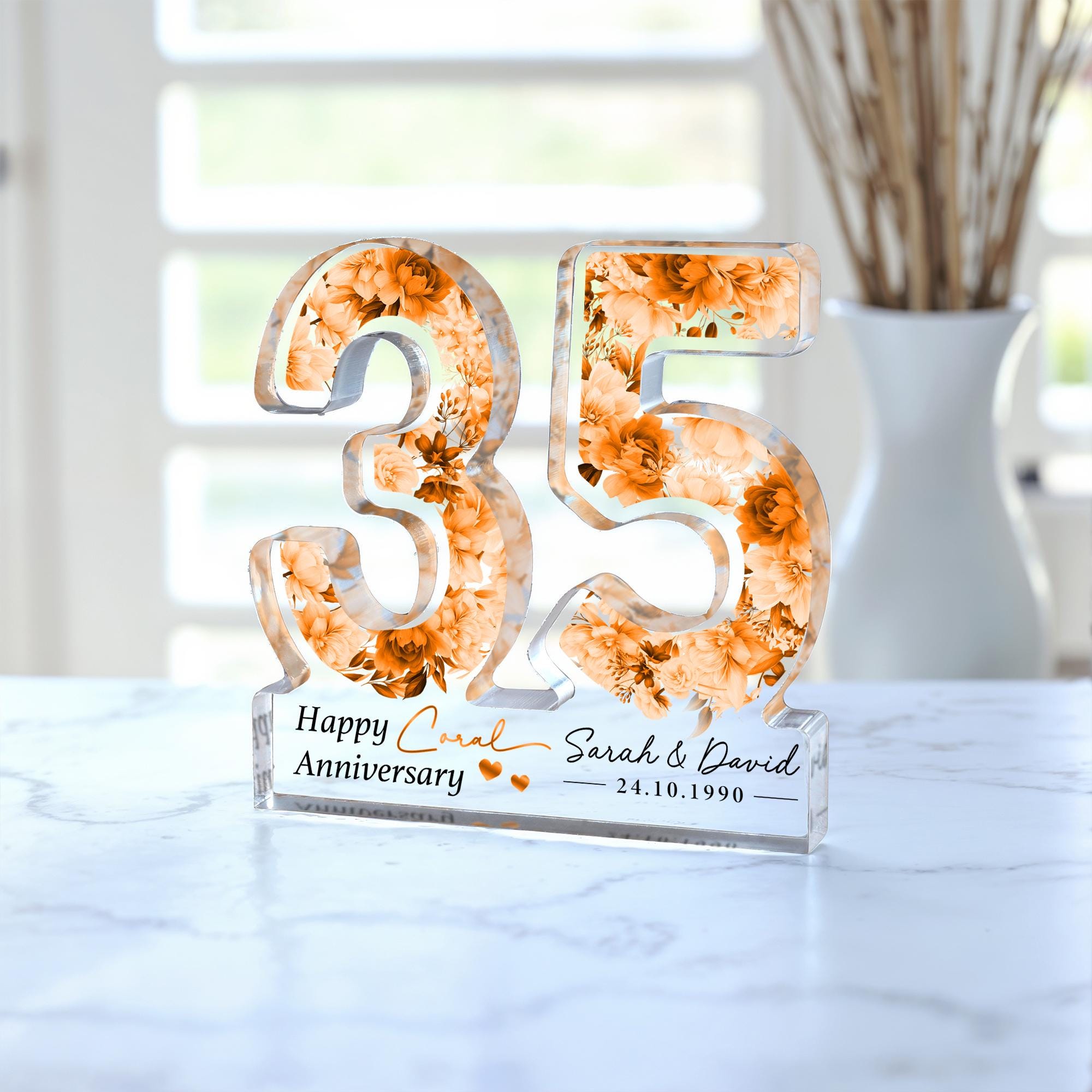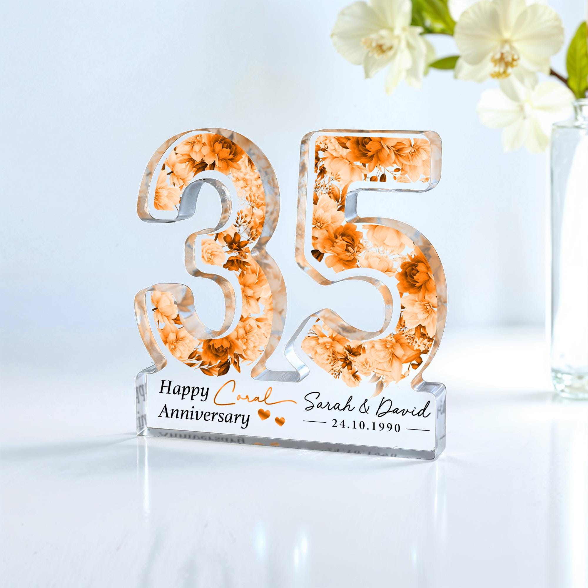 Personalised 35th Coral Anniversary Number Freestanding Block Gift Plaque