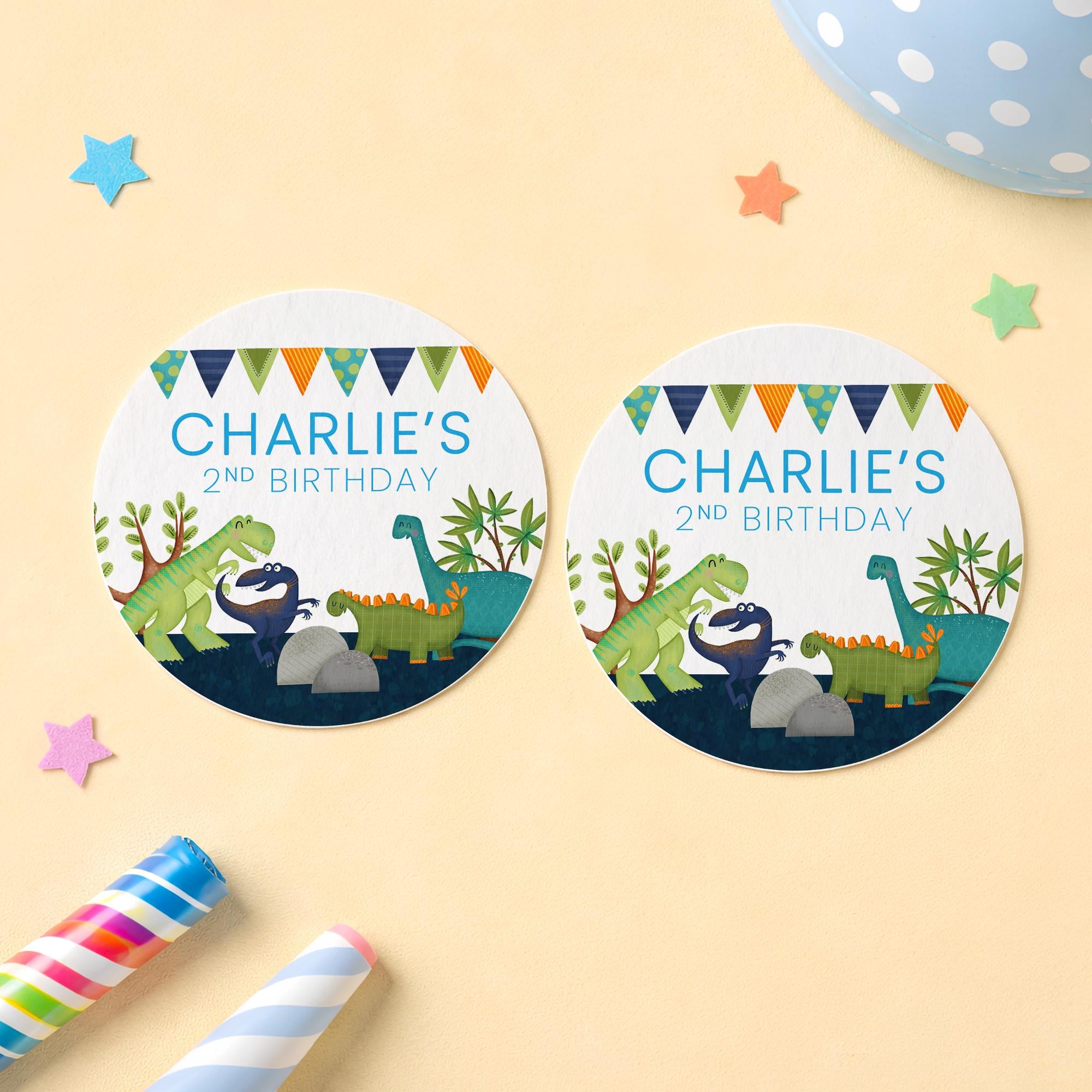 Personalised Dinosaur Themed Kids Party Coasters 1st 2nd 3rd 4th 5th Birthday