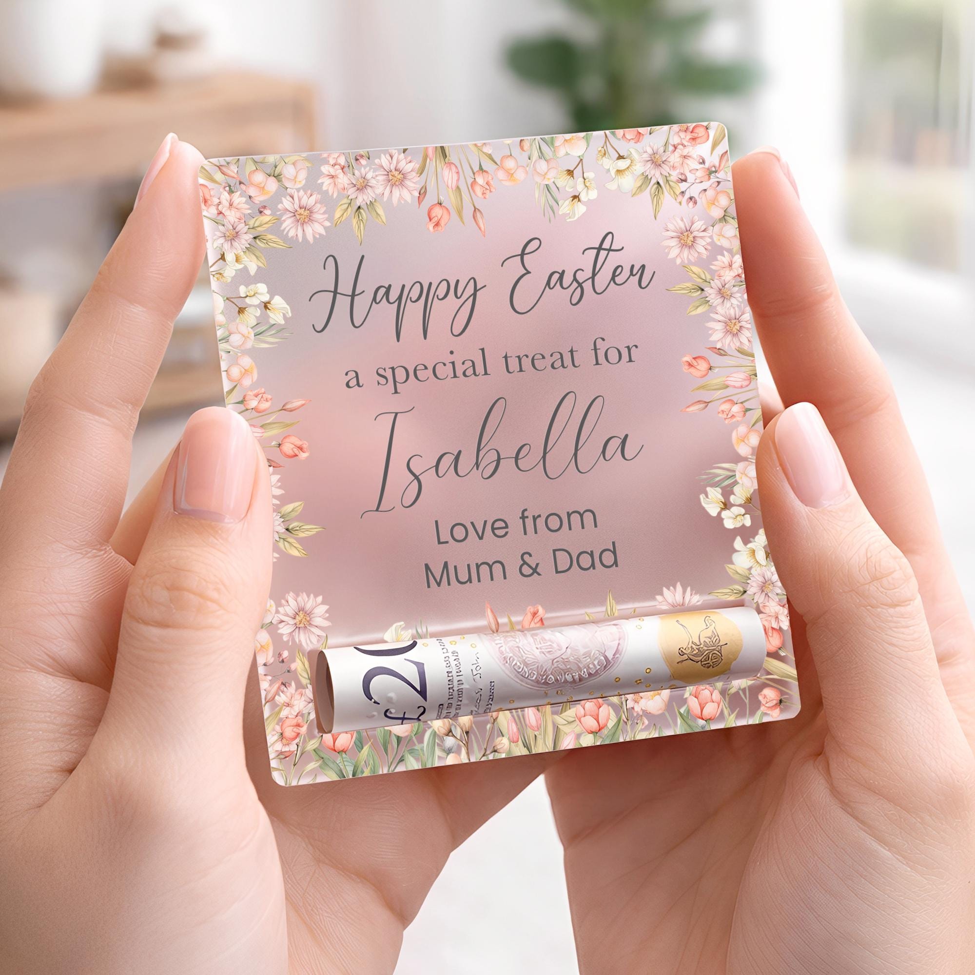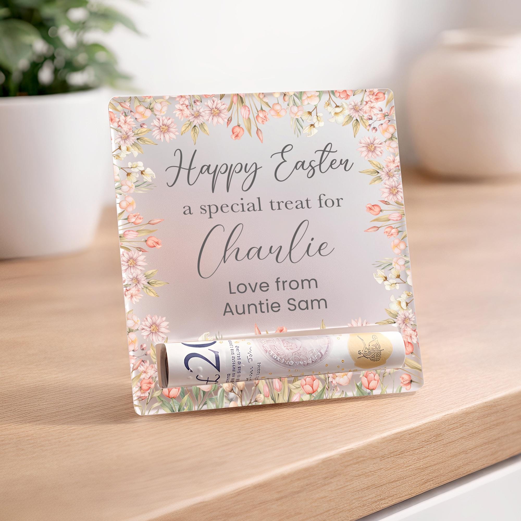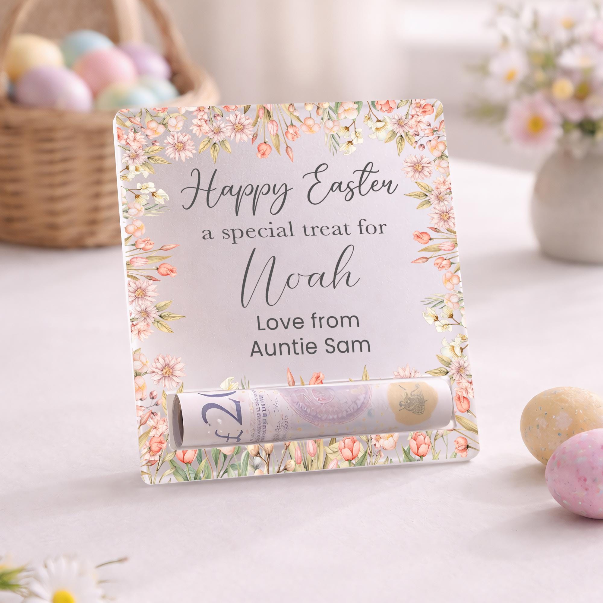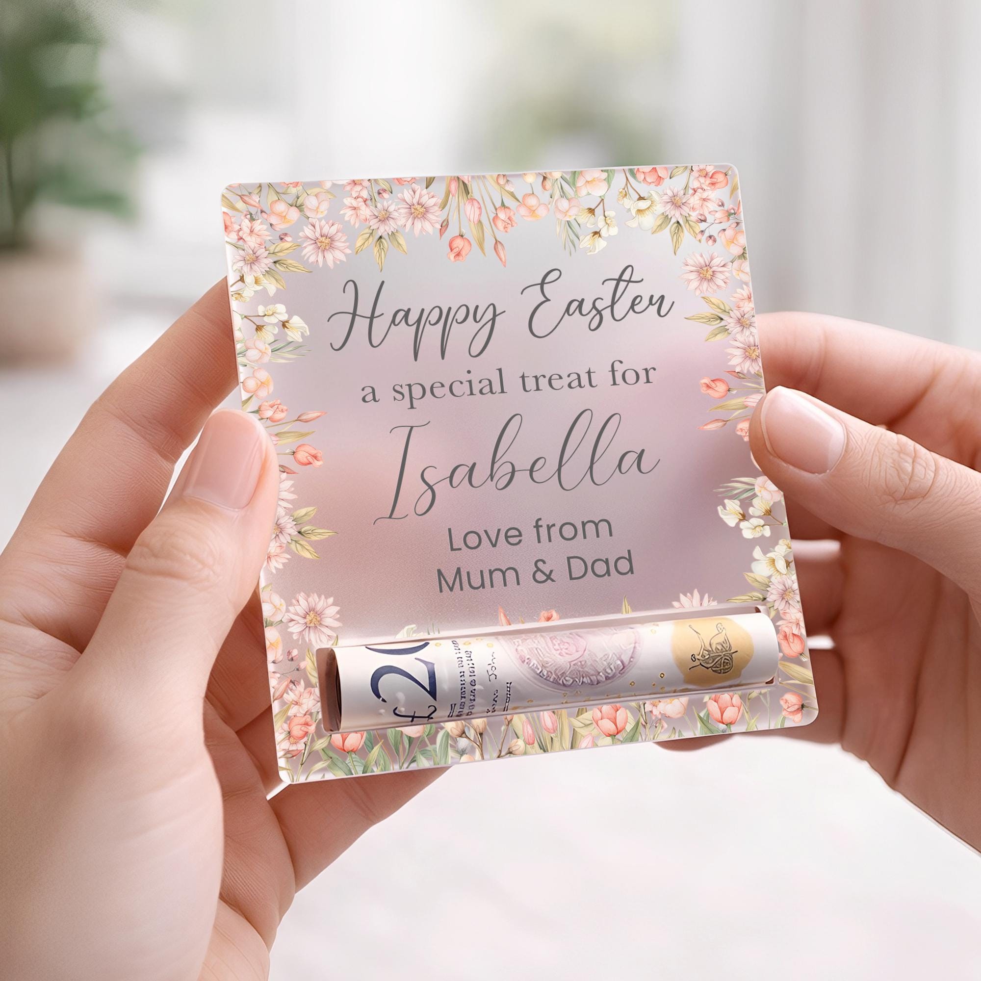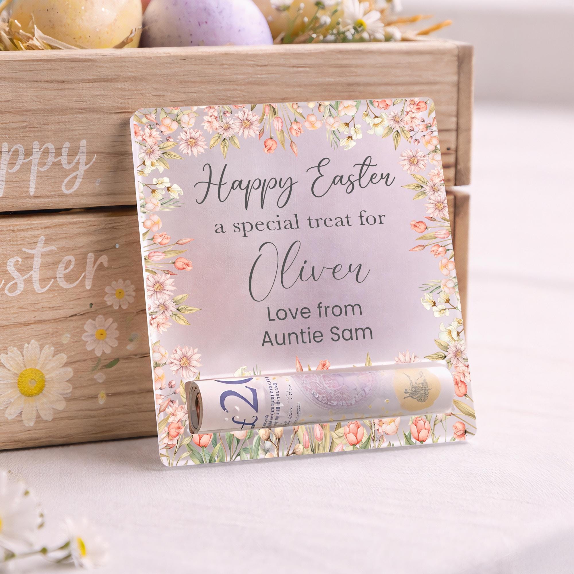 Personalised Easter Egg Reveal Money Cash Holder - Frosted Acrylic