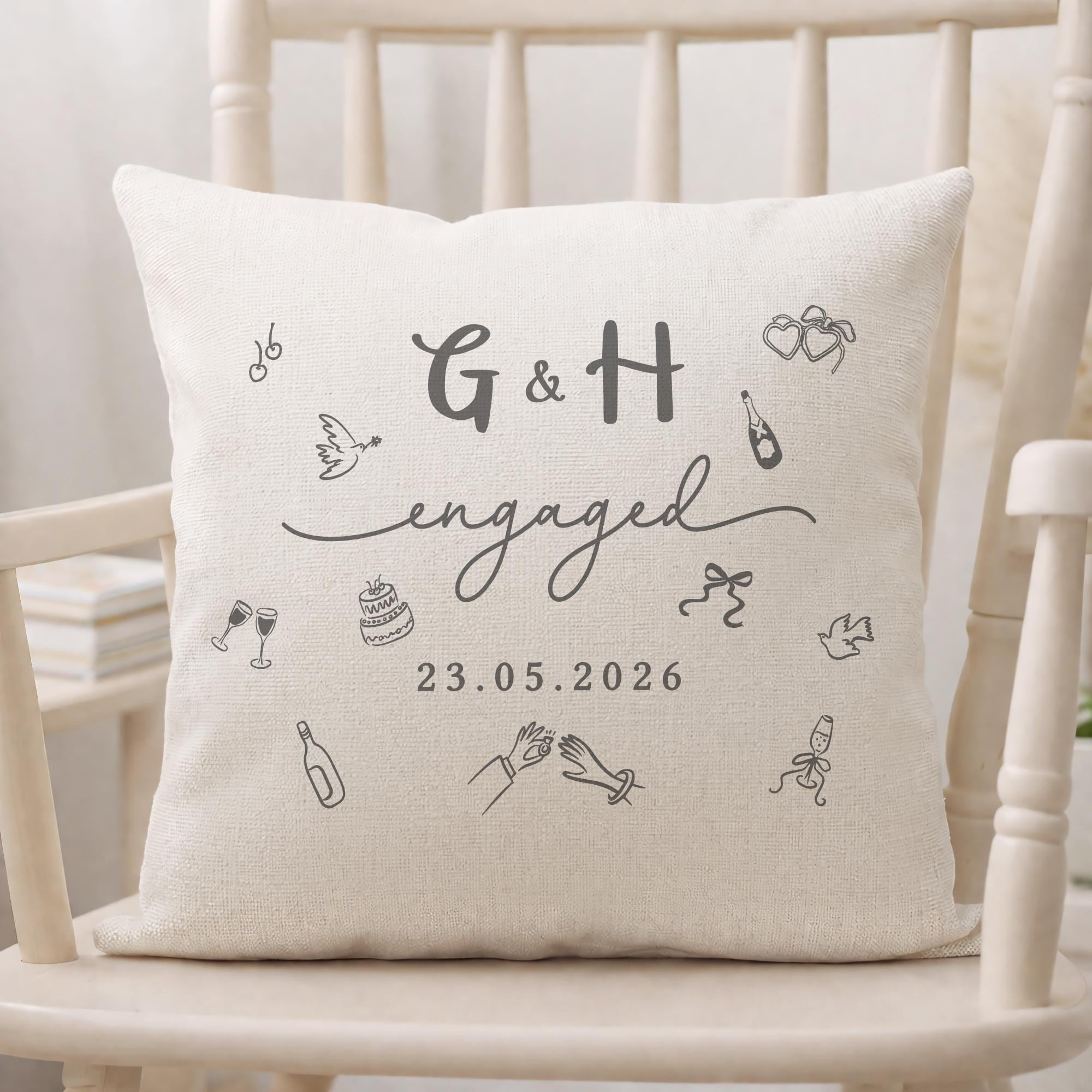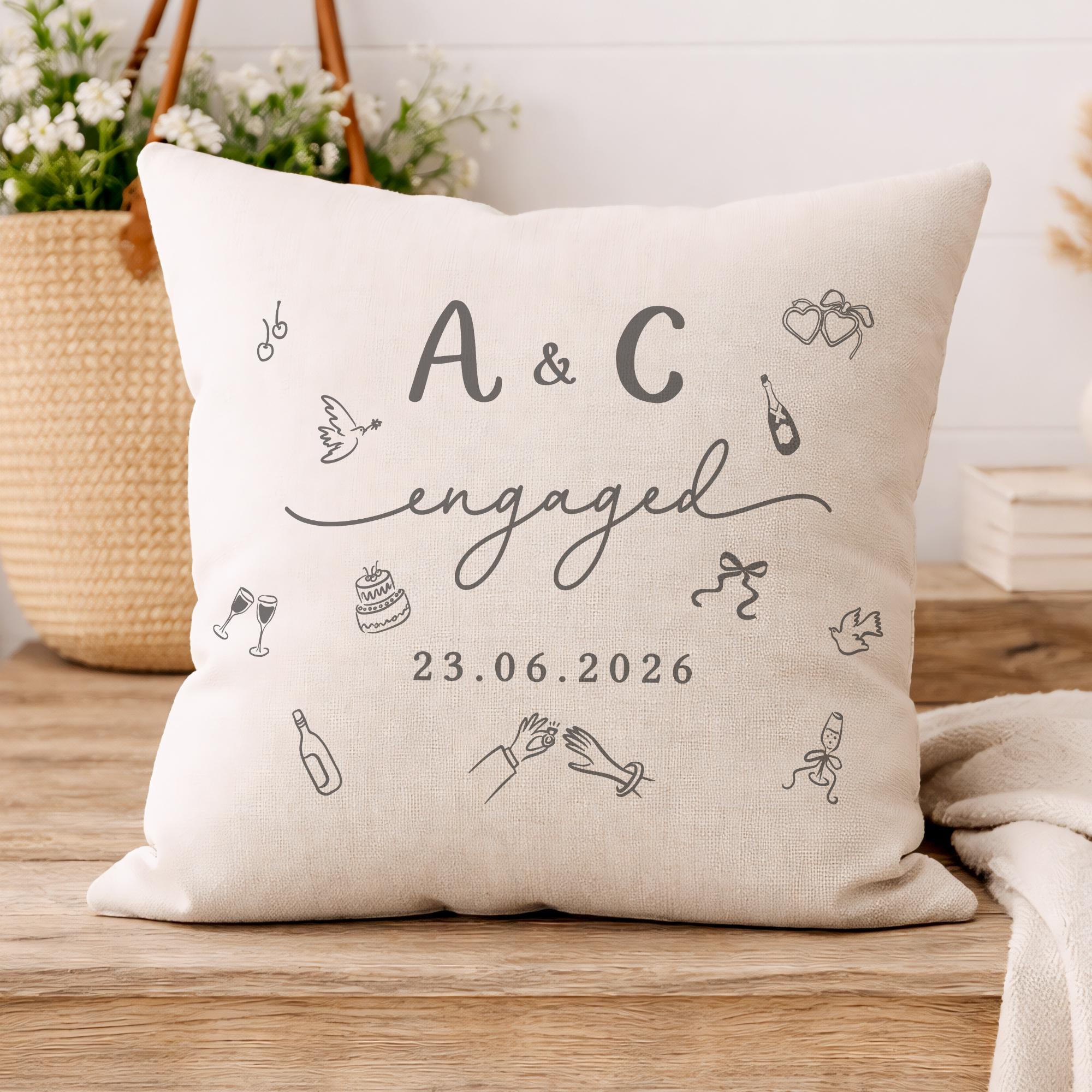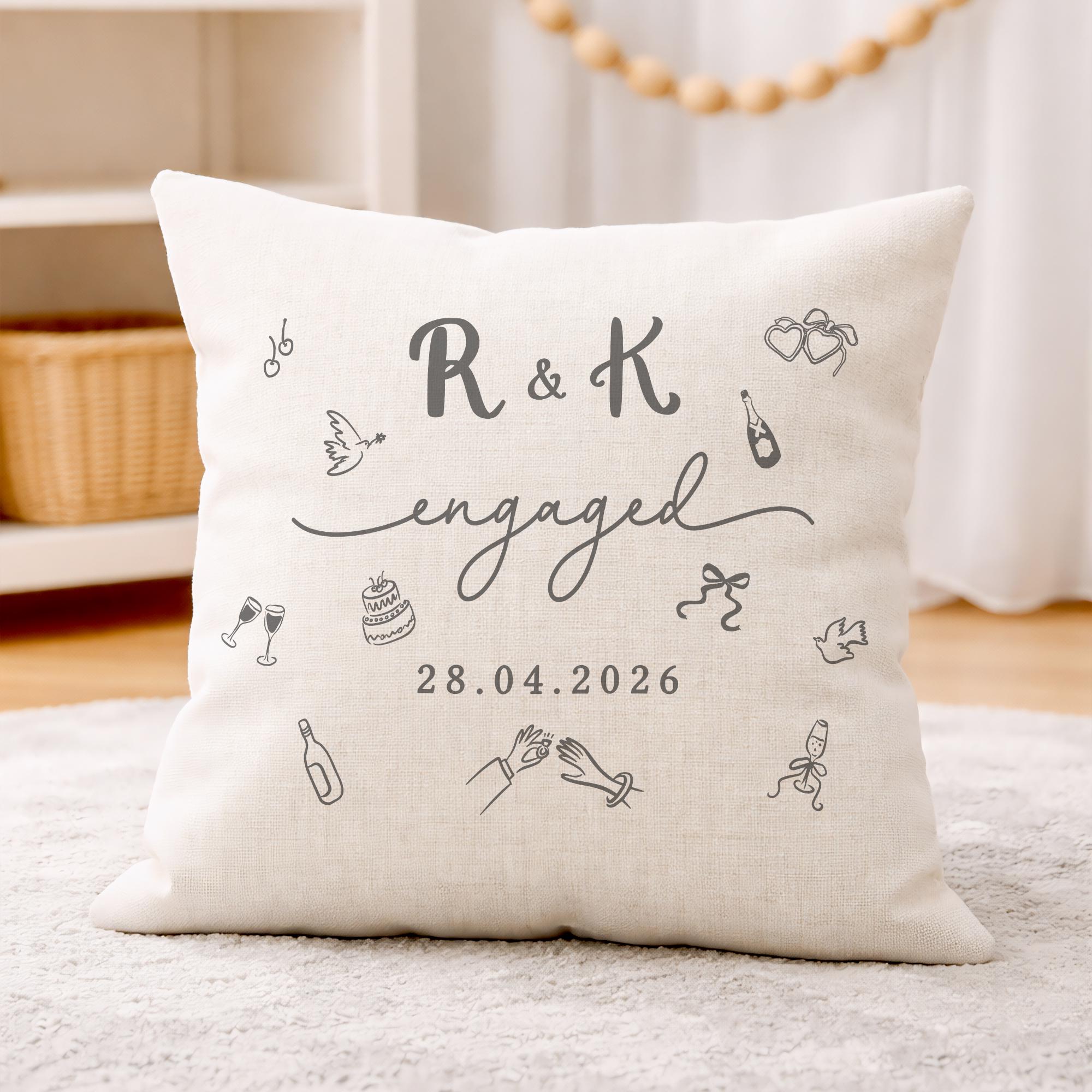 Personalised Congratulations on Engagement Initials & Date Cushion Pillow