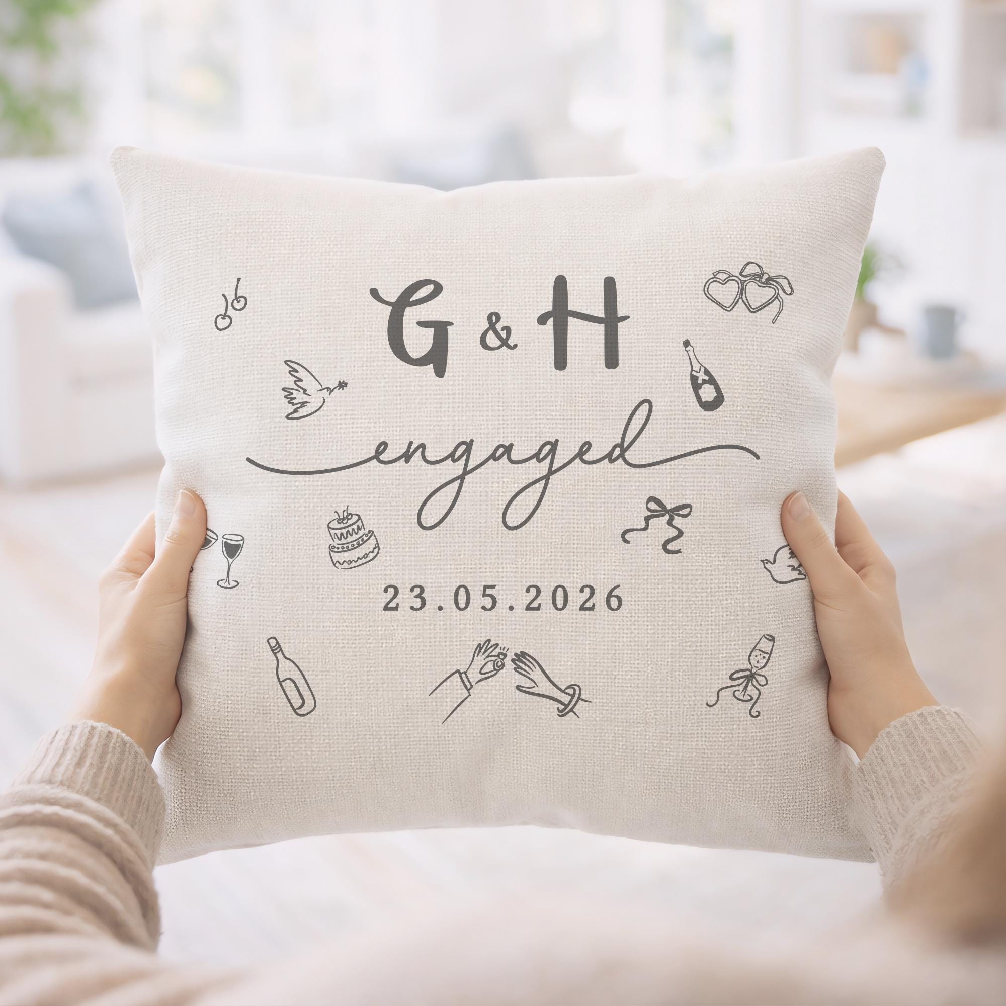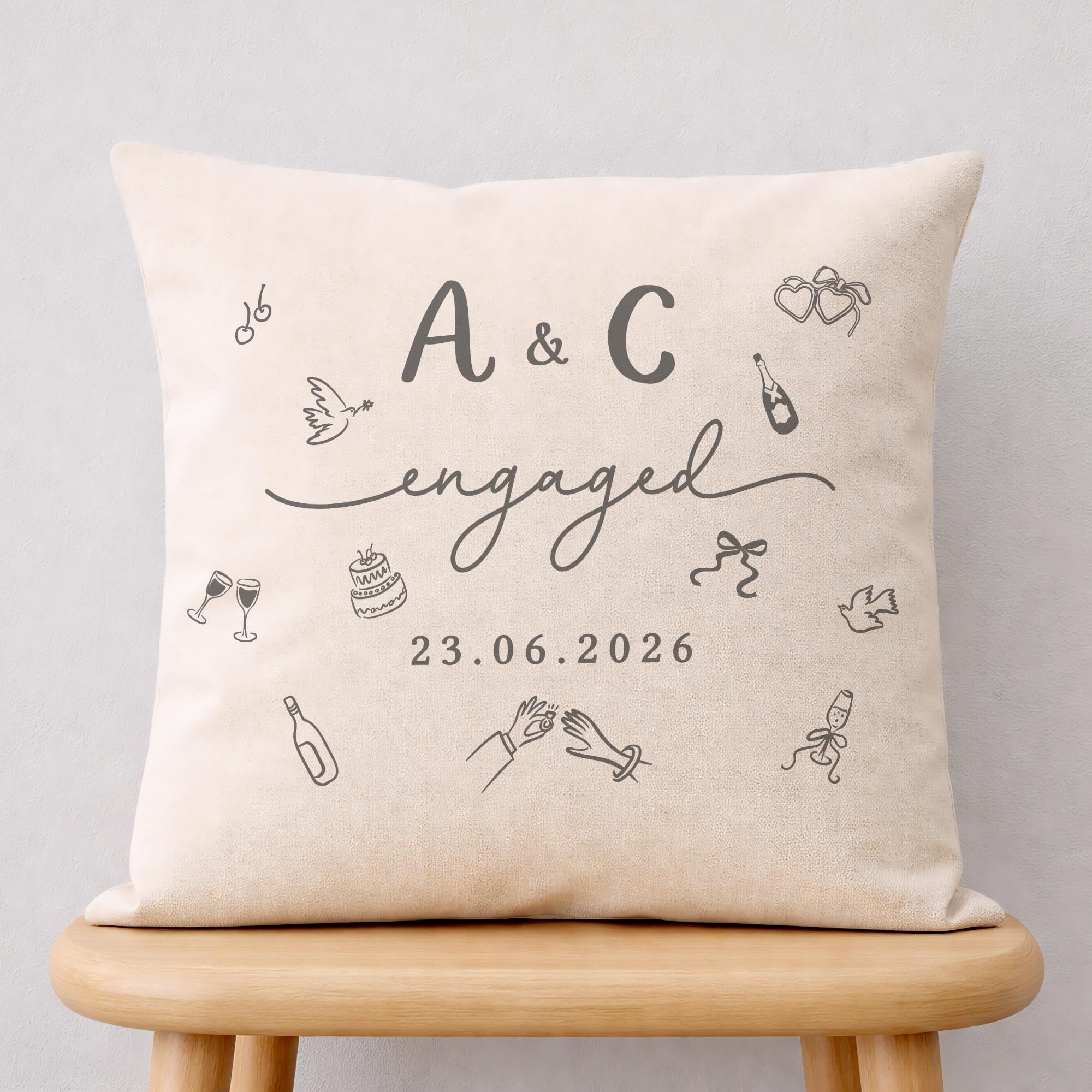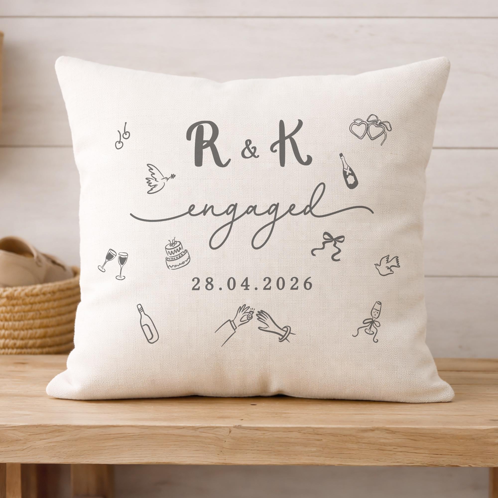 Personalised Congratulations on Engagement Initials & Date Cushion Pillow
