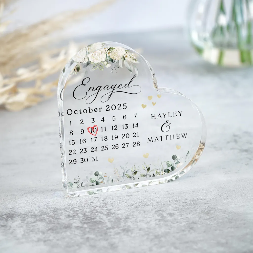 Personalised Engagement Calender Heart Gift Plaqye