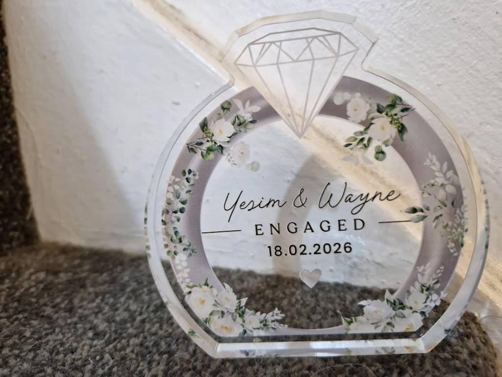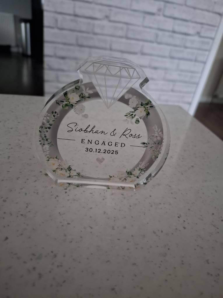 Personalised Engagement Ring Keepsake Clear Acrylic Block