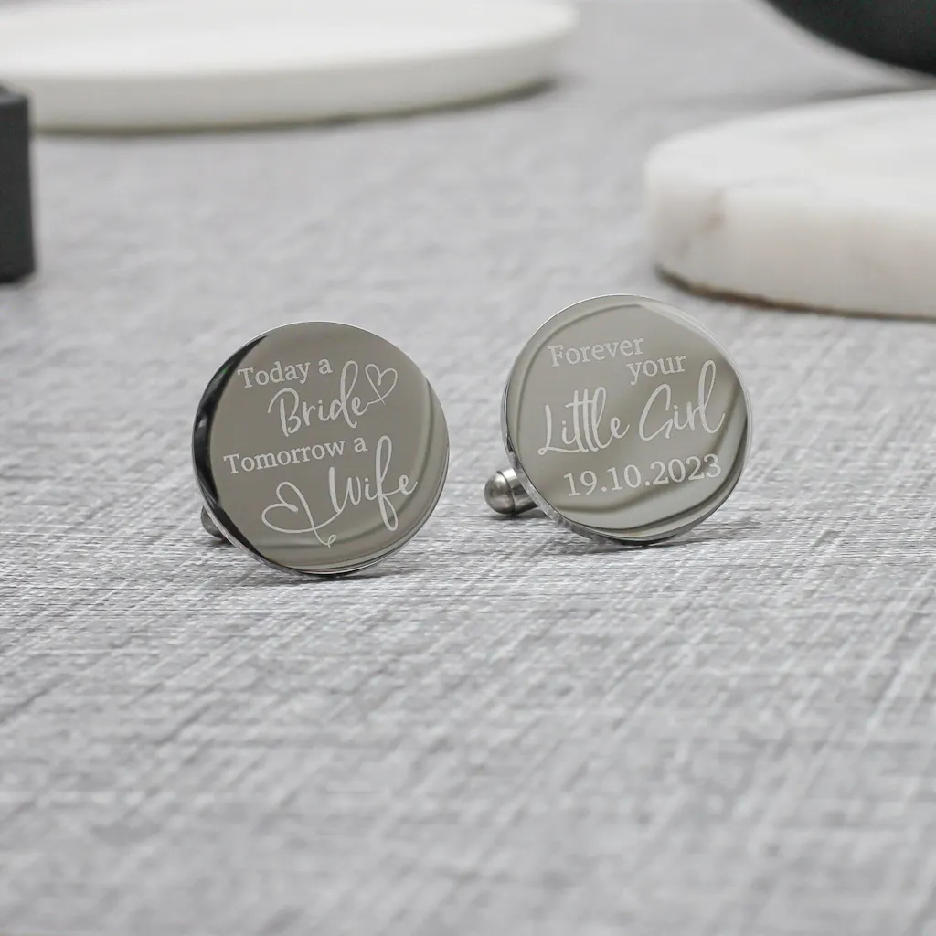 Personalised Engraved Today a Bride Tomorrow a Wife Father of the Bride Cufflinks