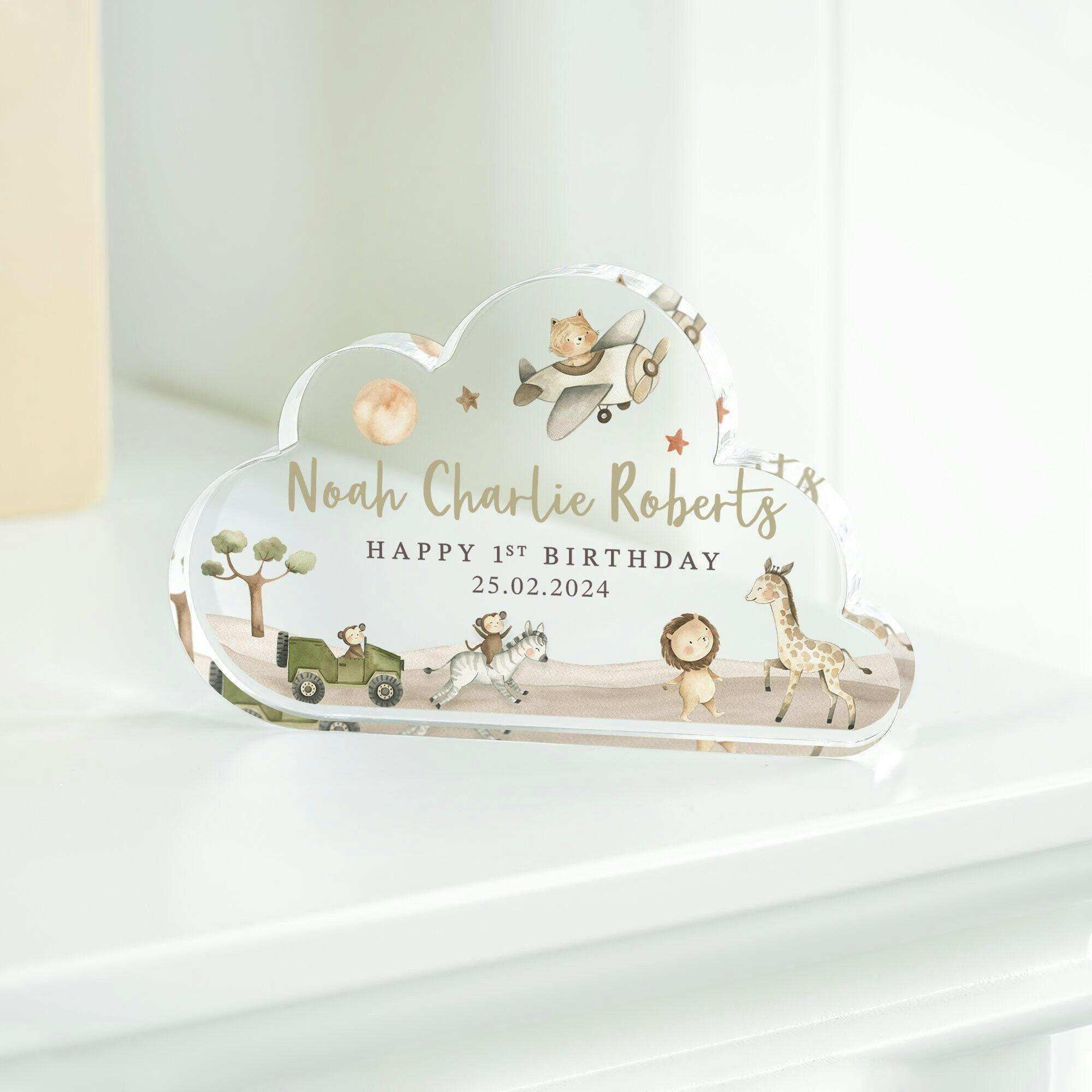 Personalised Cloud Blocks First Birthday Gift Plaque