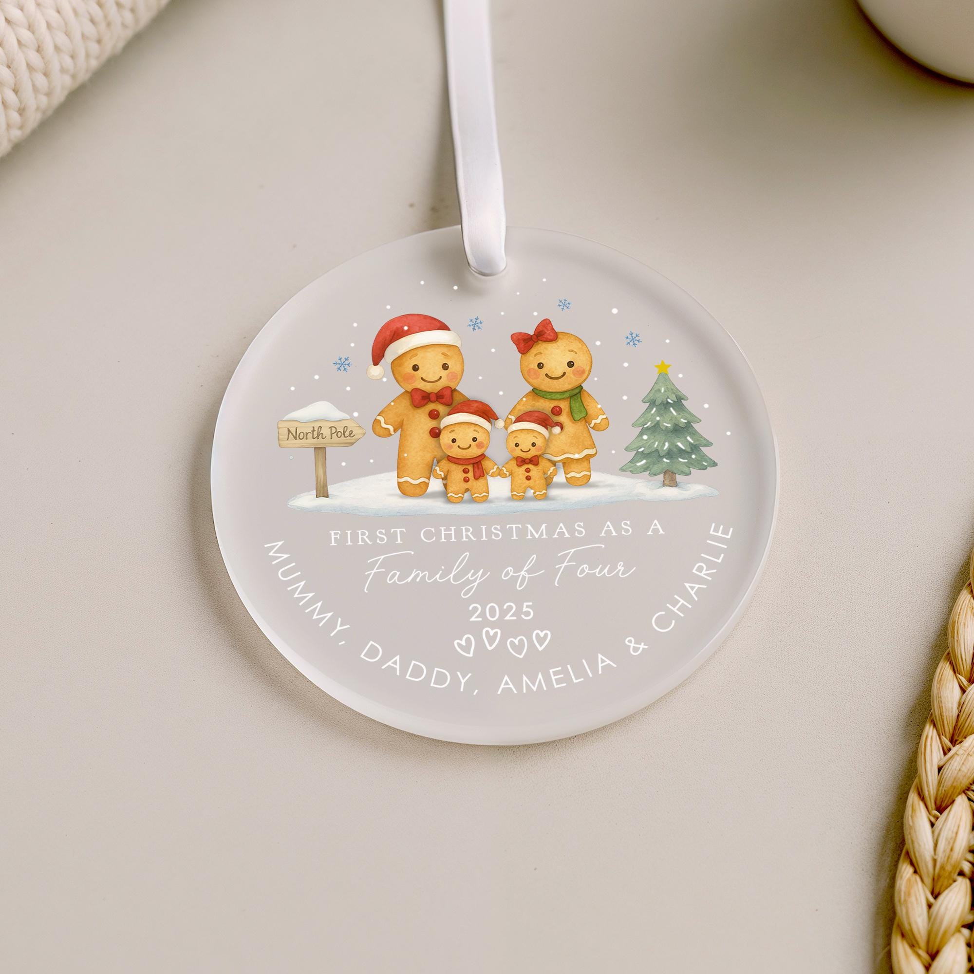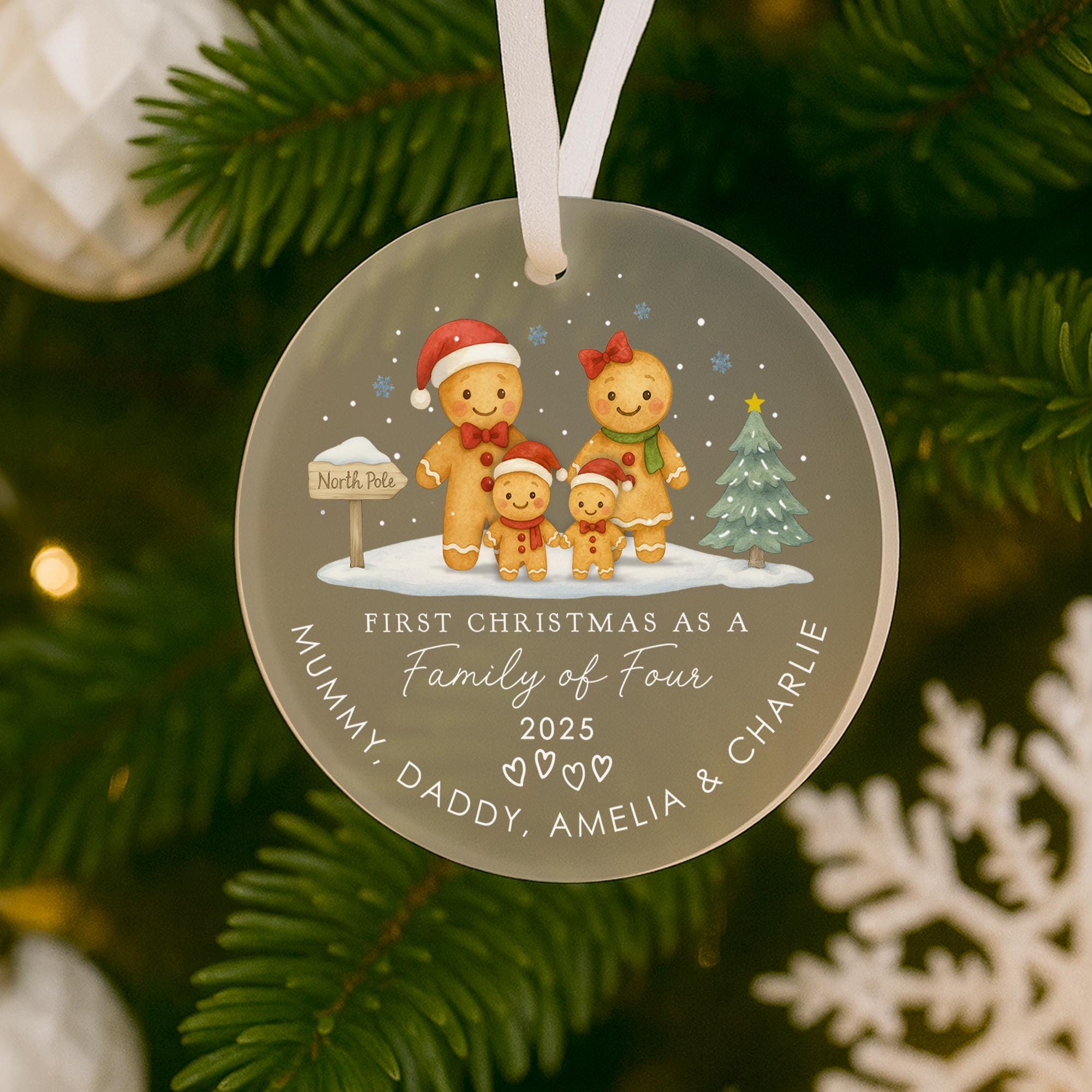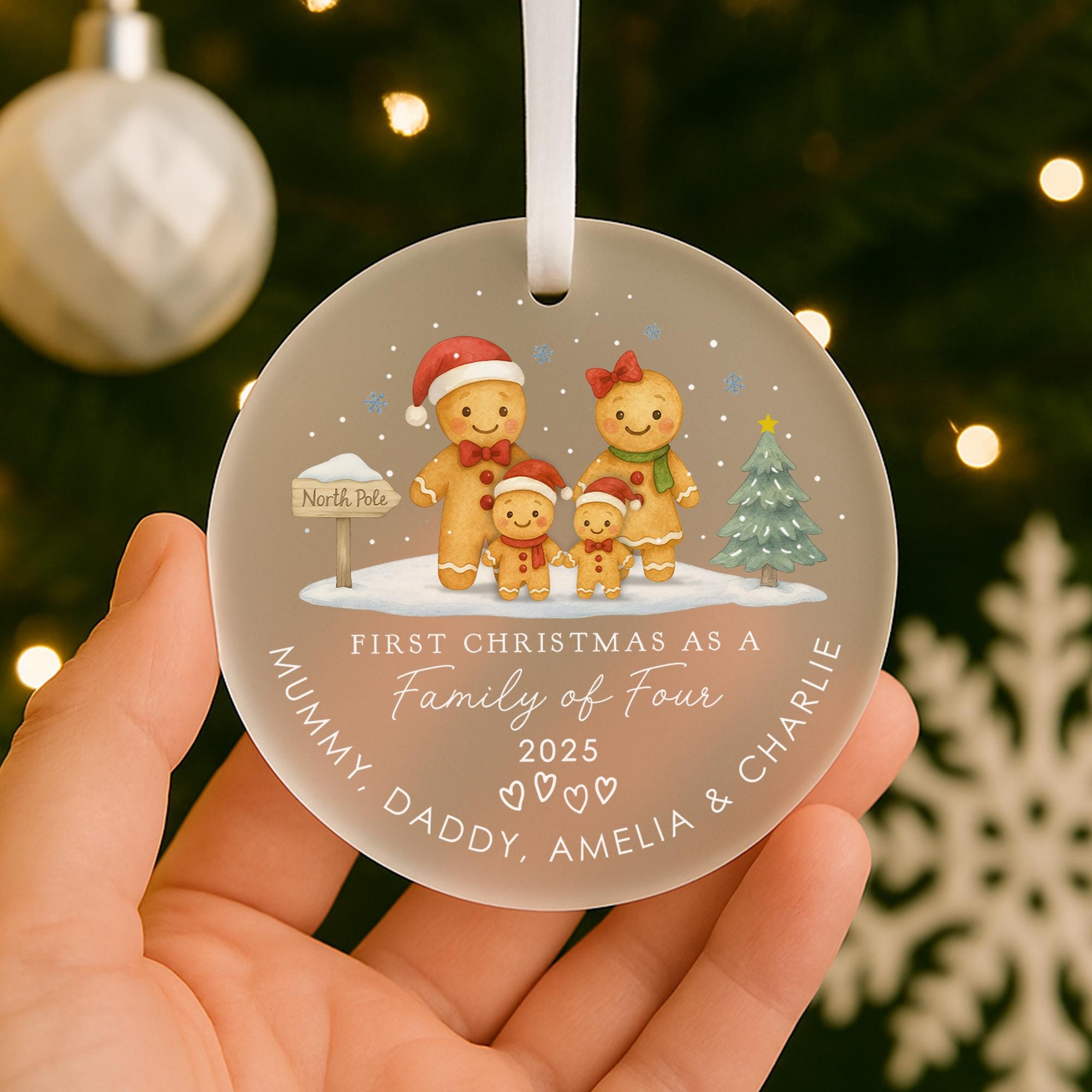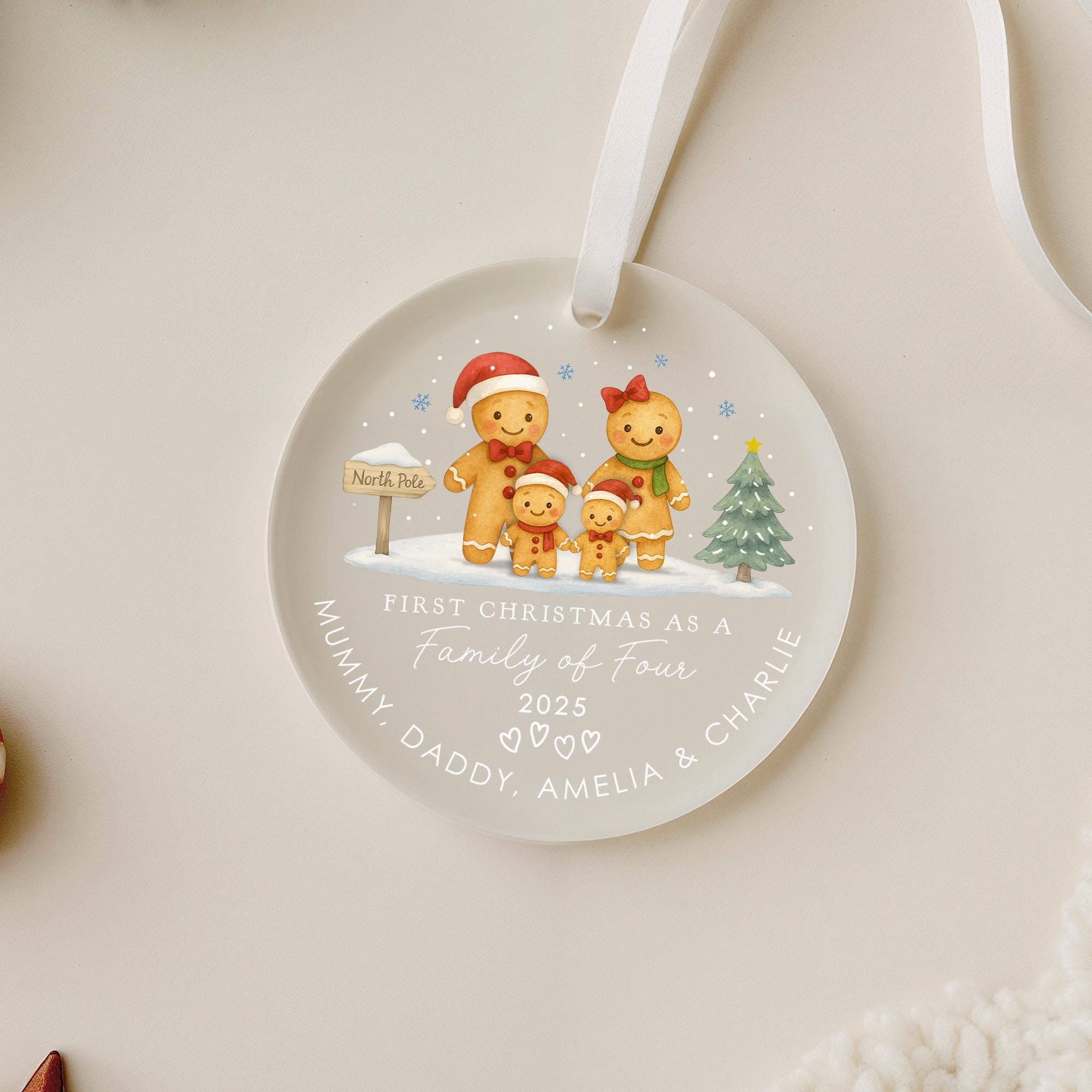 Personalised Ginger Bread Men First Christmas as Family of 4 Bauble