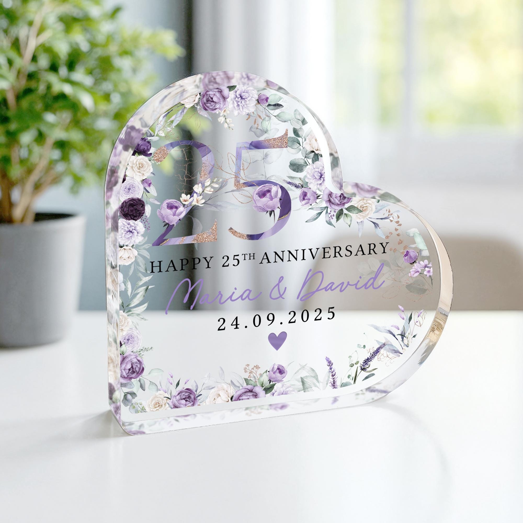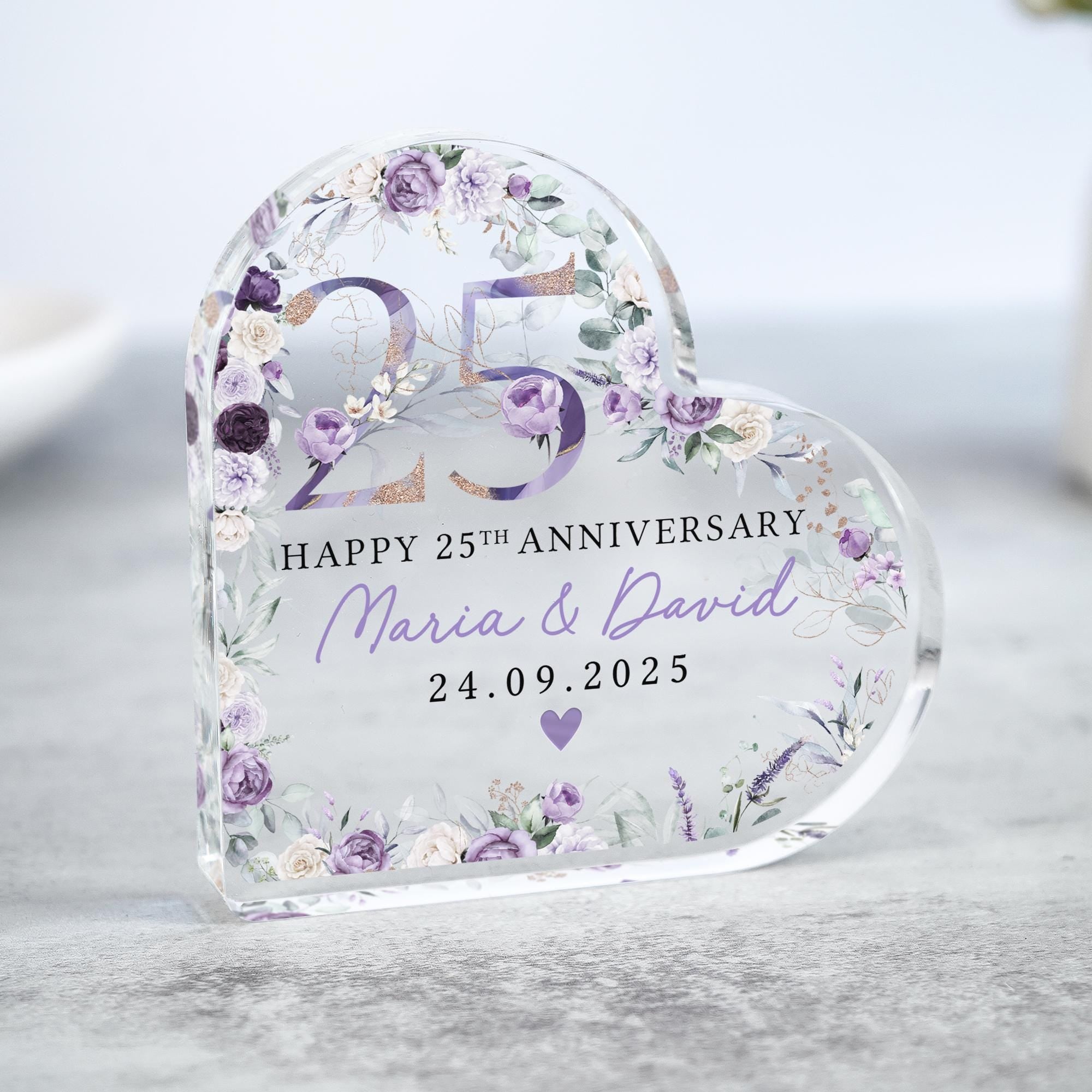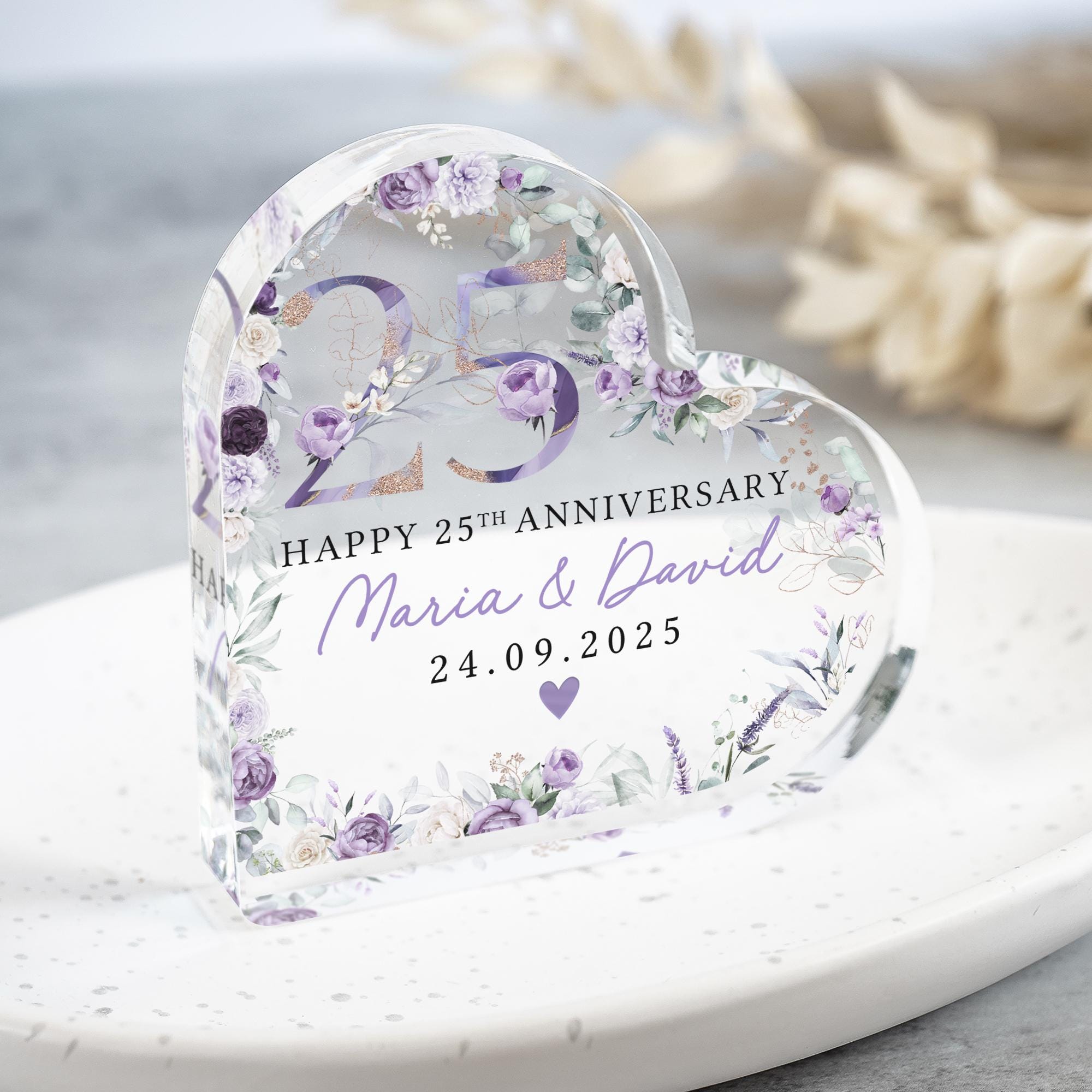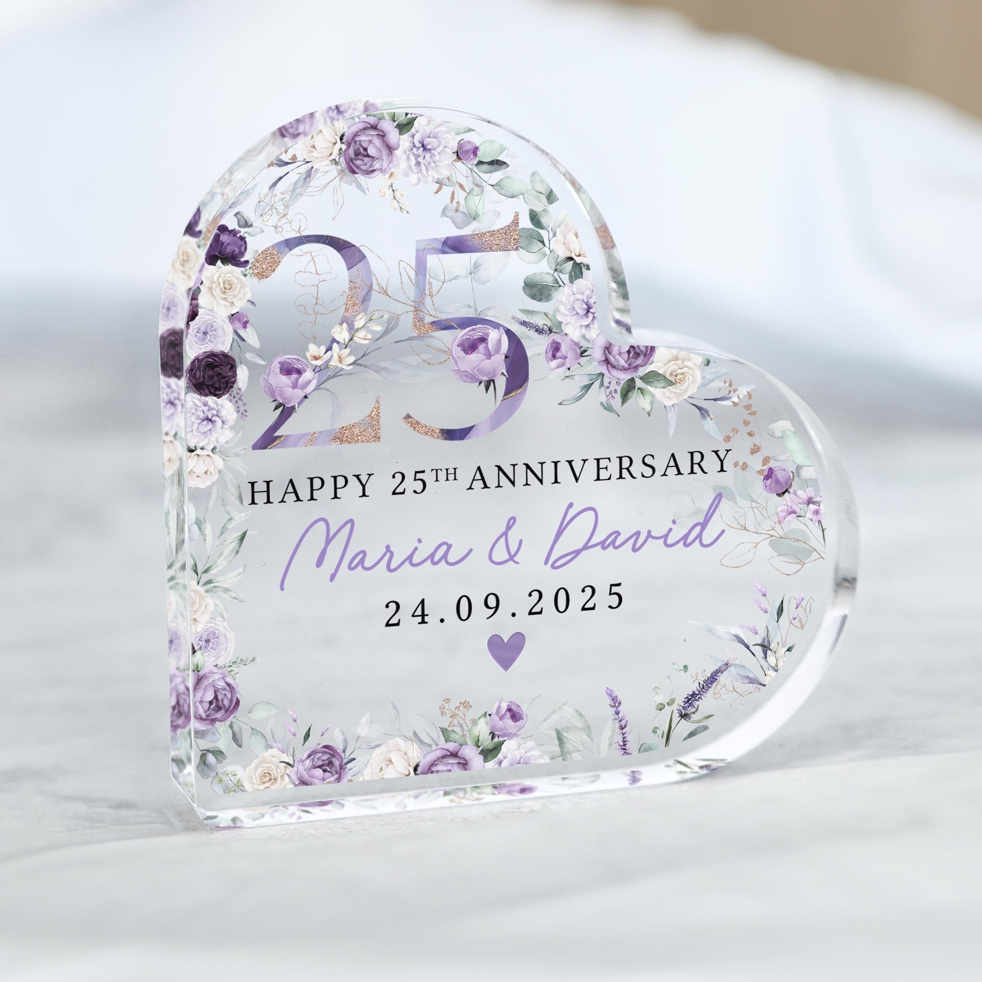 Personalised Floral Purple Flower 25th Anniversary Gift Plaque