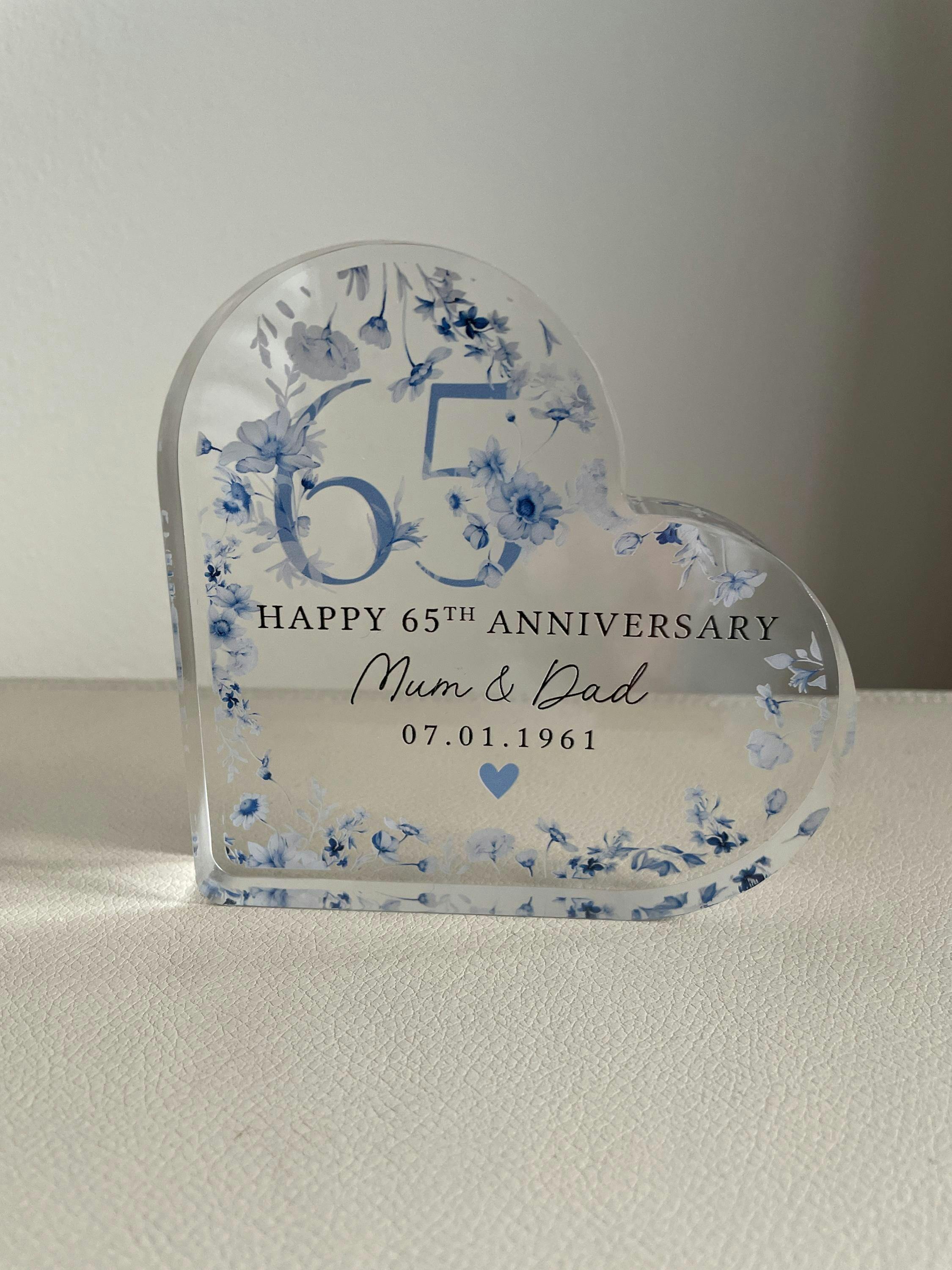 Beautiful acrylic crystal heart block personalised for that special anniversary milestone.