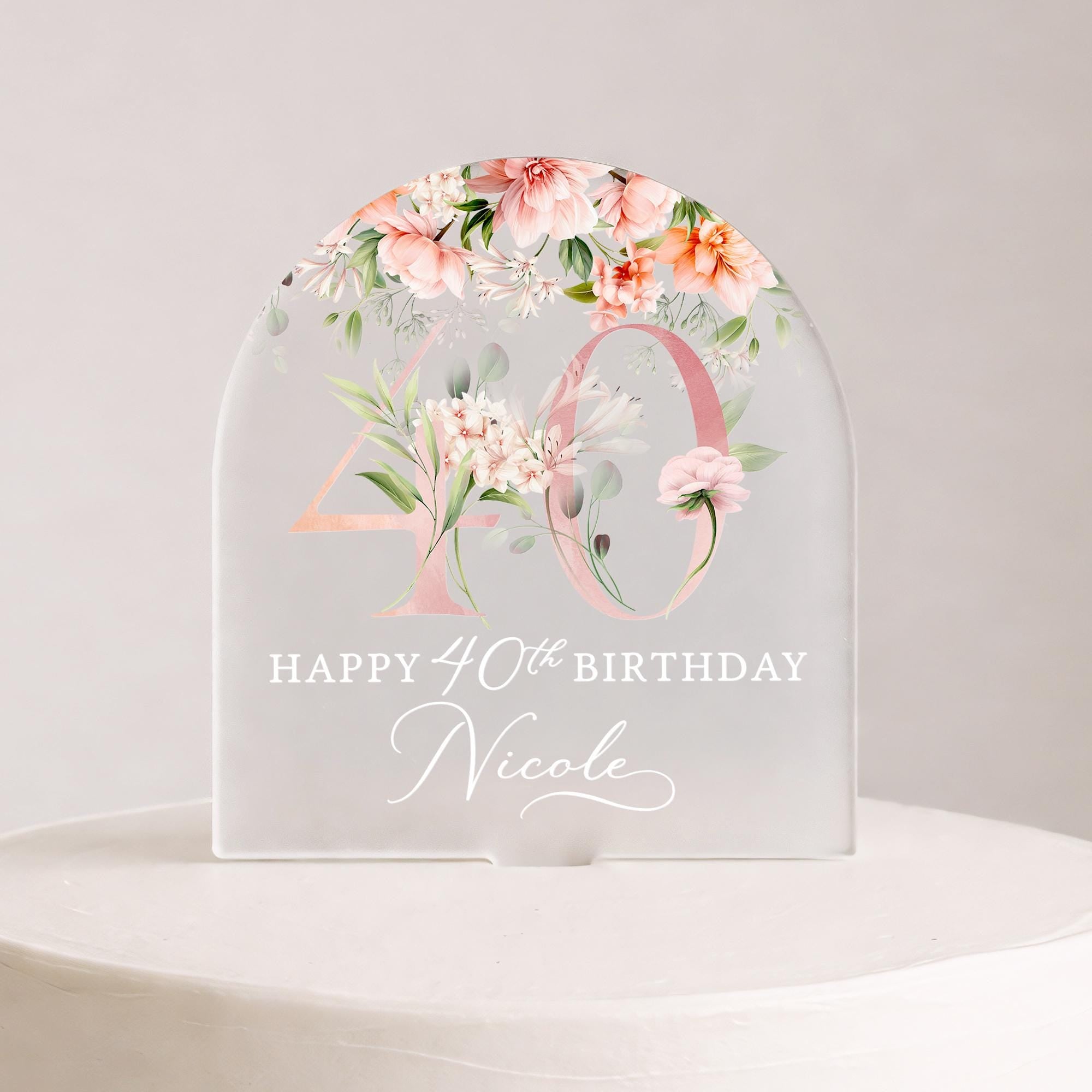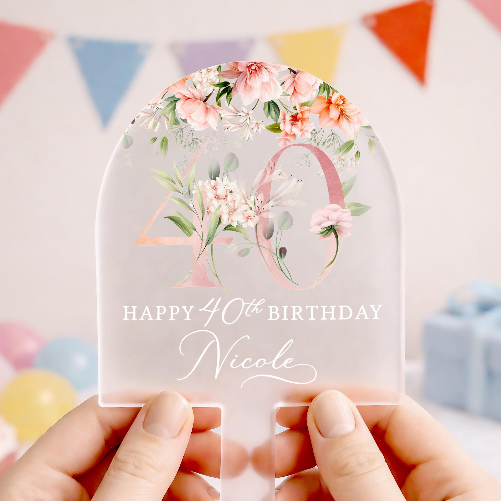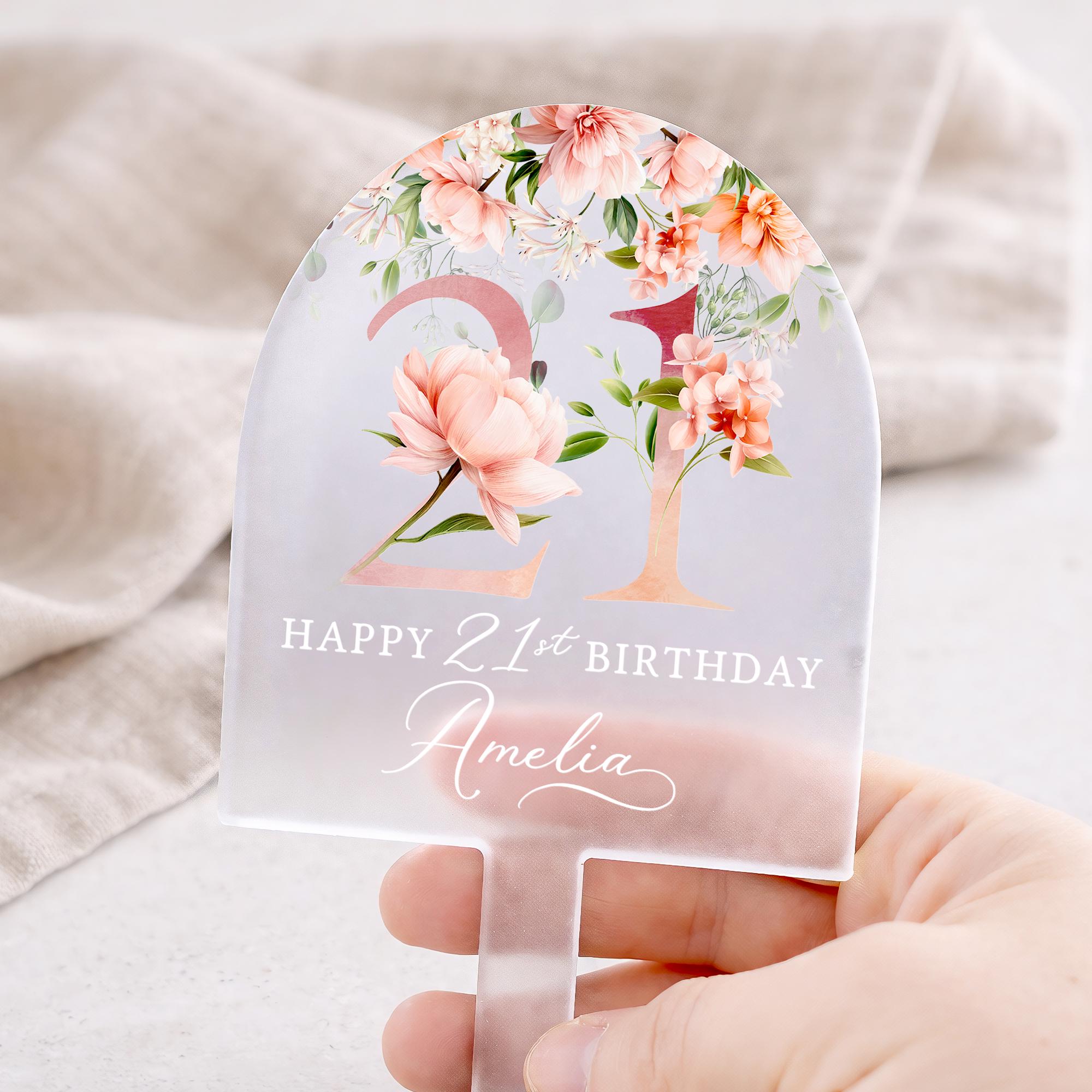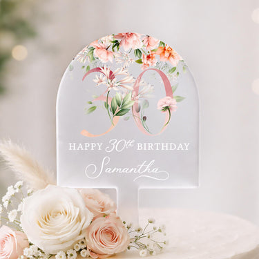 Personalised Frosted Acrylic Birthday Cake Topper - Rose Pink Cake Decorations