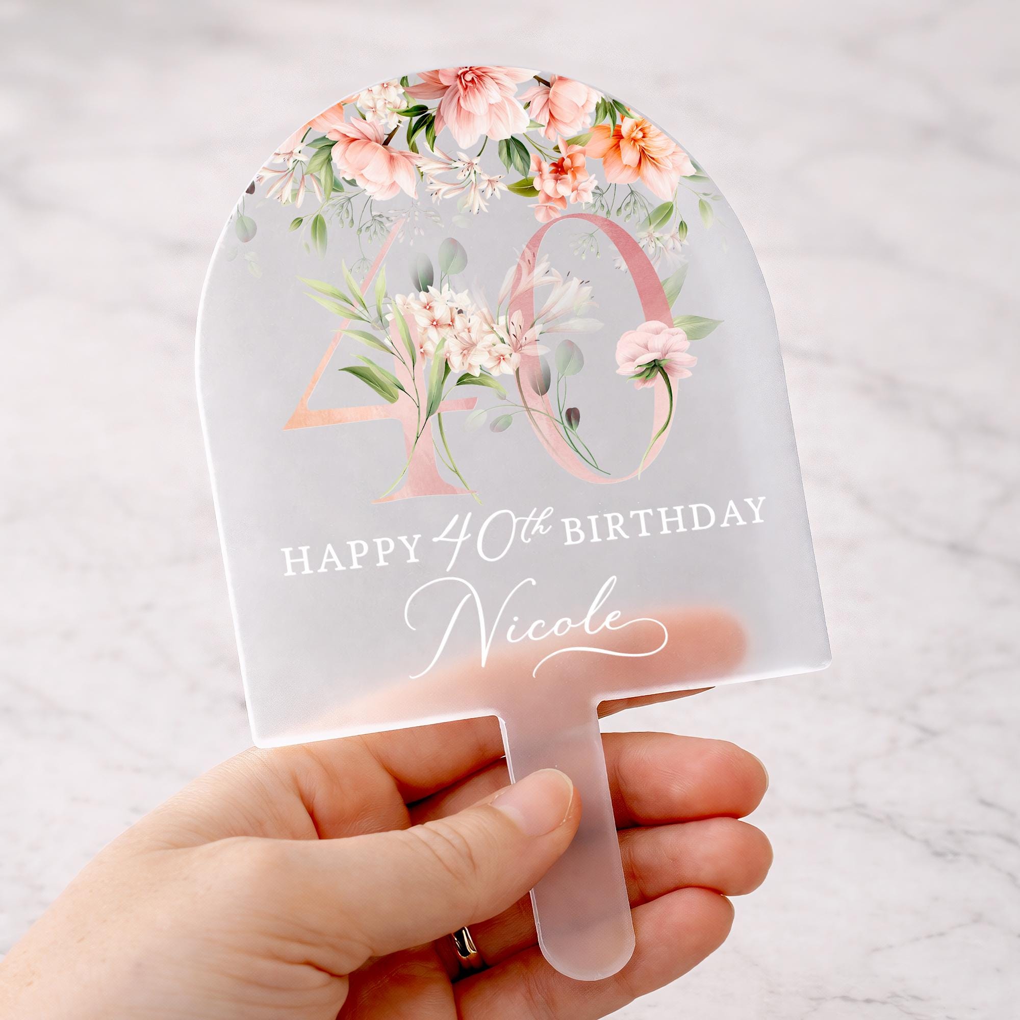 Add the perfect finishing touch to your celebration with our personalised frosted acrylic cake toppers. Designed to feel modern, elegant and timeless, each topper dual printed to create a beautiful. The soft frosted finish catches the light beautifully, giving a delicate, luxury look. Carefully crafted in the UK, this topper turns your special moment into something truly unforgettable.