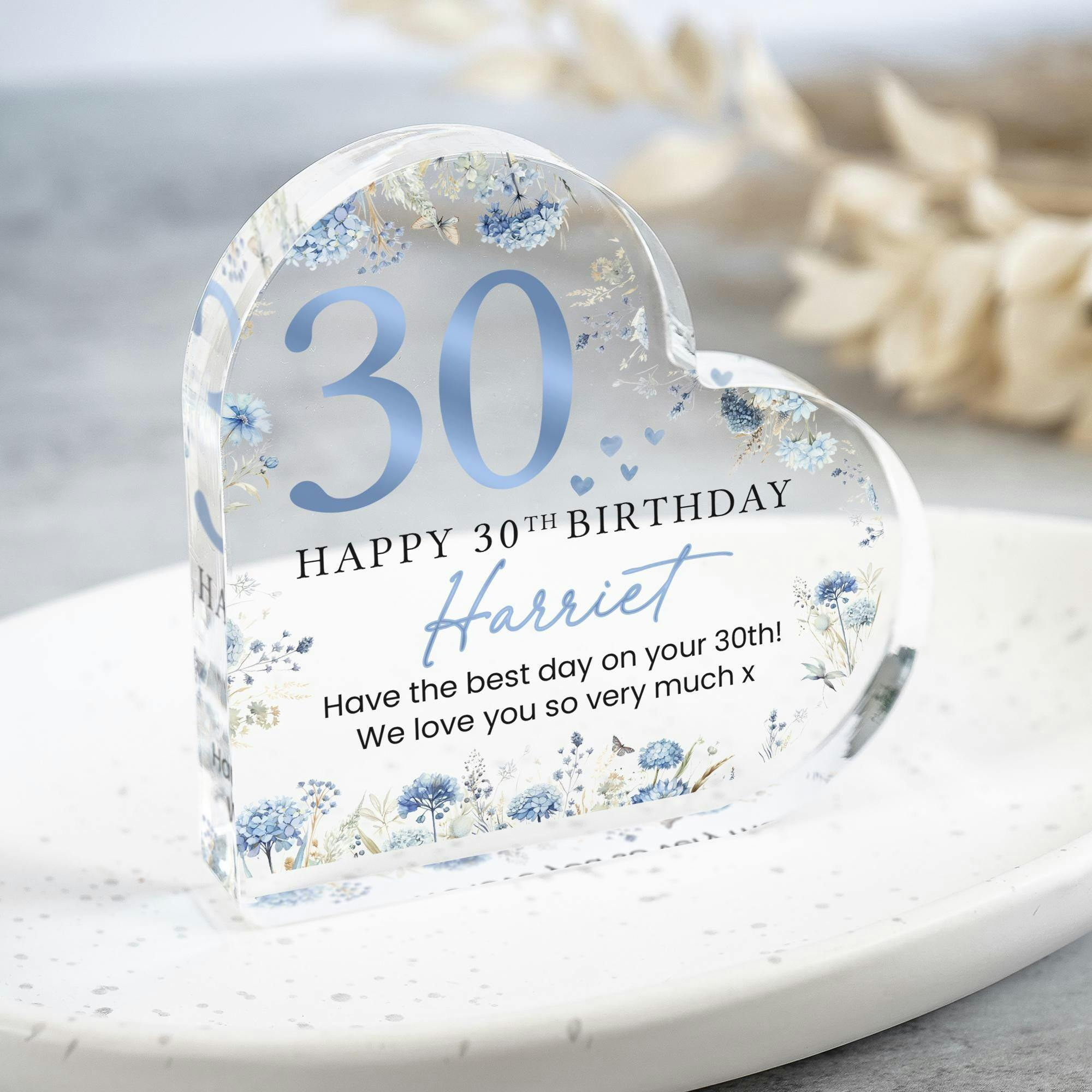 Personalised Hydrangea Flower Happy 30th Birthday Heart Gift Plaque