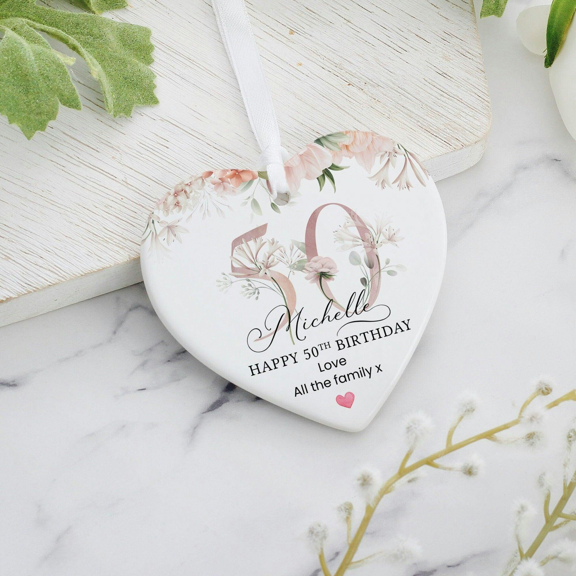Personalised Rose Pink Floral Happy 50th Birthday Keepsake Ornament