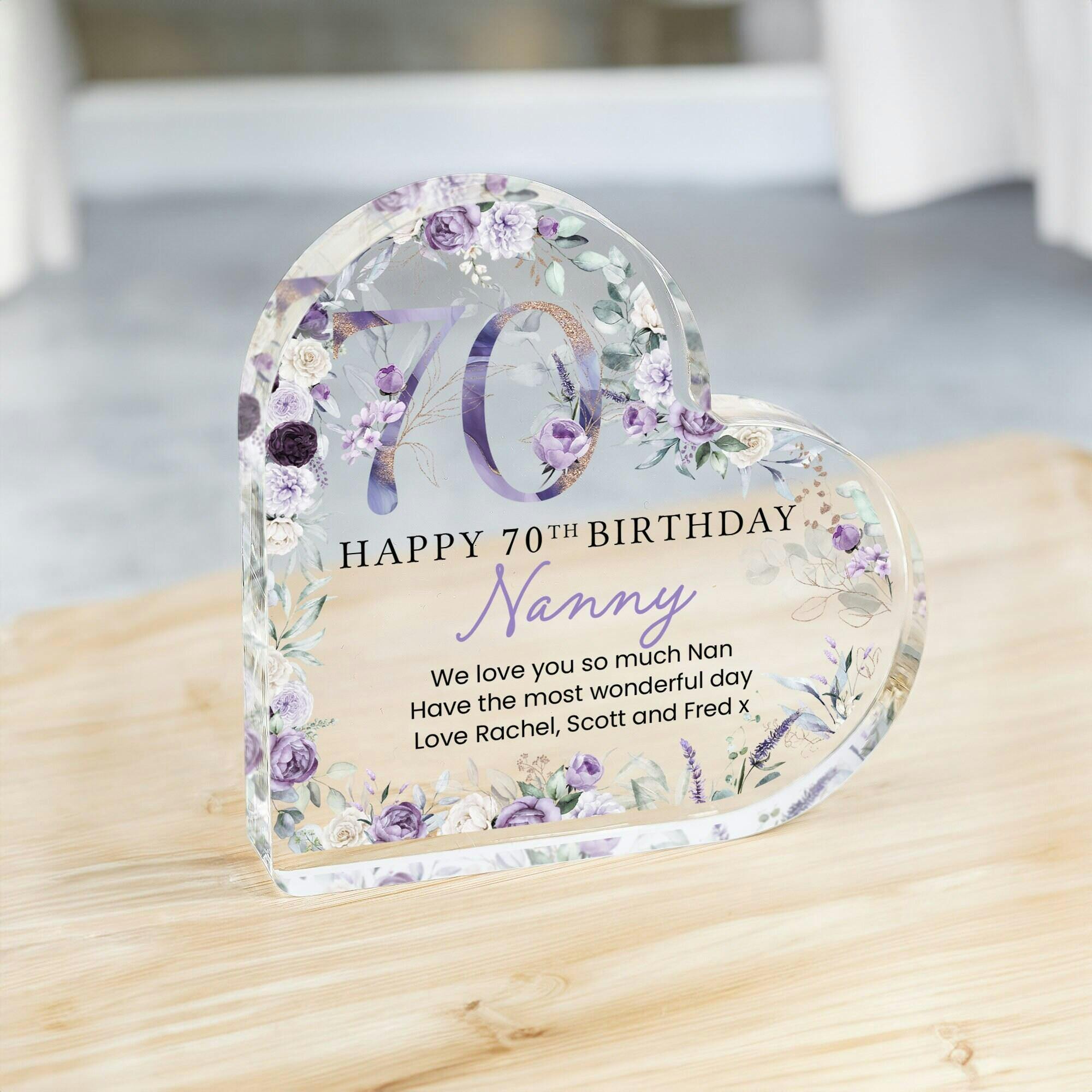 Personalised Purple Floral Happy 70th Birthday Gift Plaque