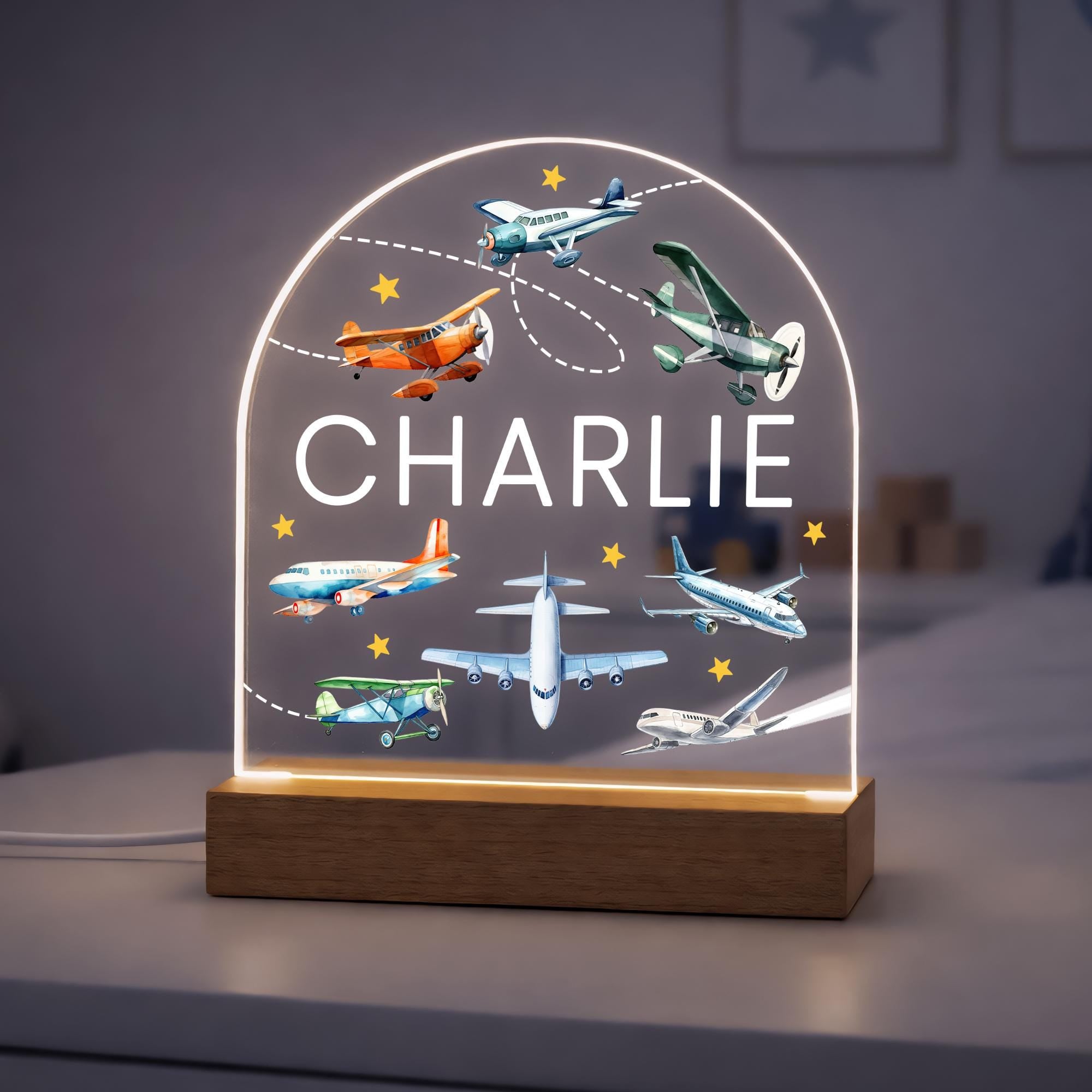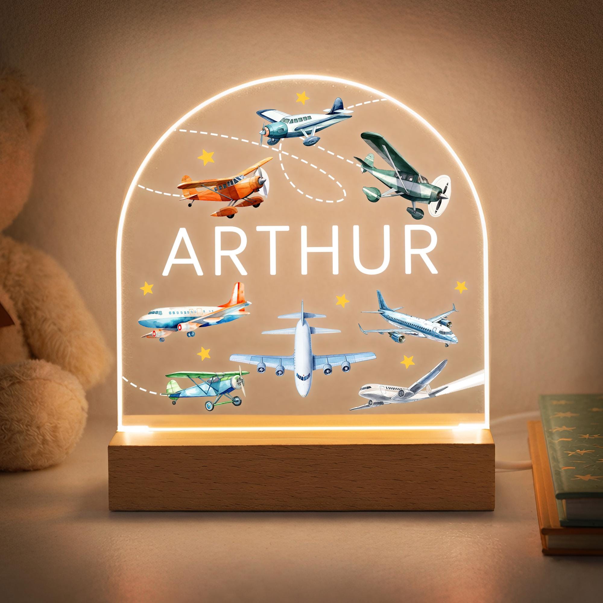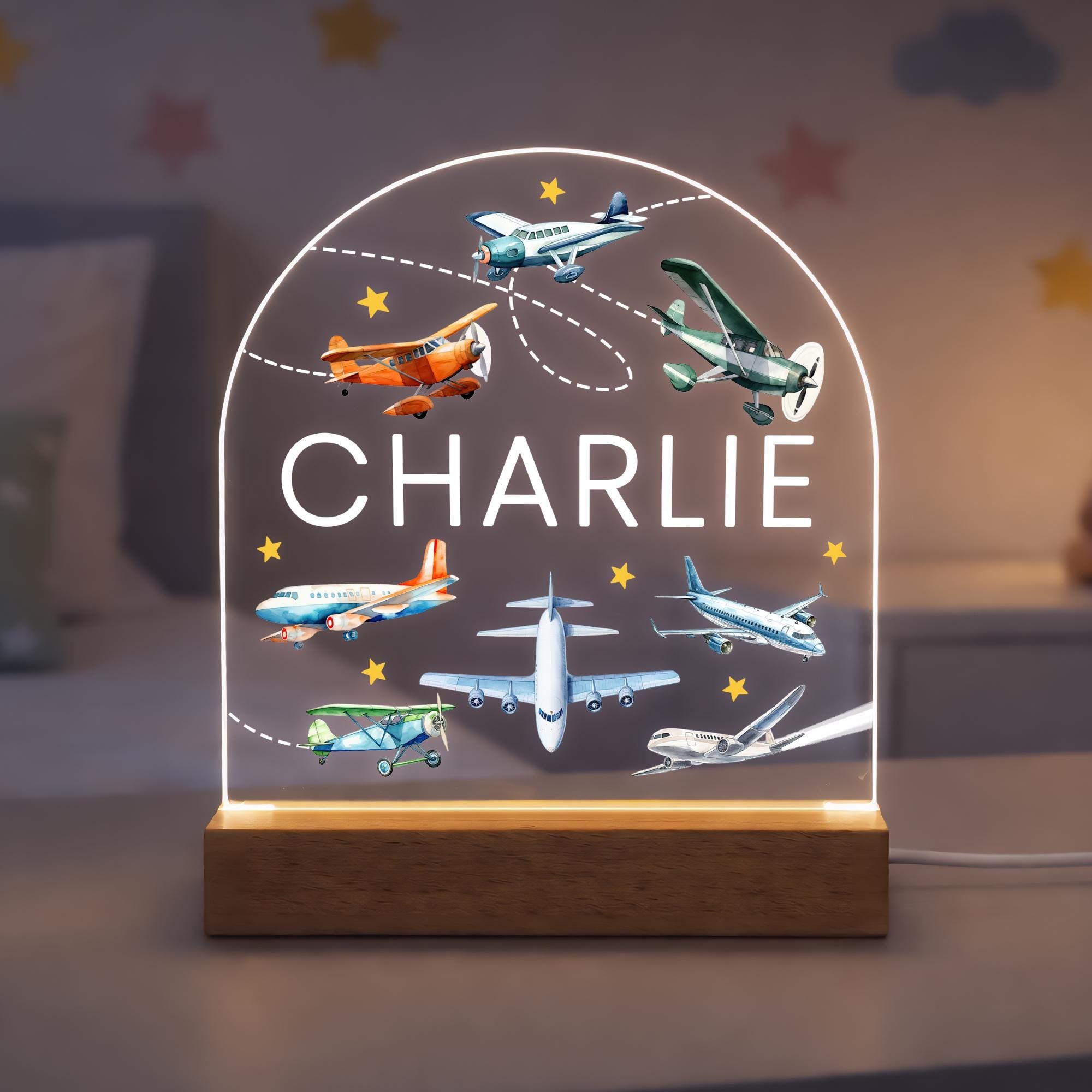 Personalised LED Airplane Kids Night Light Lamp