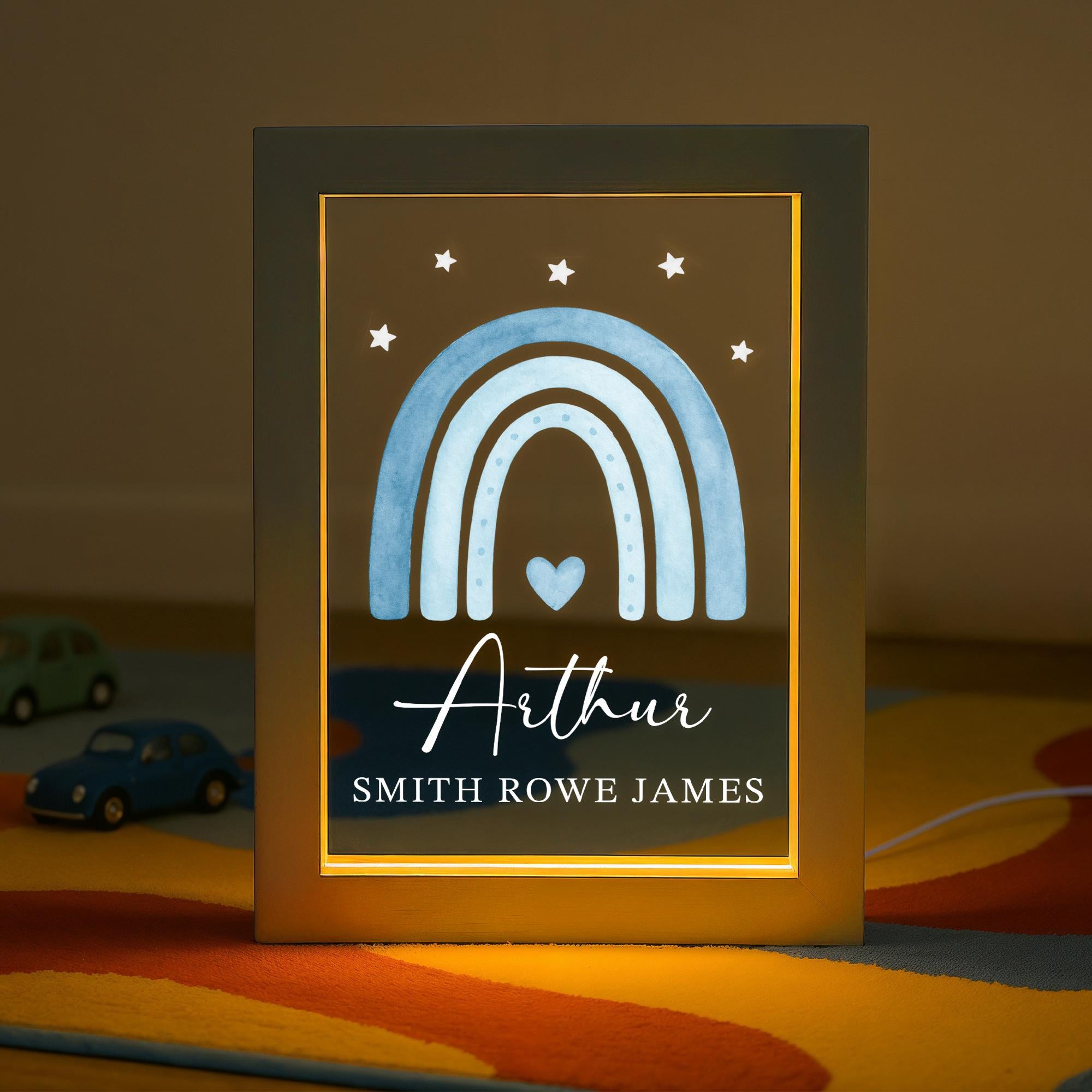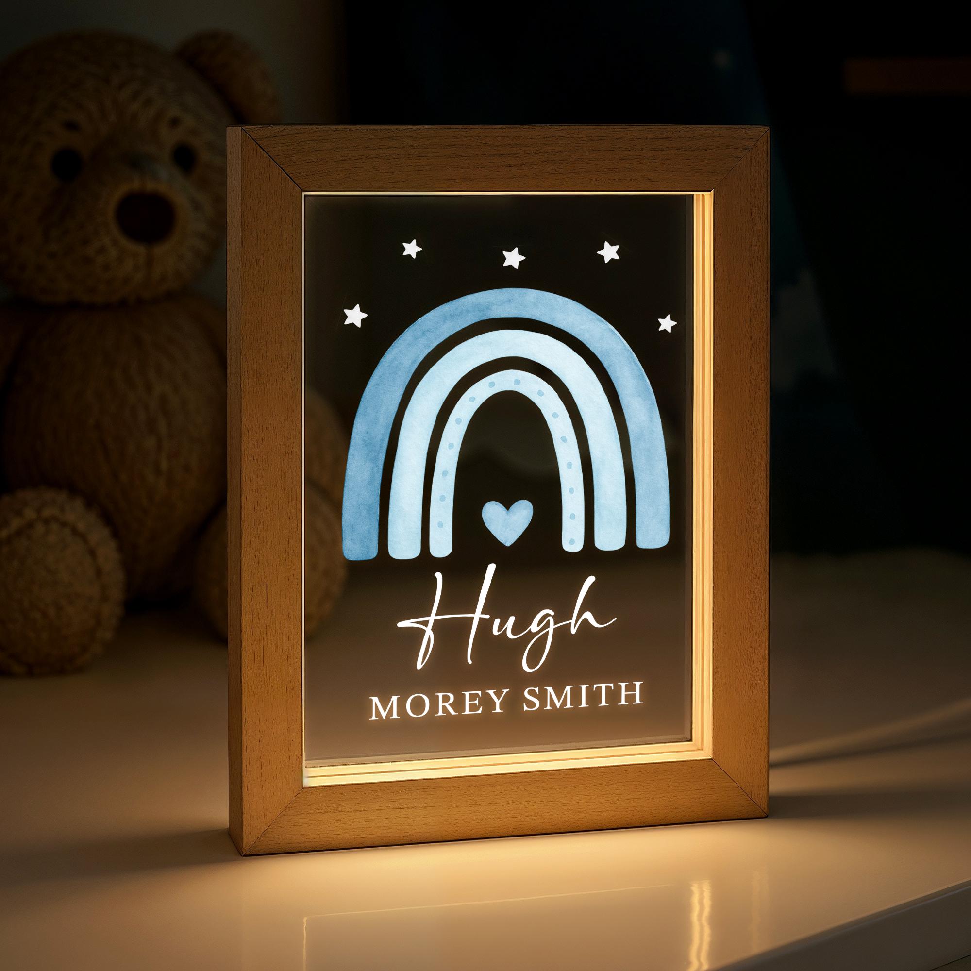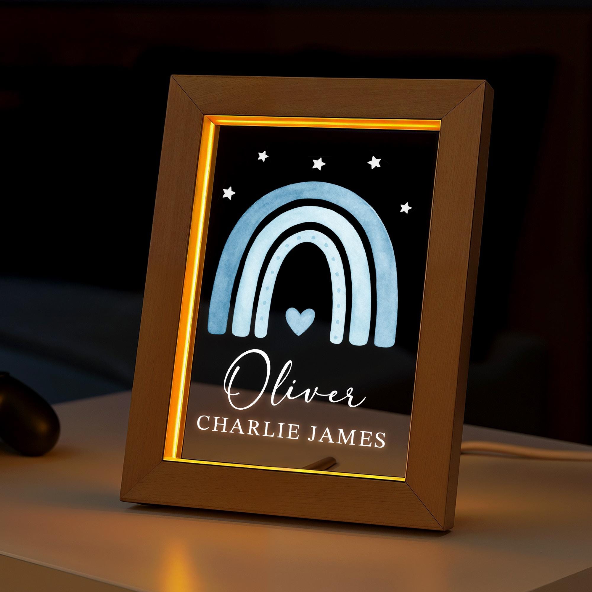 Personalised Soft Blue Rainbow LED Boys Night Light Frame