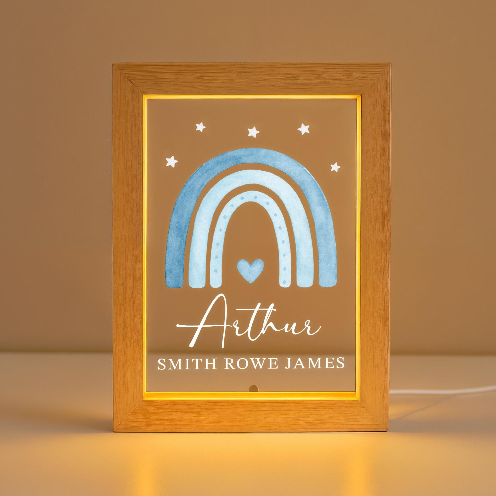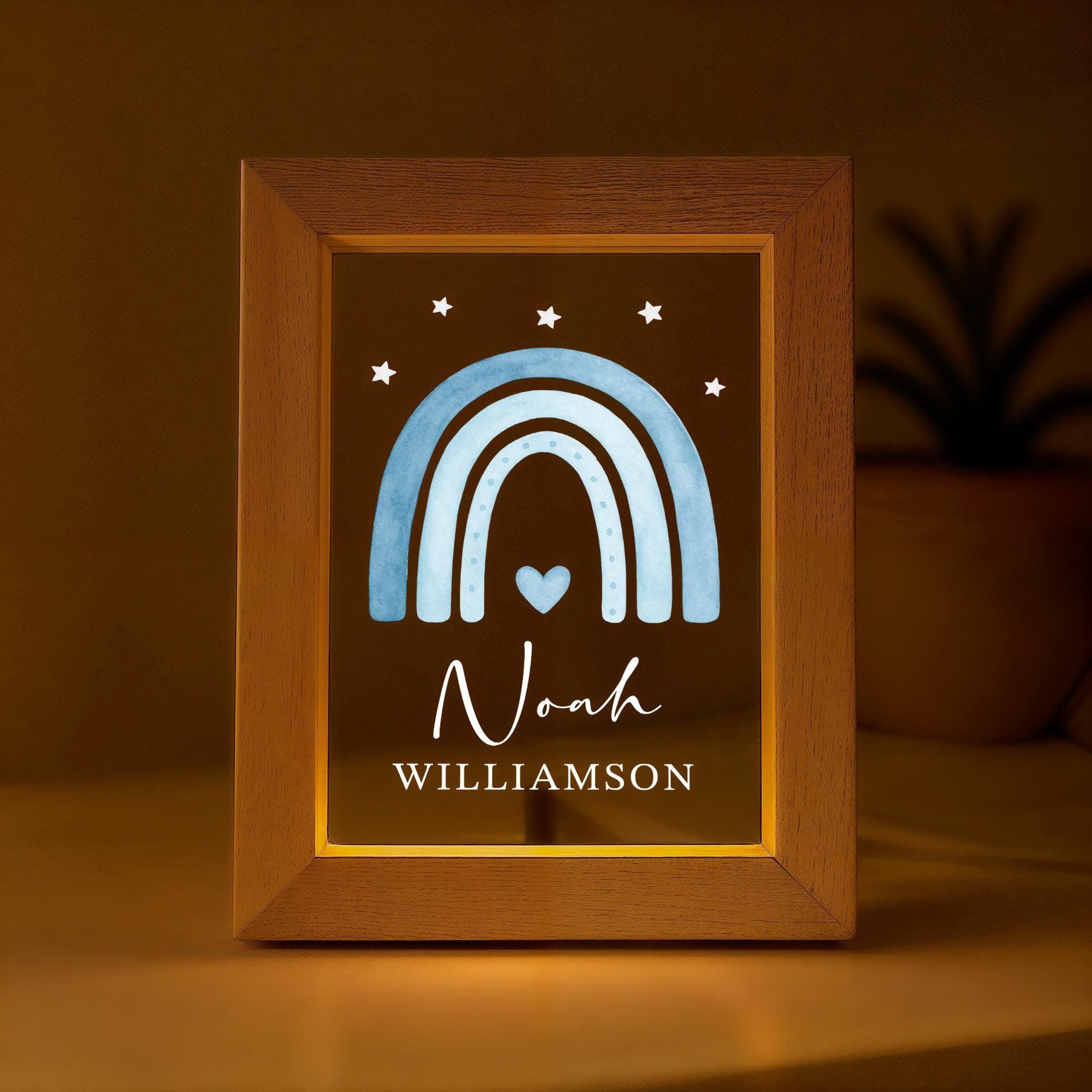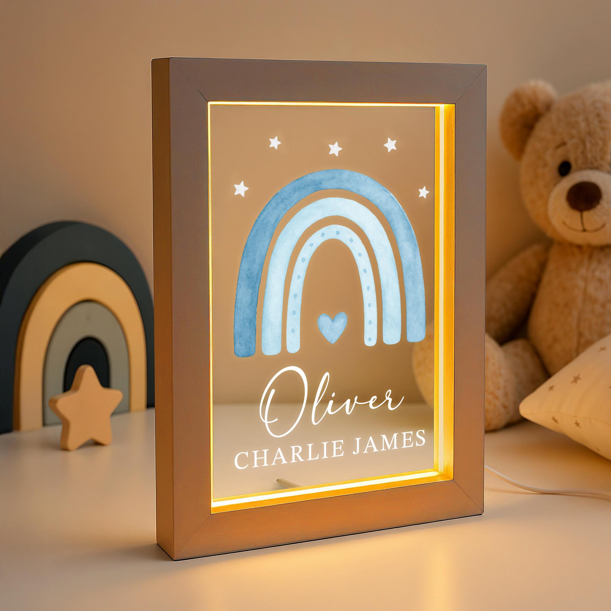 Personalised Soft Blue Rainbow LED Boys Night Light Frame