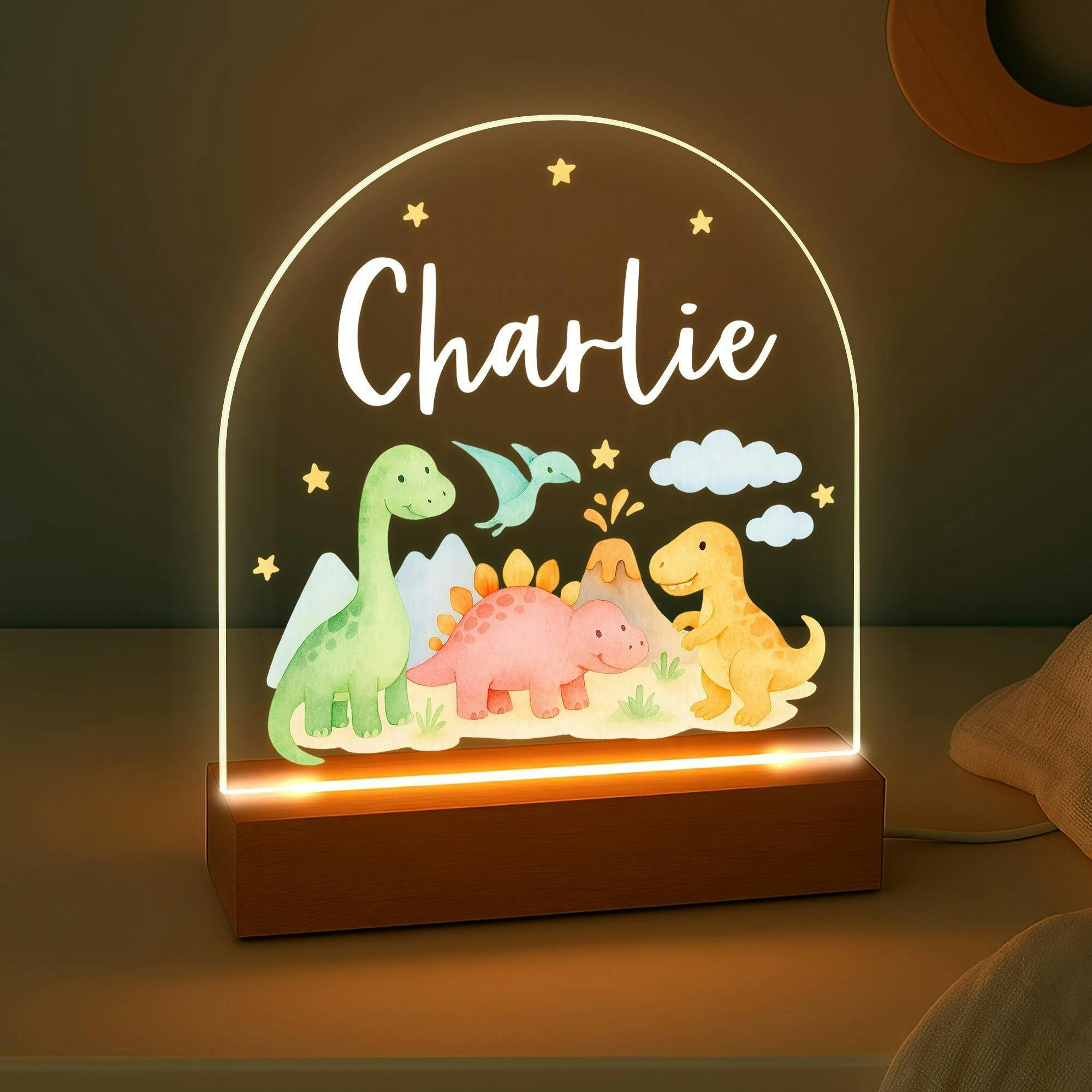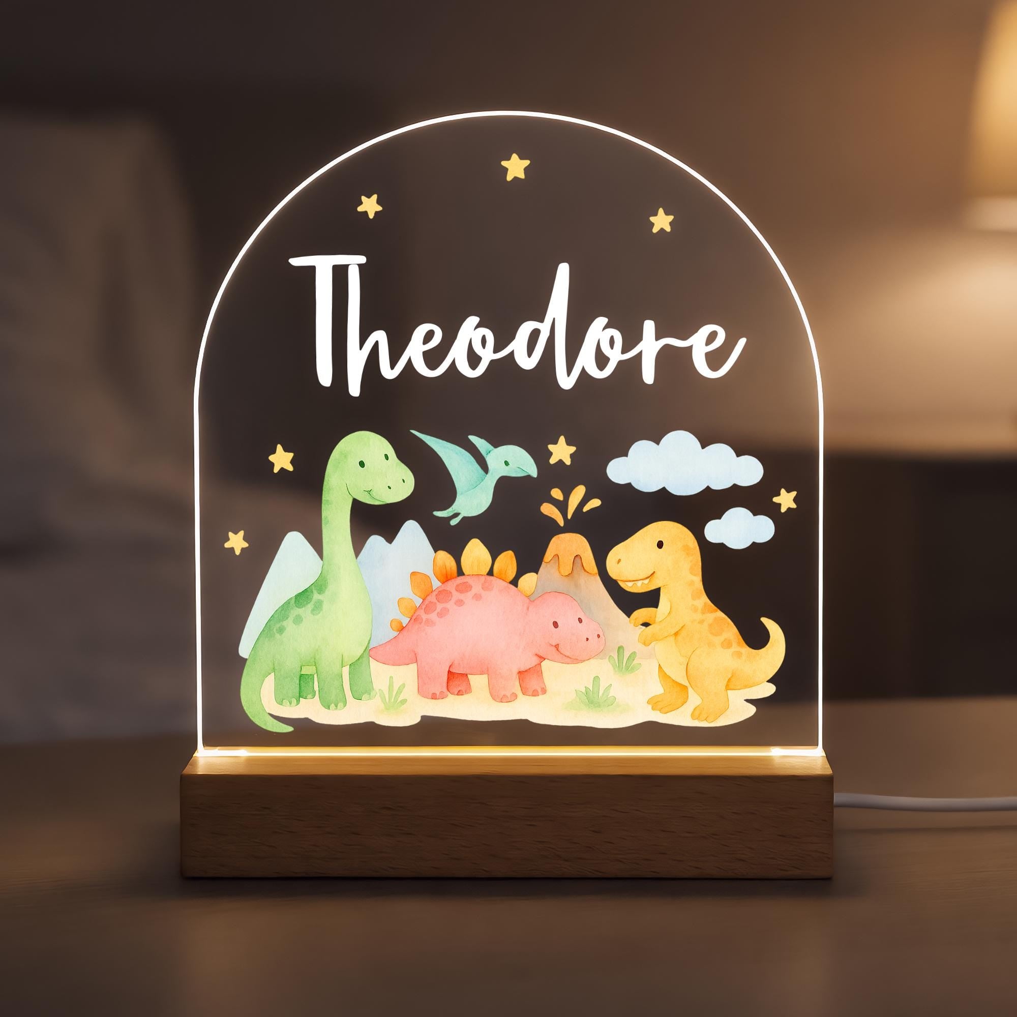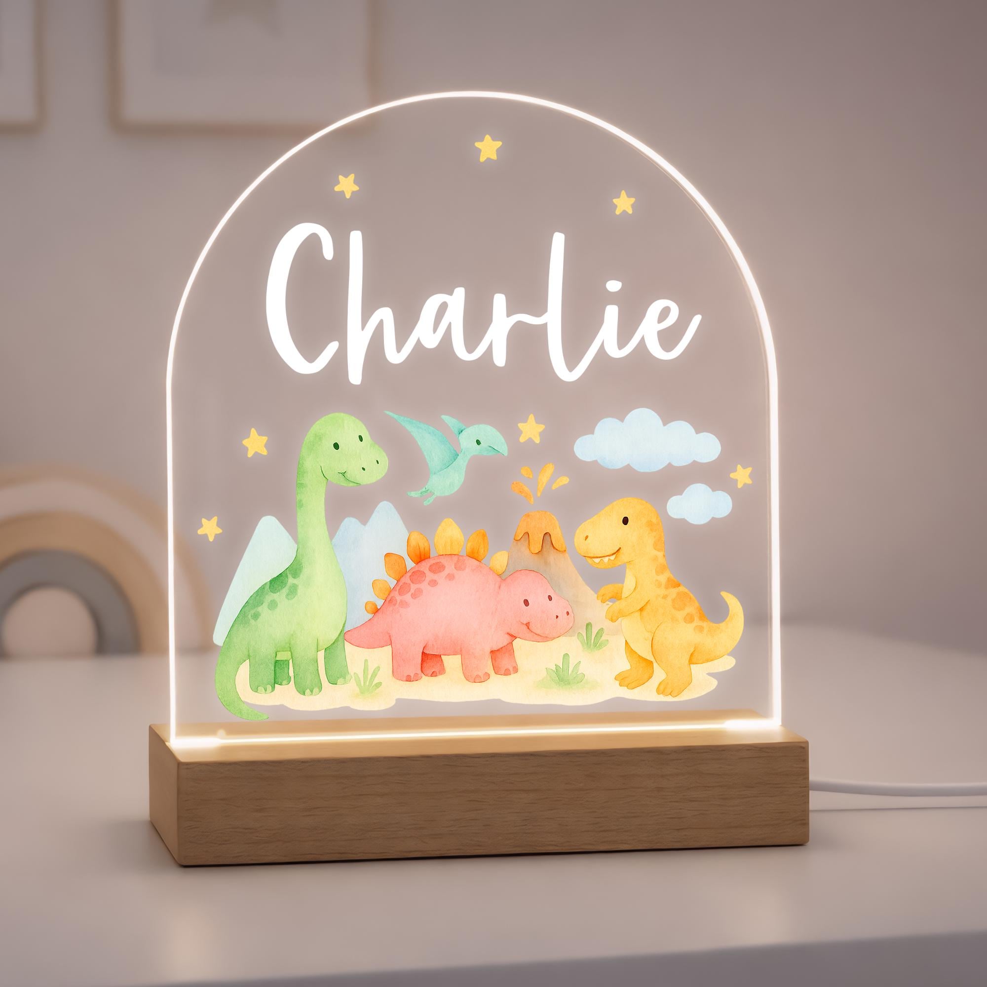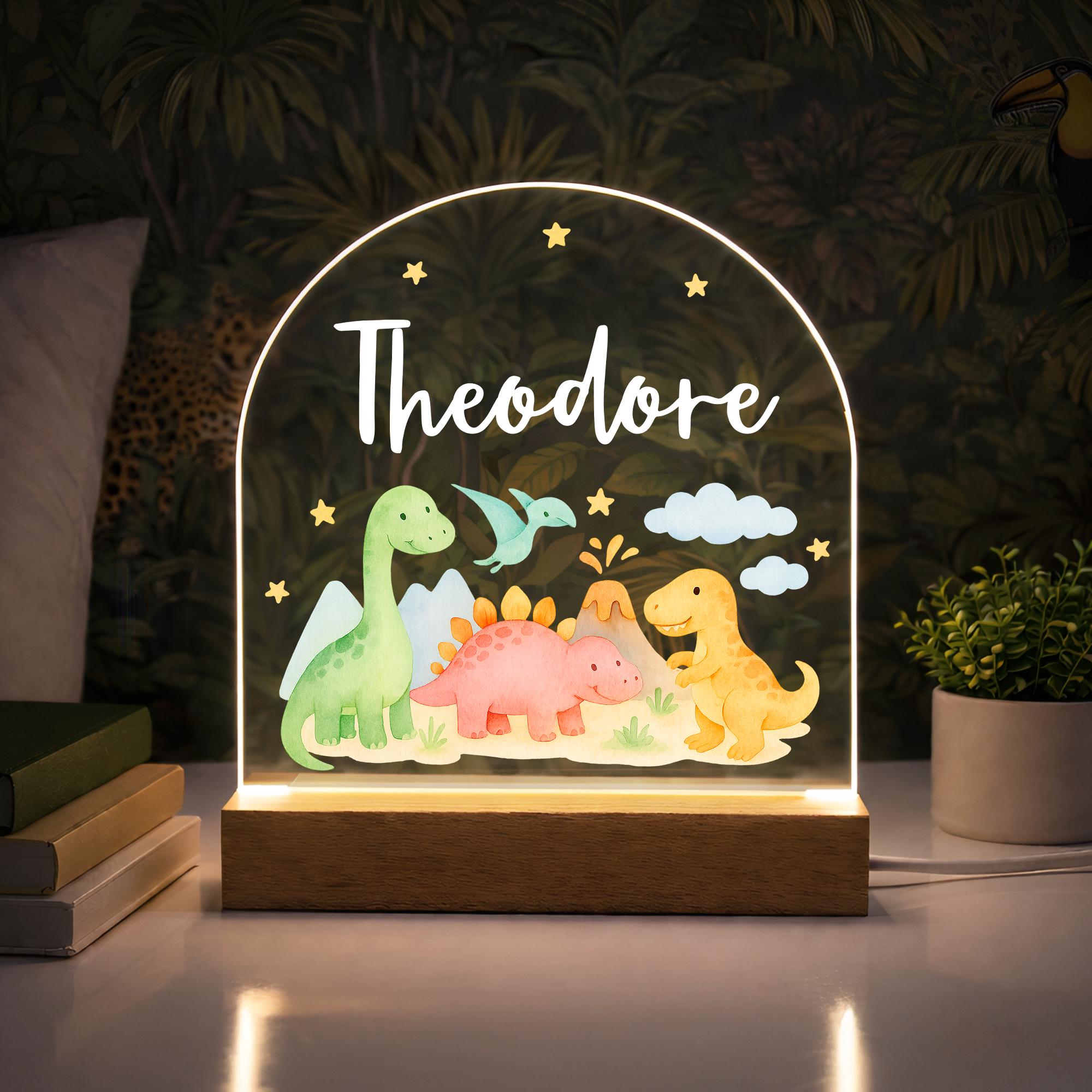 Personalised LED Dinosaur Kids Night Light Lamp