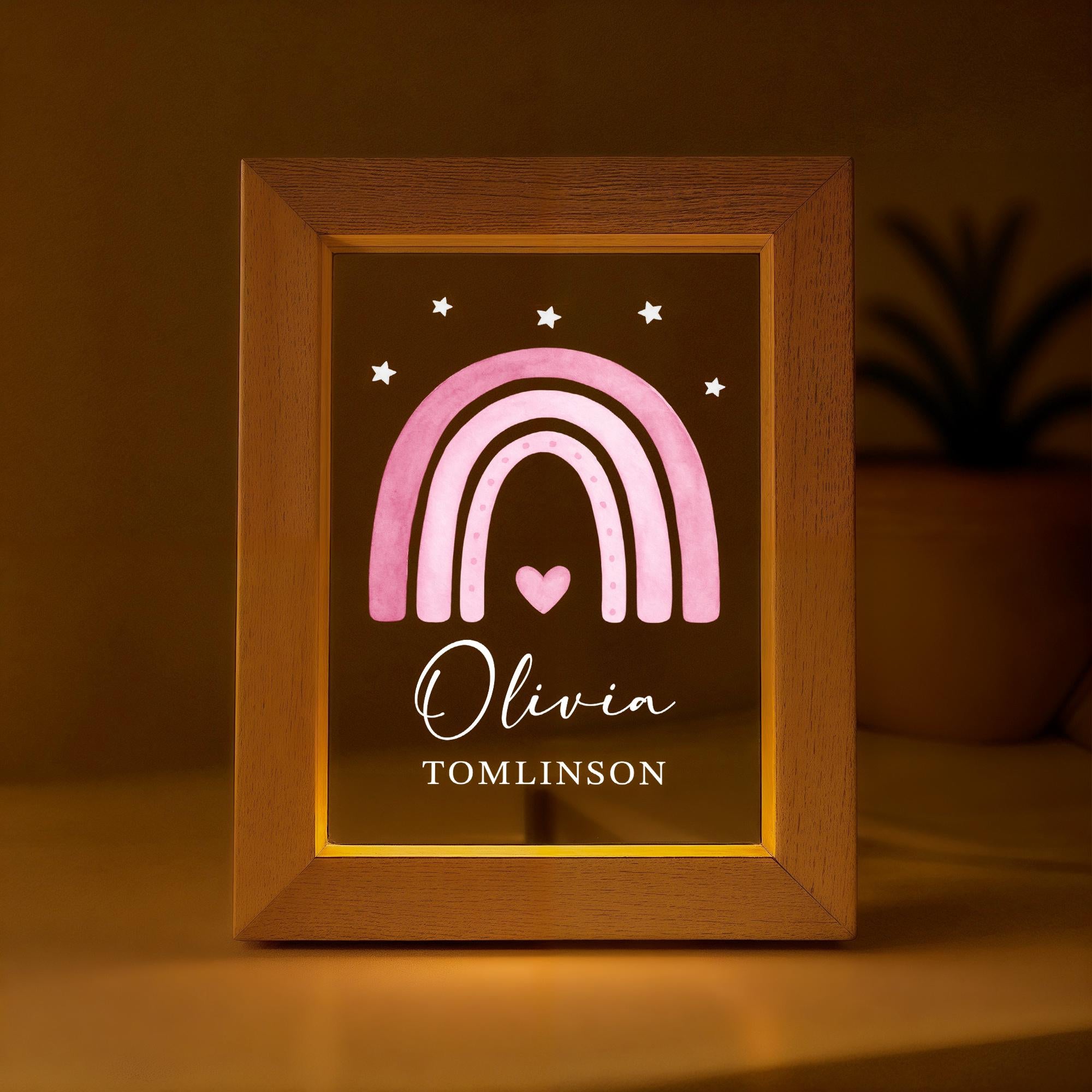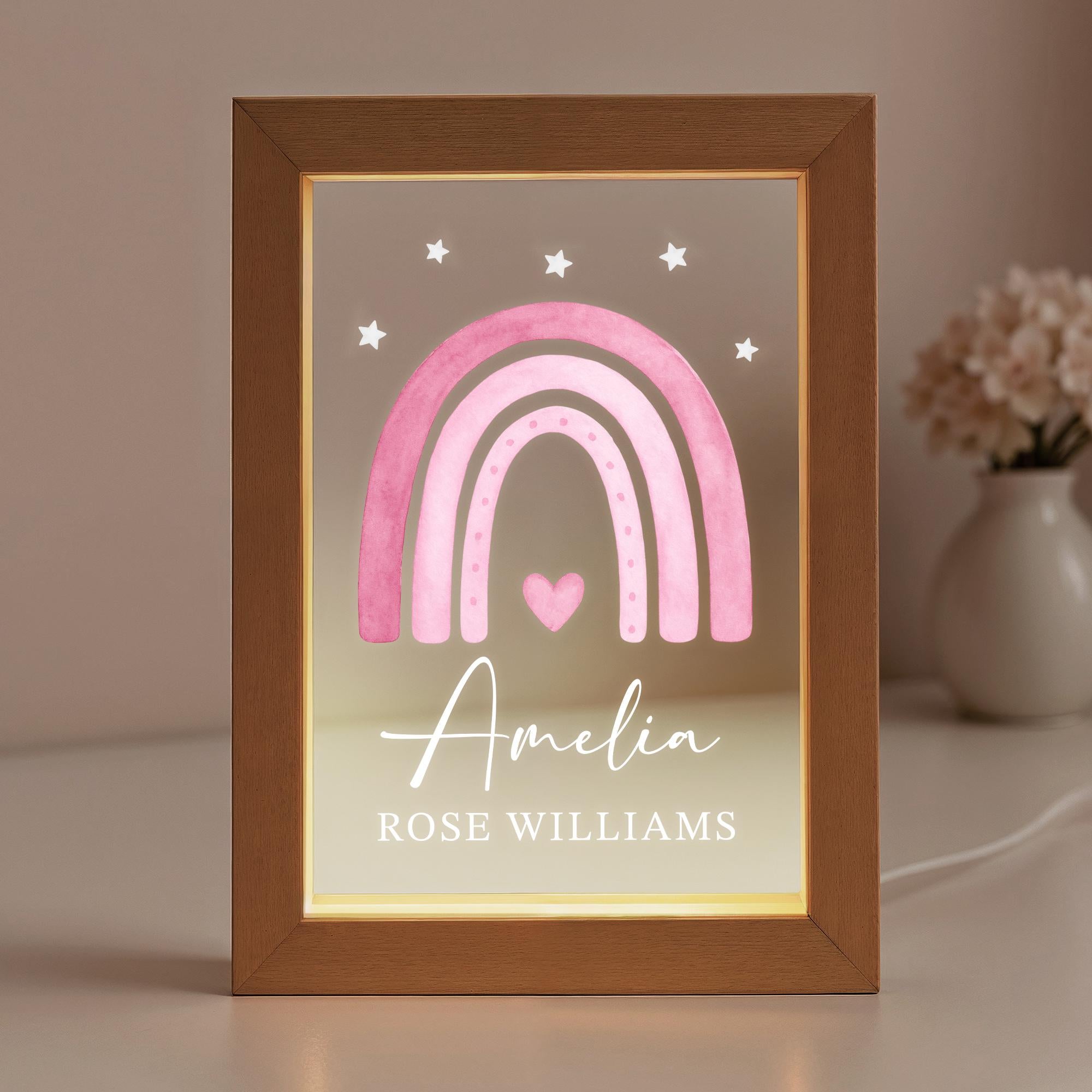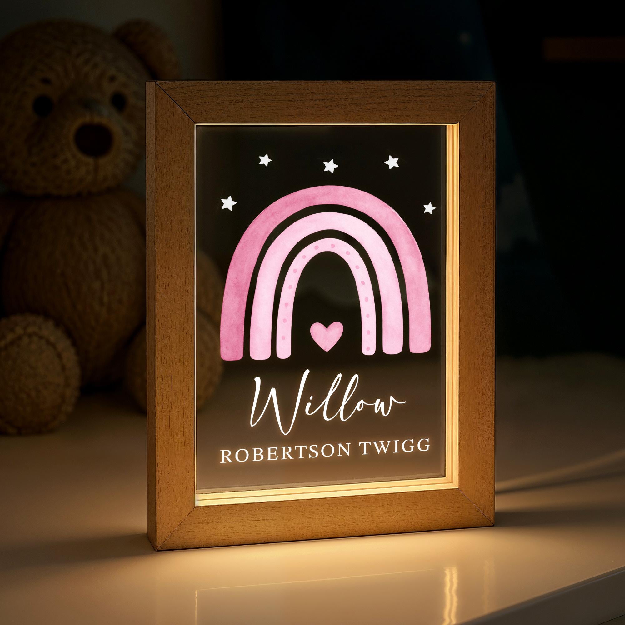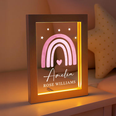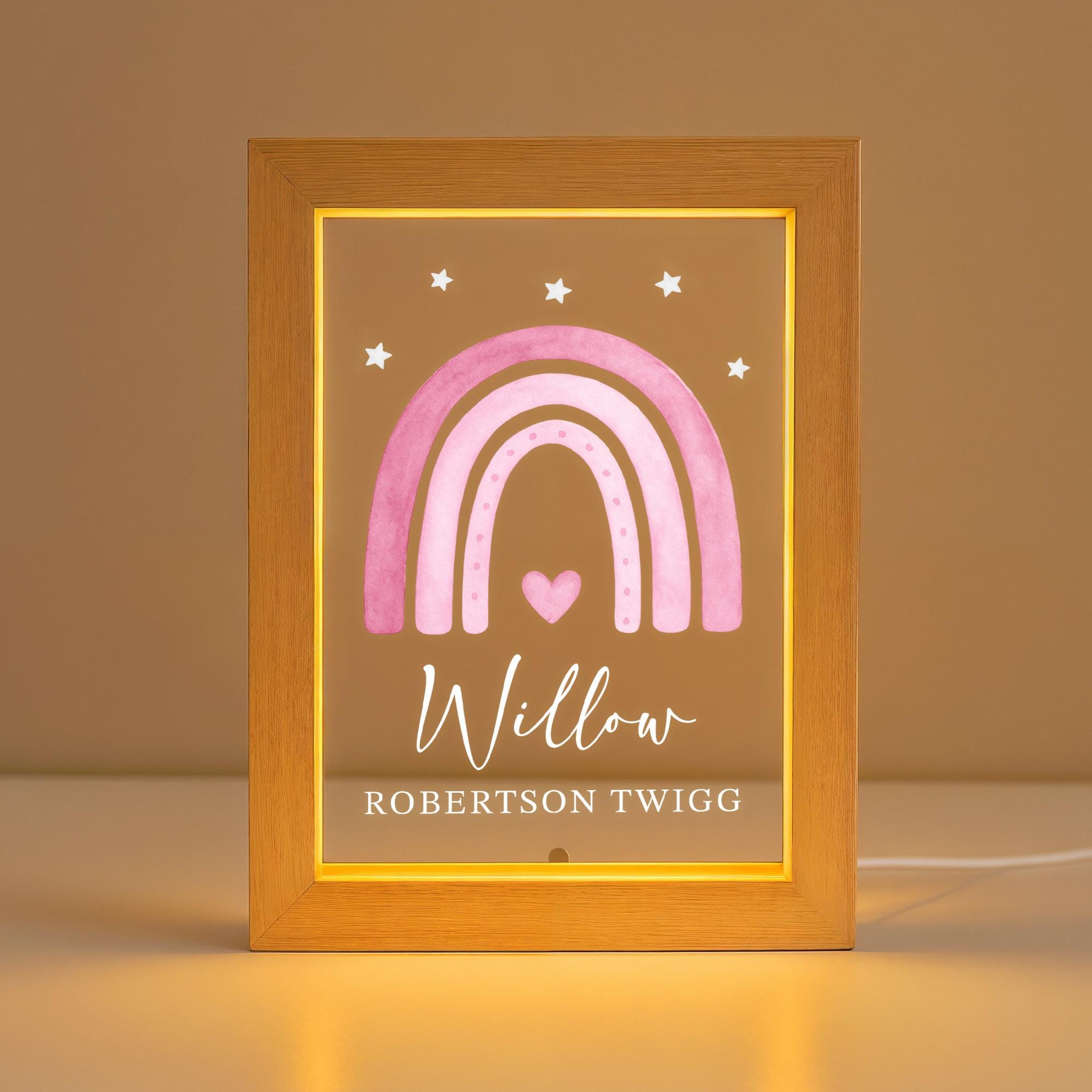 Personalised Soft Pink Rainbow LED Girls Night Light Frame